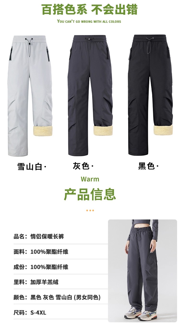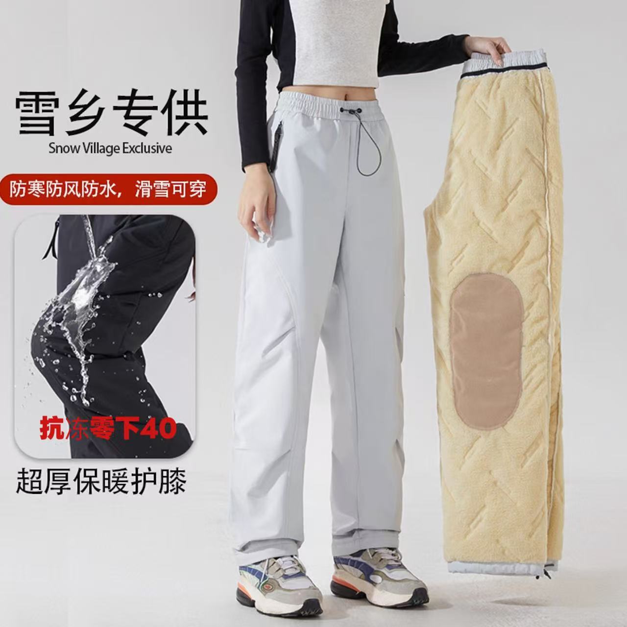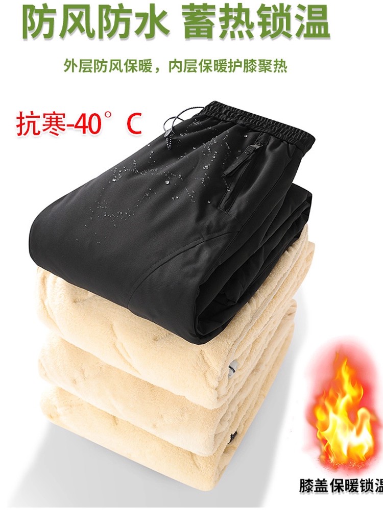 Northeast Harbin Ski Fleece-Lined Thickened Warm Lamb Wool Men's and Women's Winter Windproof Waterproof Softshell Pants Cold-Proof Cotton Pants