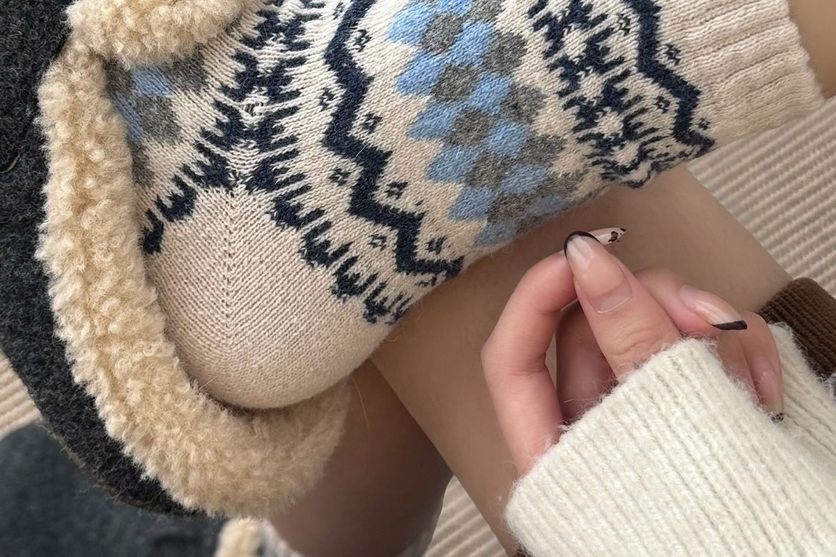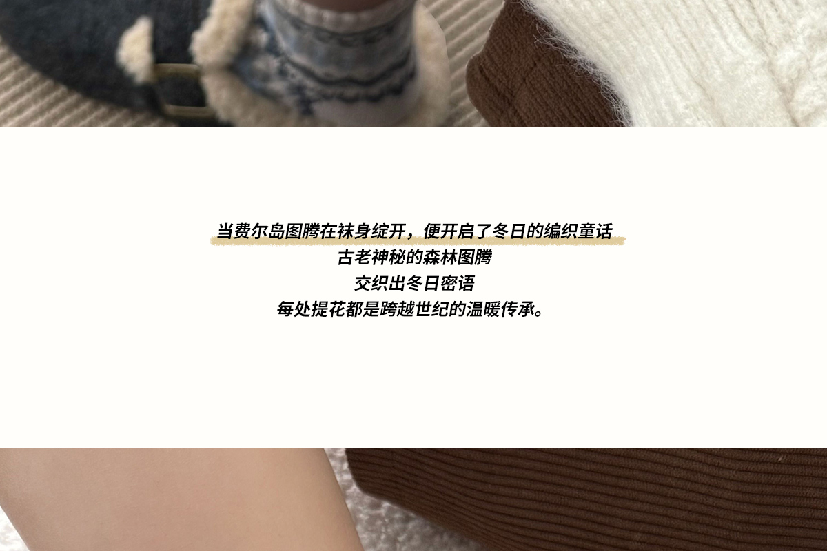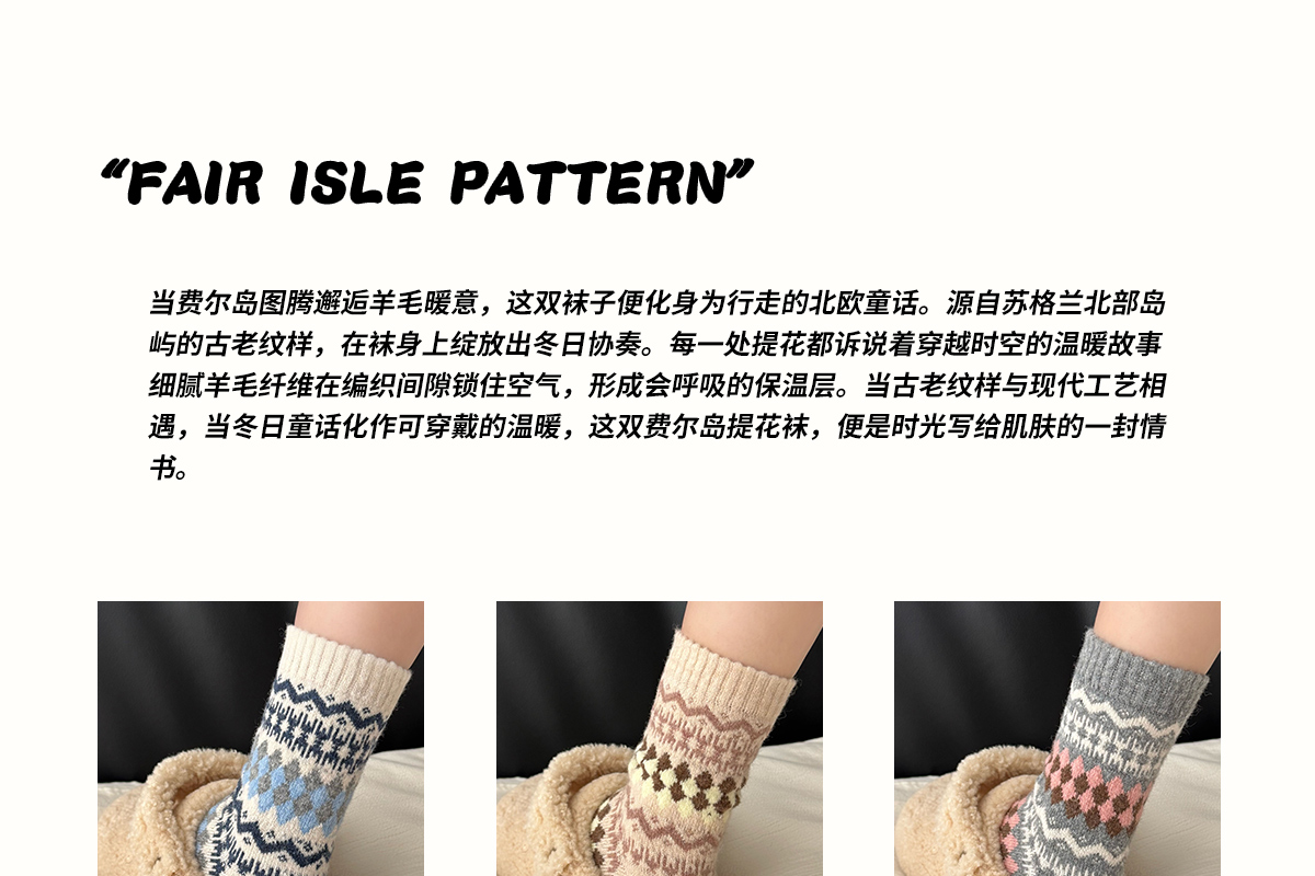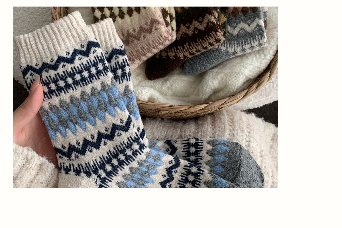 Retro Coffee-Colored Socks for Women in Autumn and Winter, Pure Cotton Mid-Calf Socks, Thickeneded and Warm Wool Cotton Socks, Fair Isle Stockings for Winter