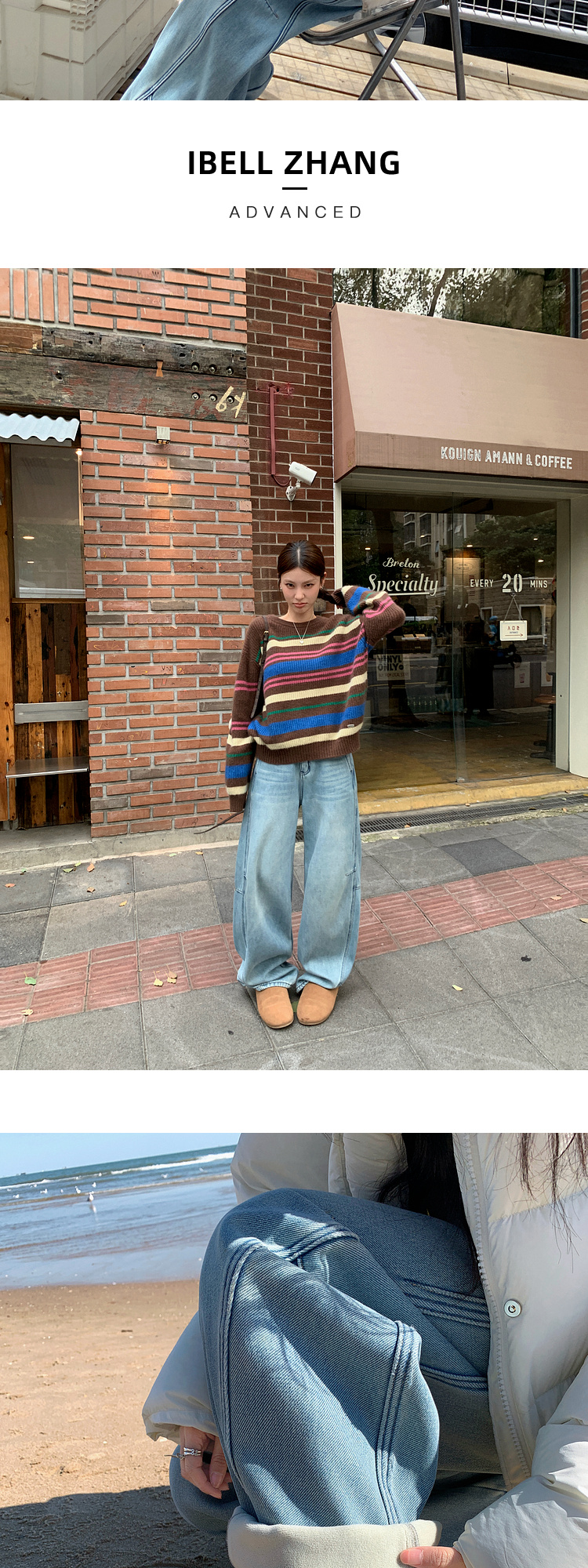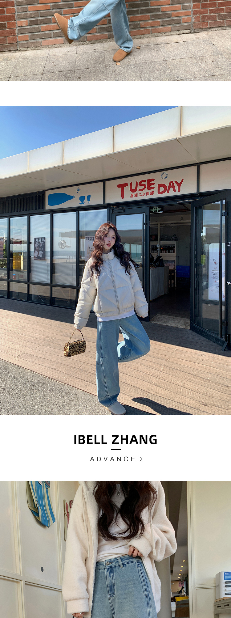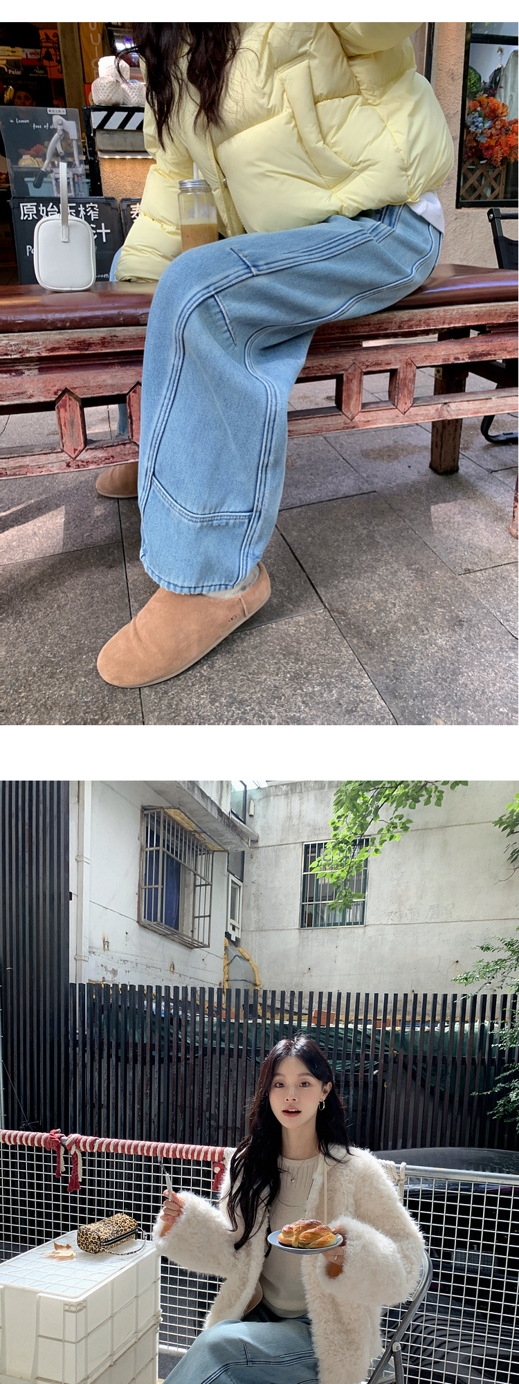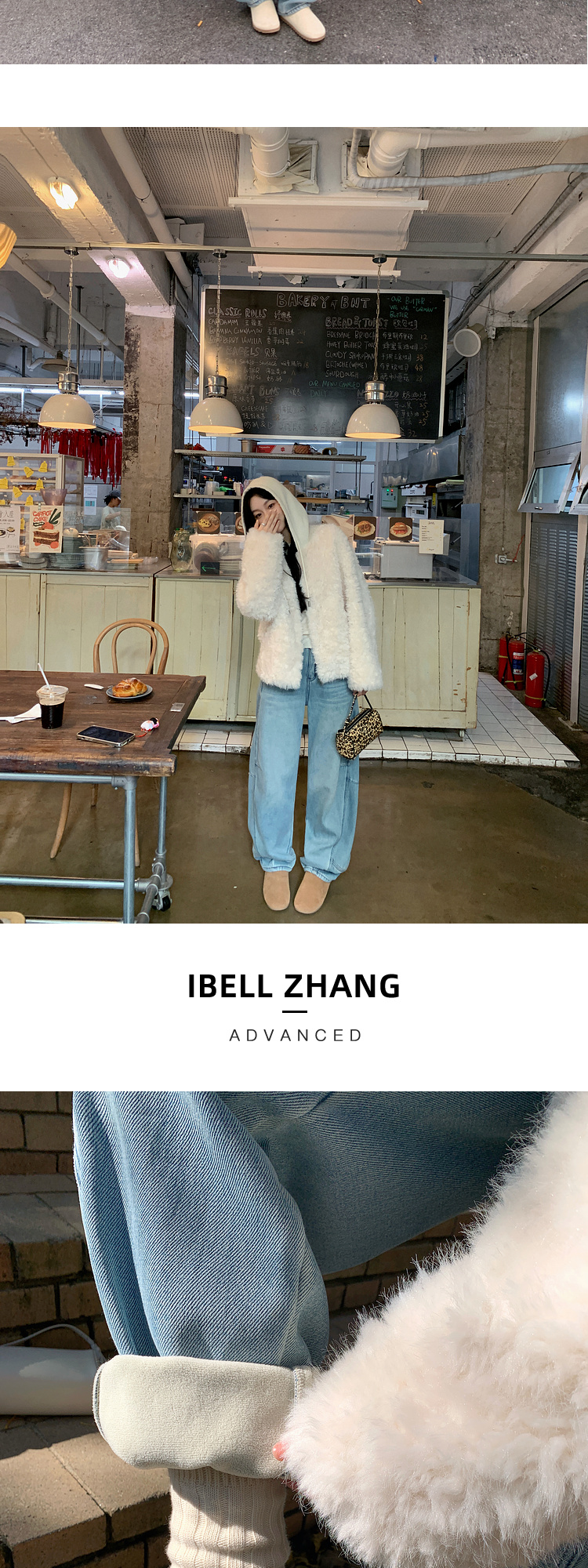 Zhang Beibei Ibell Thickened Baby Velvet Design Warm Slimming Three-Dimensional Cut Curved Knife White-Washed Jeans