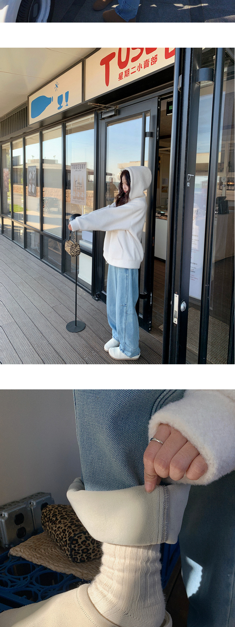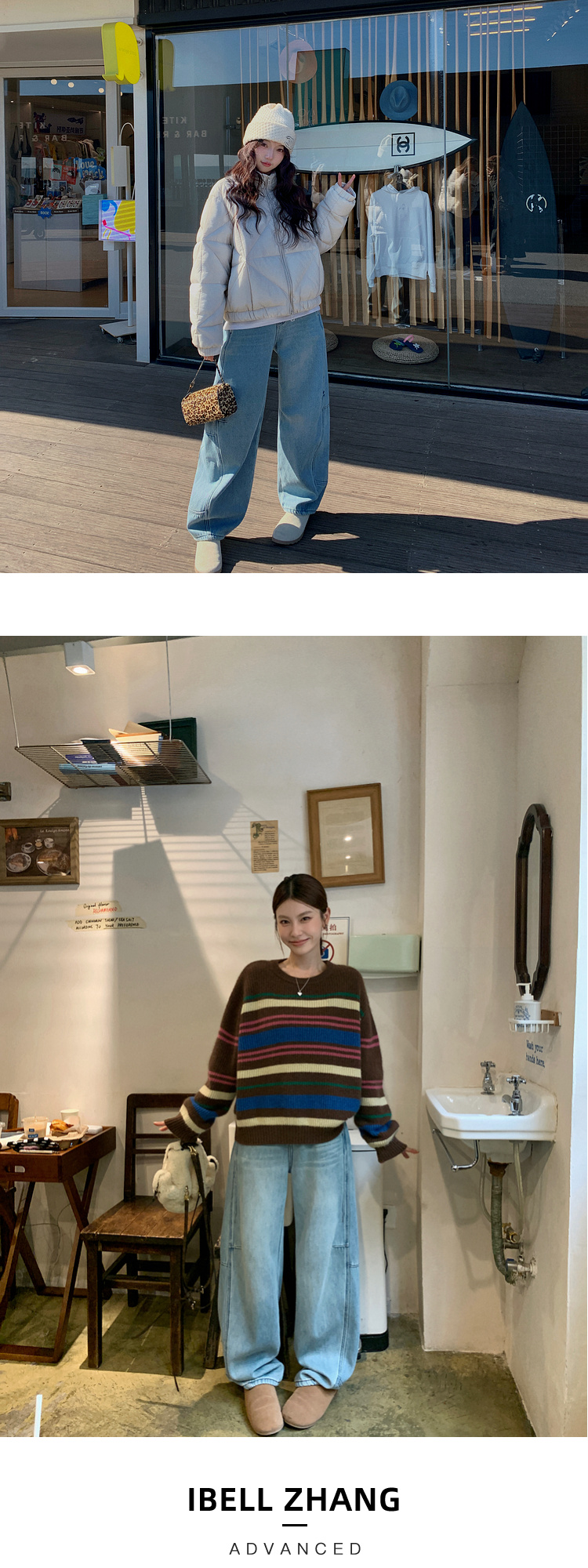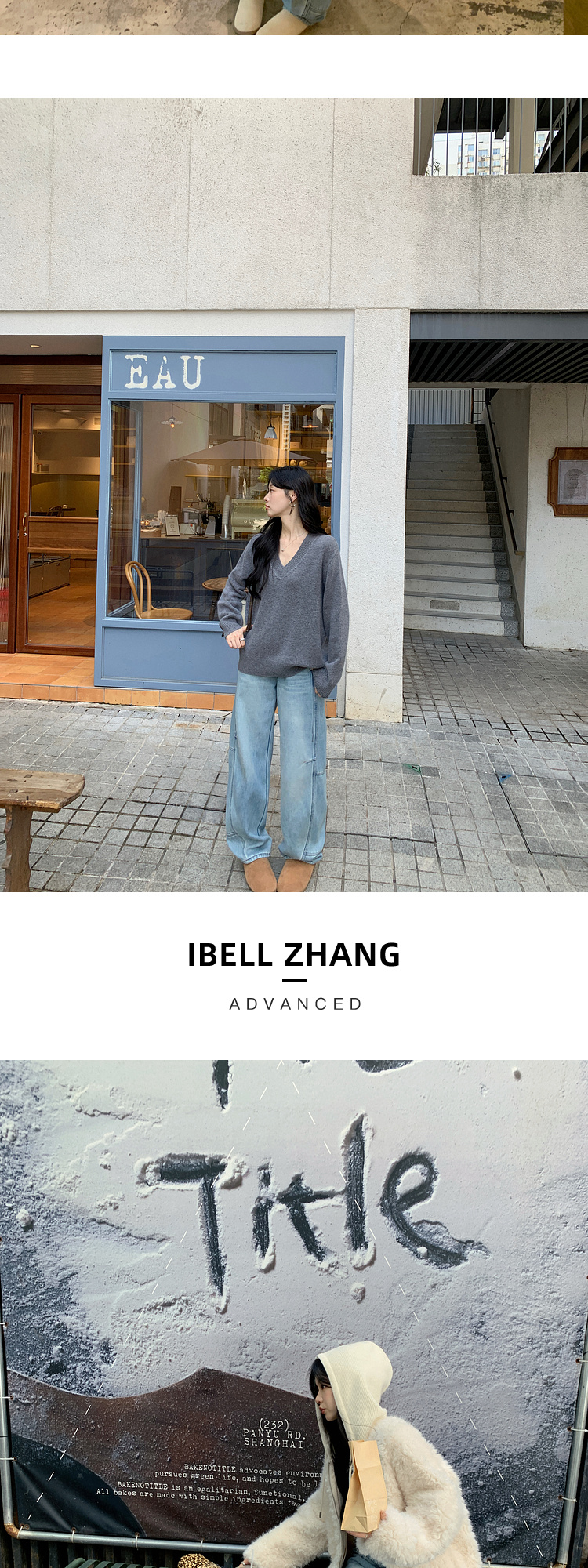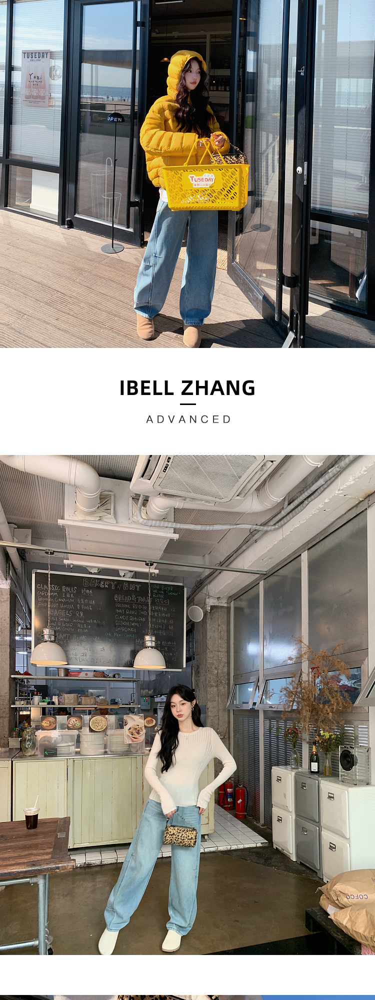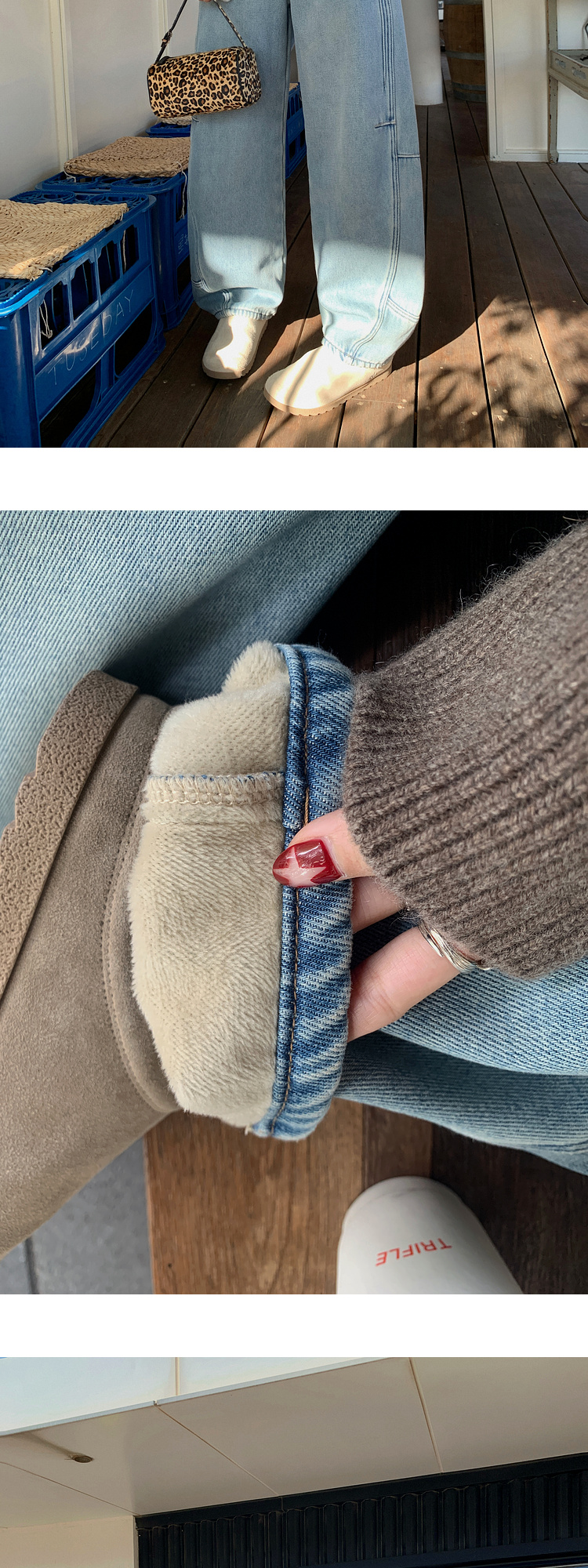 Zhang Beibei Ibell Thickened Baby Velvet Design Warm Slimming Three-Dimensional Cut Curved Knife White-Washed Jeans