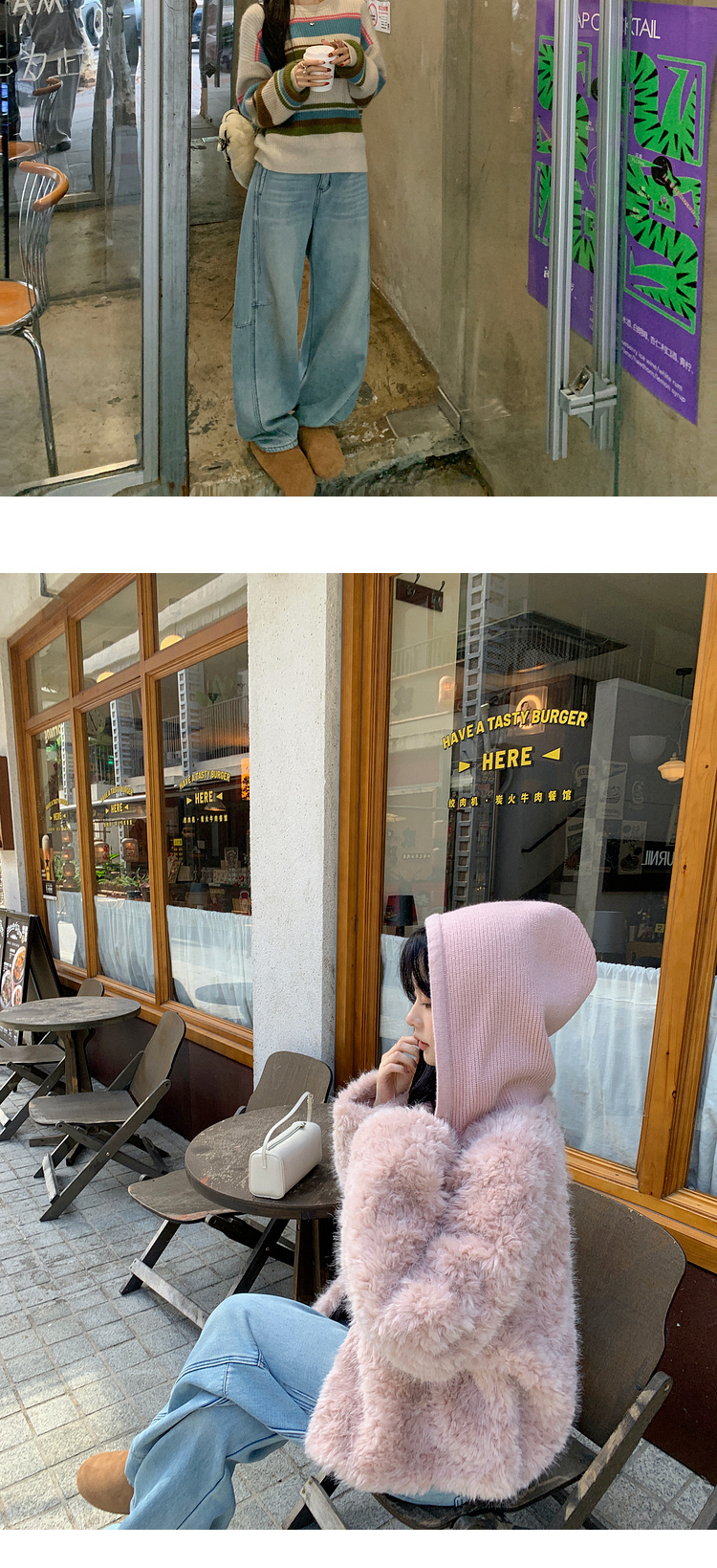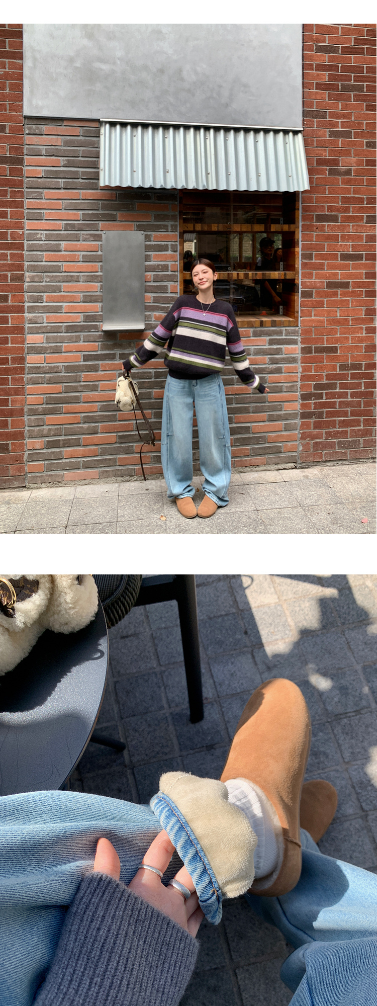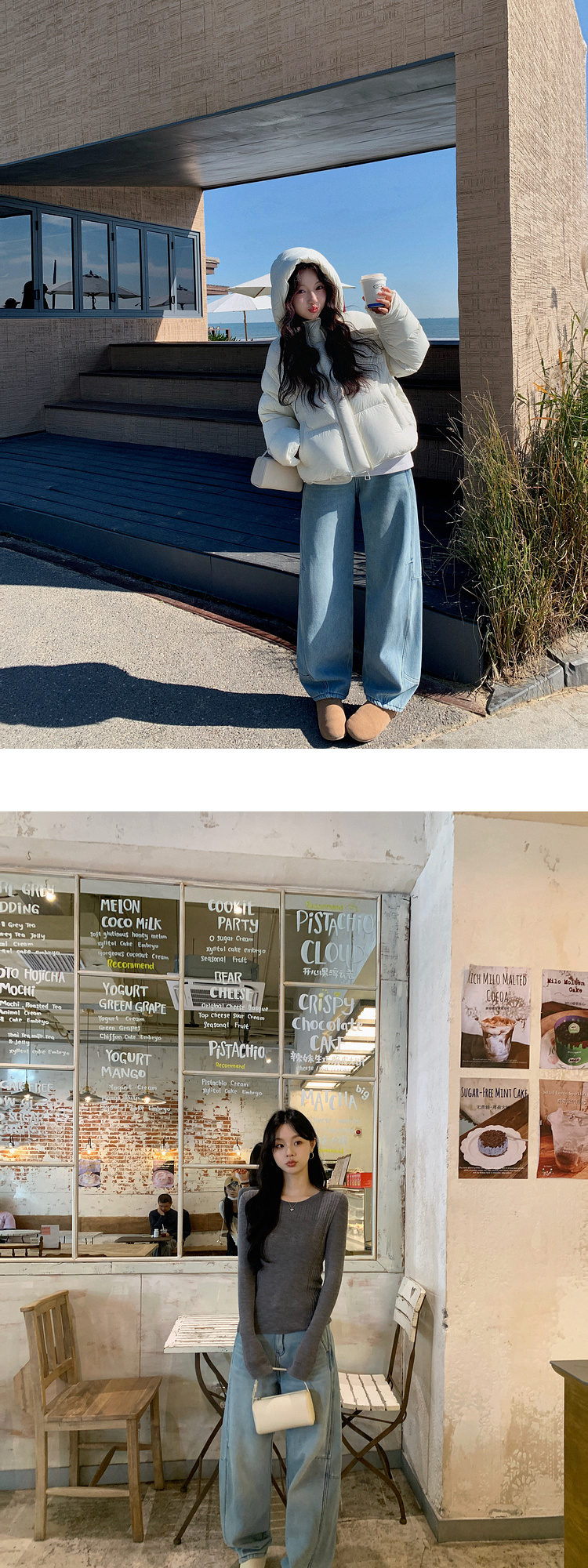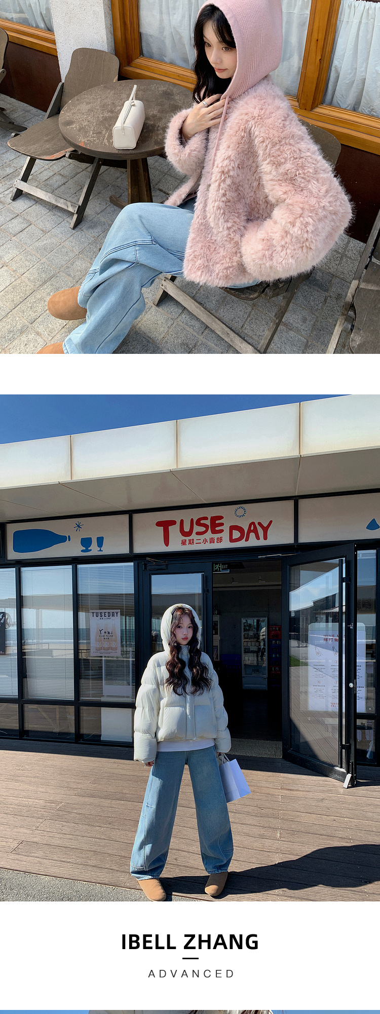 Zhang Beibei Ibell Thickened Baby Velvet Design Warm Slimming Three-Dimensional Cut Curved Knife White-Washed Jeans