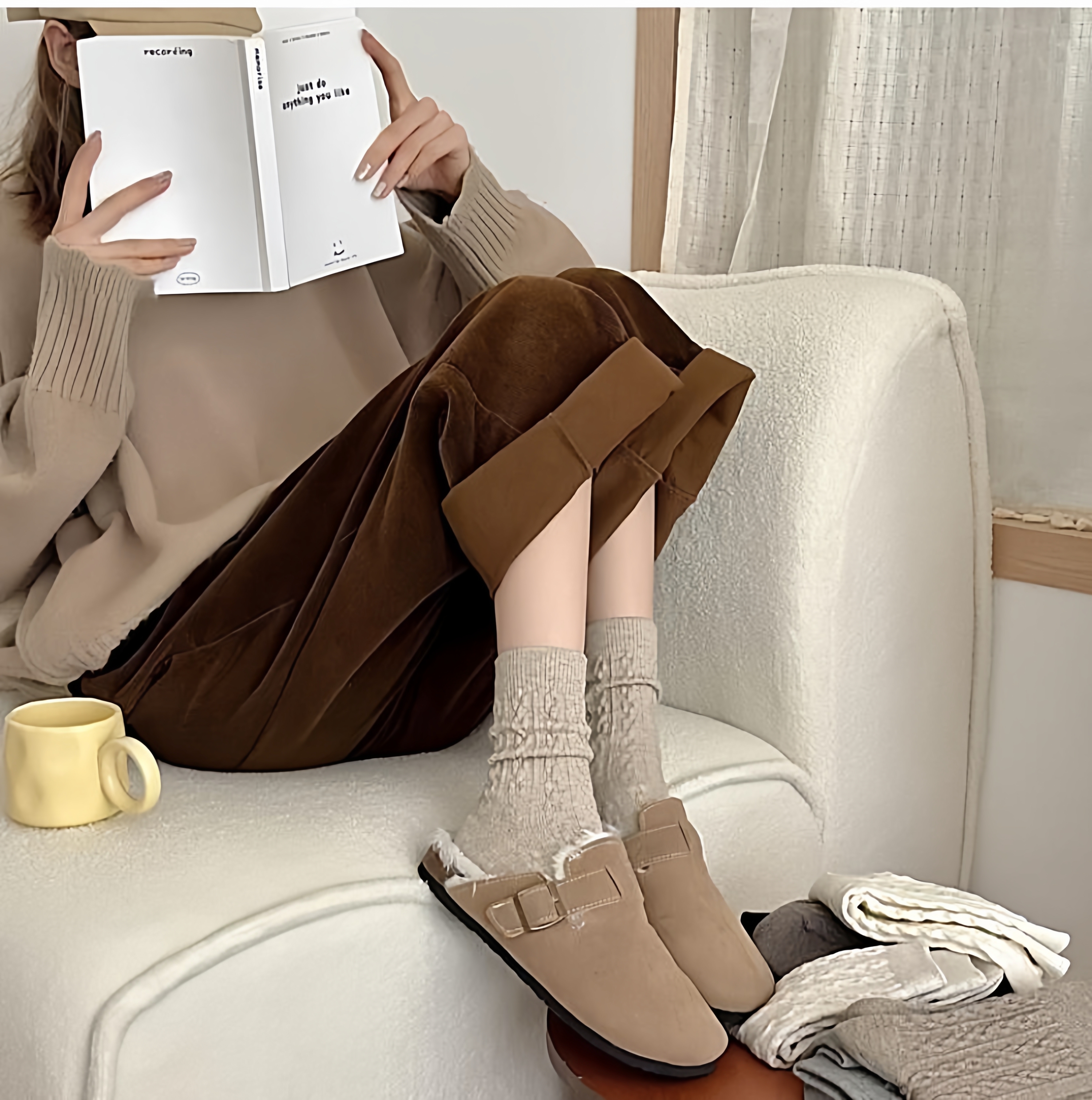 Twisted Women's Socks, Mid-Calf Length, Autumn and Winter Thickened Warm Fleece Women's Winter Slouch Socks, Long Mid-Length Style