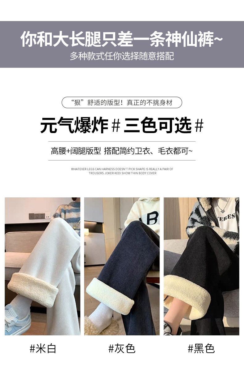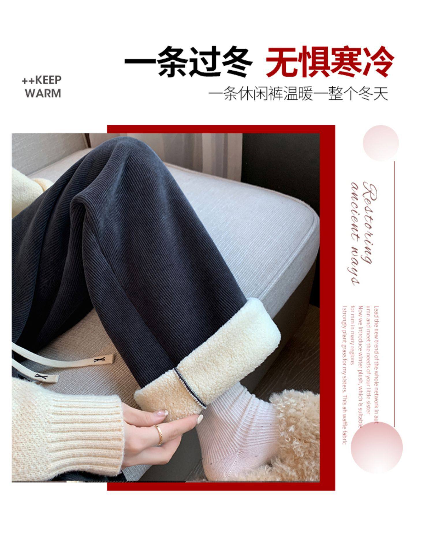 Straight-Leg Pants for Women, Winter Fleece-Lined Thickened Wide-Leg Trousers