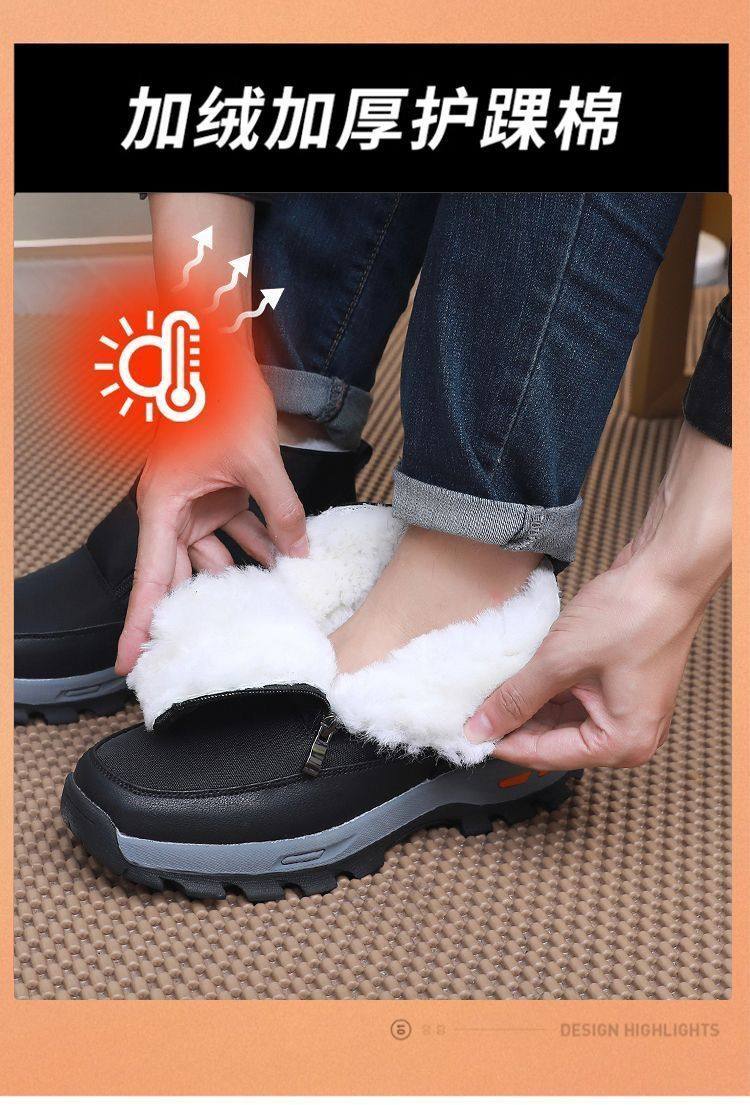 Old Beijing Cloth Shoes, Winter Cotton Shoes for the Elderly, Men's Fleece-Lined Warm Wool Shoes, Non-Slip Waterproof Casual Dad Shoes, Snow Boots