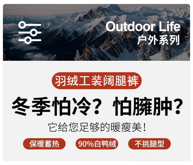 Women's down Pants for Winter Outerwear 2025 New Style White Duck down Cold-Proof Workwear Wide-Leg Pants for Extreme Cold Below -40 Degrees
