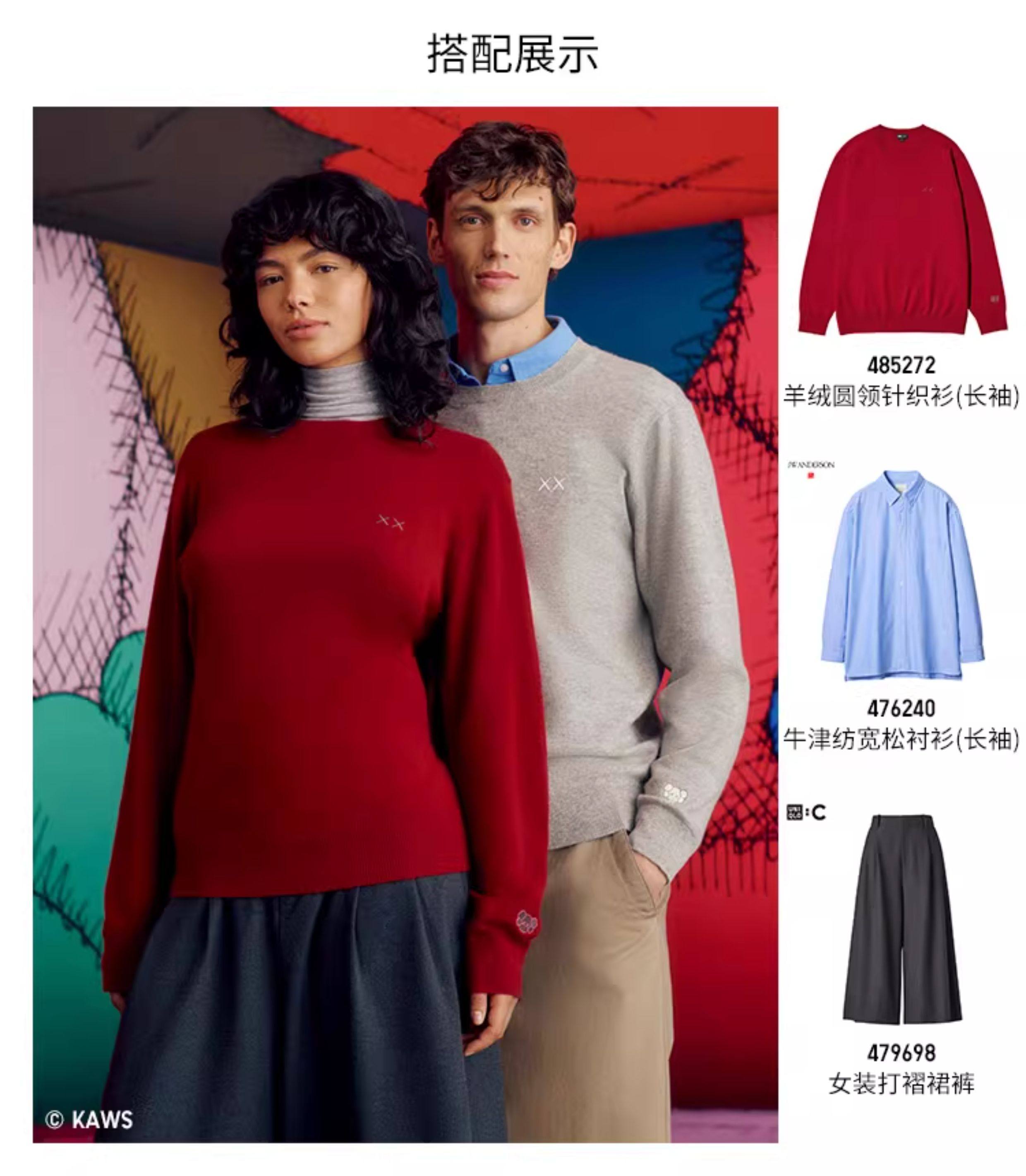 Uniqlo Men's and Women's Clothing Kaws Cashmere Round Neck Knitwear Long-Sleeved Sweater 25 Autumn and Winter New Style 485272