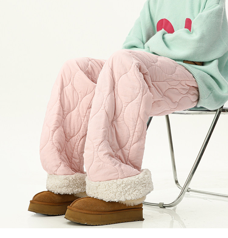 Minus 40 Degrees Thickened Lamb Wool Cotton Pants for Women and Men, New Winter Style, Loose Fit, Windproof, Waterproof, Snow Diamond Pattern Ski Pants