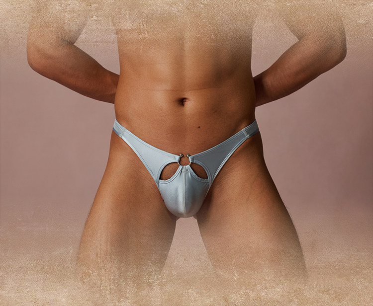 Sexy Men's Thong with a Chaotic Realm Within the Semi-Beast Realm, Glossy Horse Hoof Ring Design, Single Cutout, Low Waist
