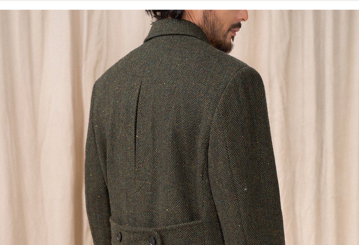 【High Weight 100% Wool】Cultum Herringbone Tweed Double-Breasted Wool Coat Italian Style Autumn and Winter Men's Jacket