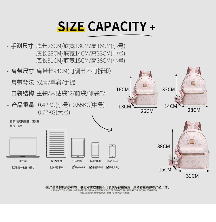 Ur Women's Dopamine Pink Hello Kitty Backpack, Light Luxury Niche High-Value Commuter School Bag