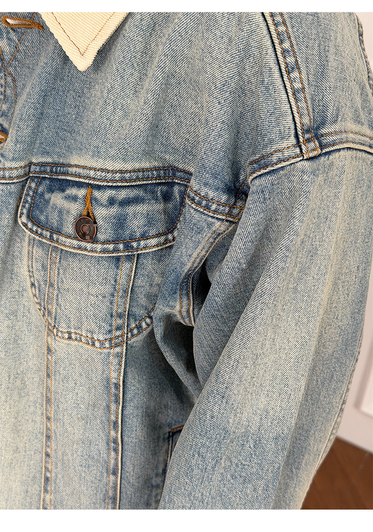 Row Style Japanese Okayama Kaihara Denim Flannel Heavy Jacket Retro Color-Blocked Lapel Coat