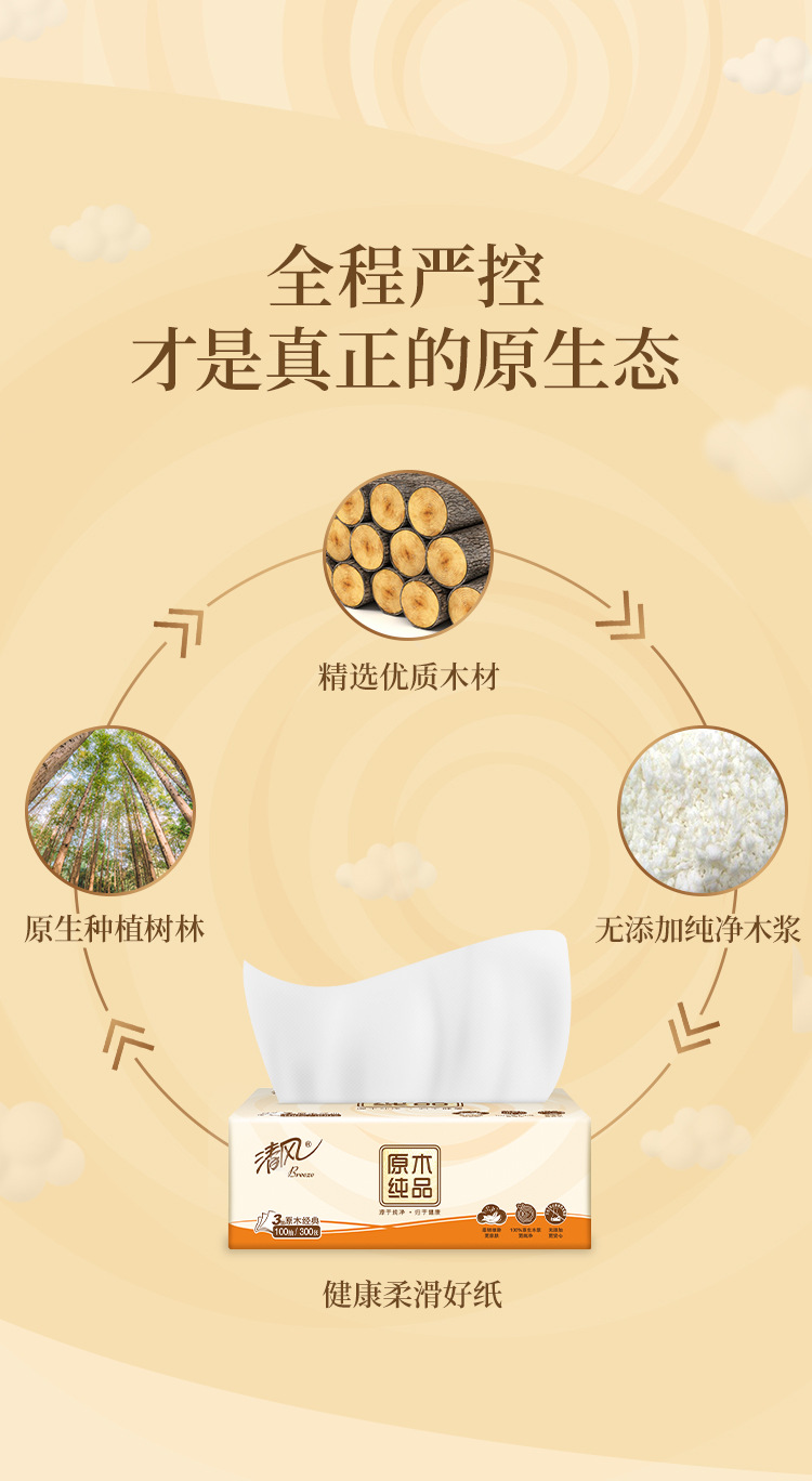 Qingfeng Tissue Paper, Pure Wood Pulp, 3-Ply, 100 Sheets, 24 Packs, Tissue Box, Household Tissue, Napkin, Hand Towel
