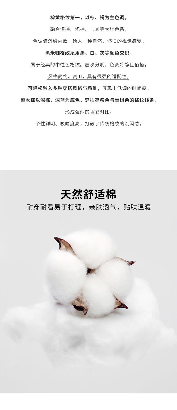 红茶咖格纹、海苔米格纹、檀木棕格纹、棕黄格纹面料:100%棉