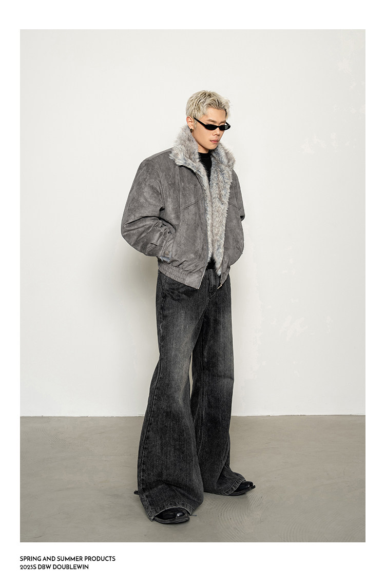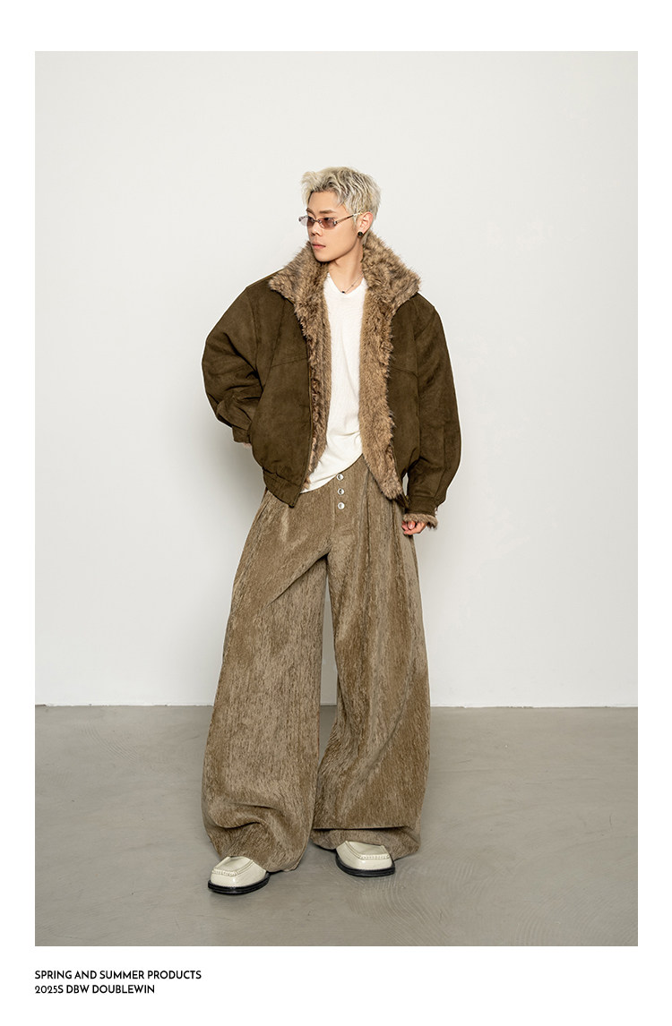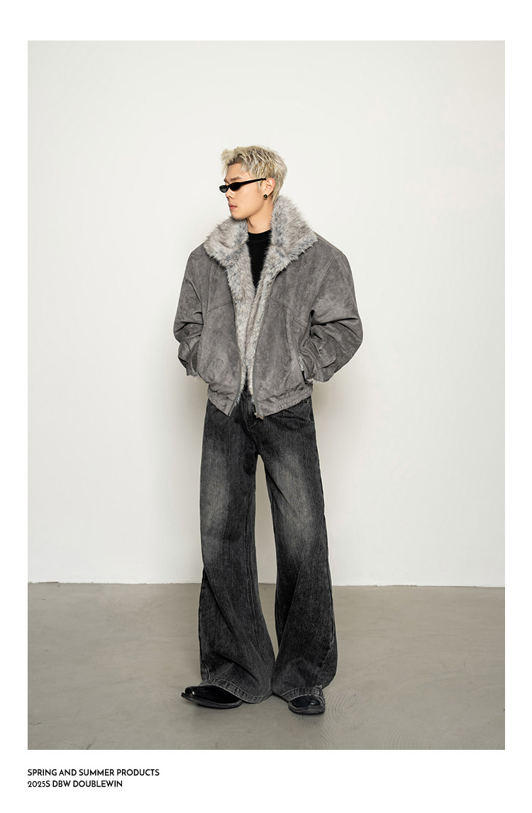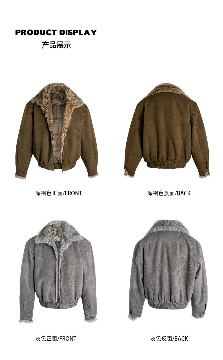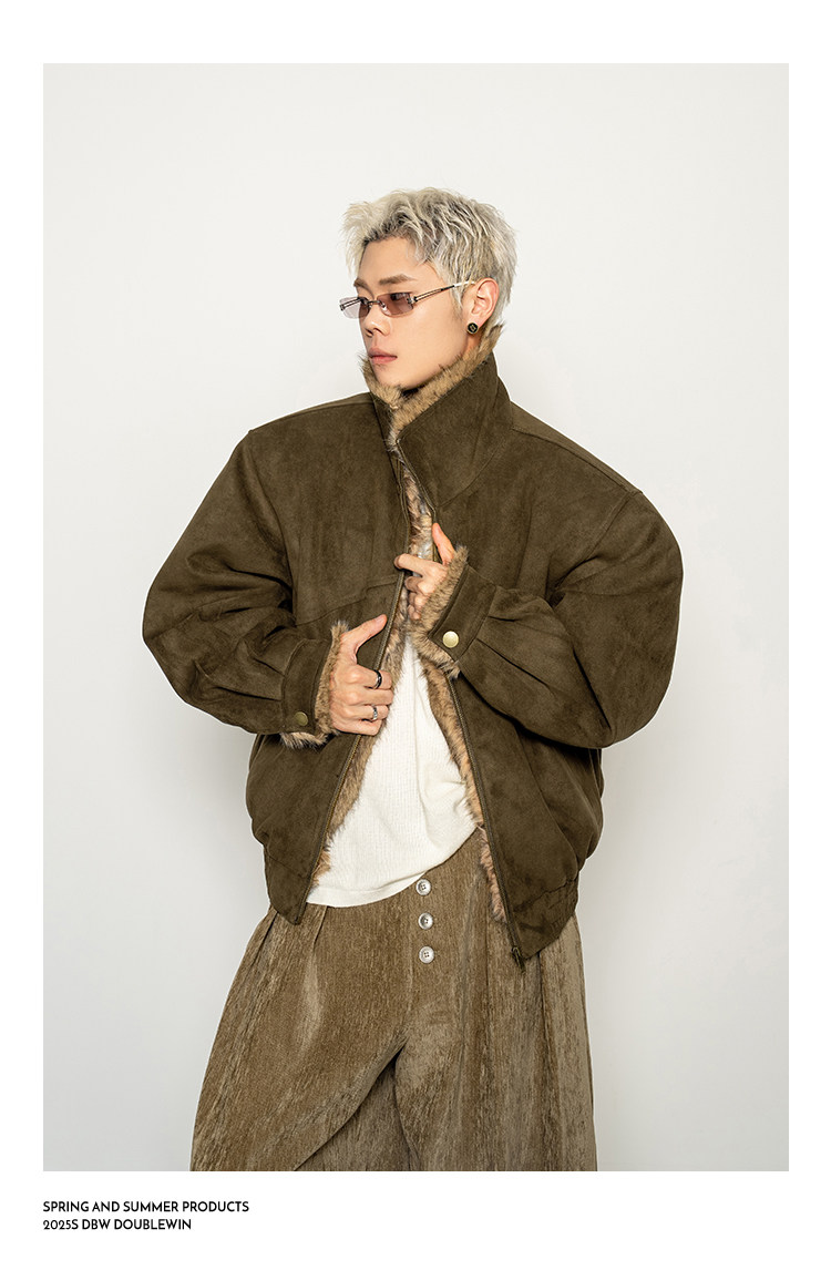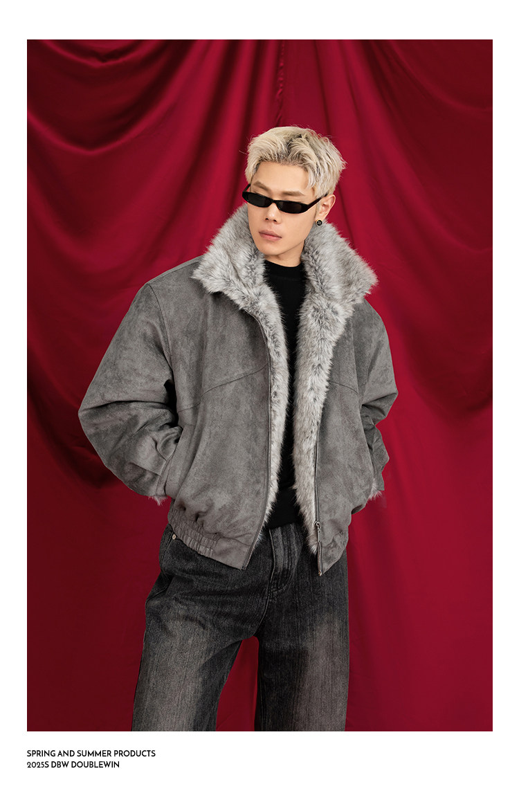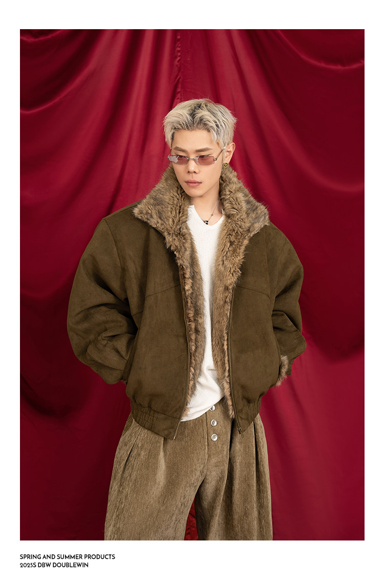 Dbw Doublewin Heavy Suede Faux Fox Fur Cotton Jacket Winter Loose Wide Shoulder Thick Coat