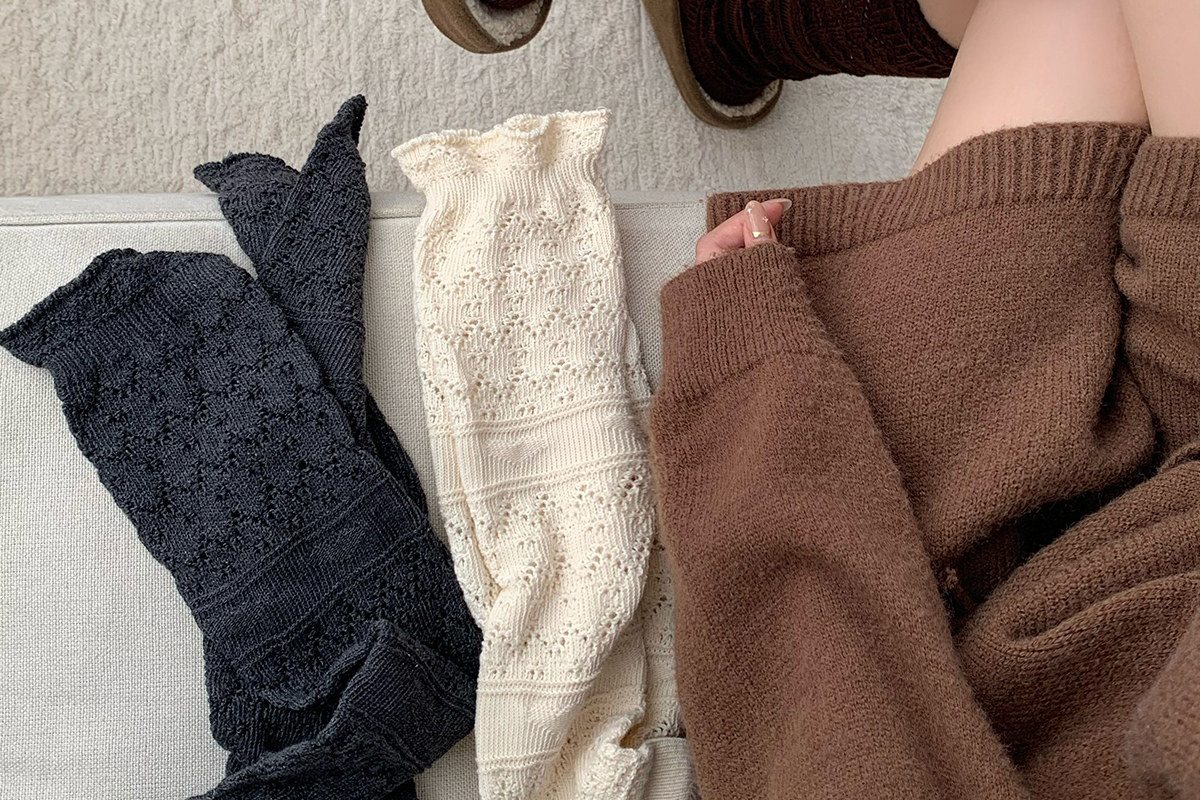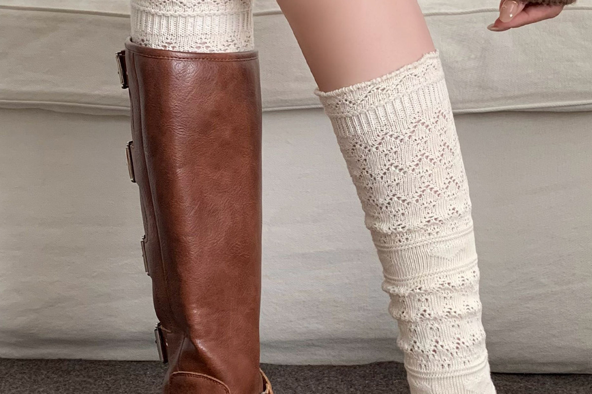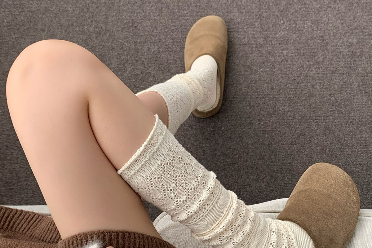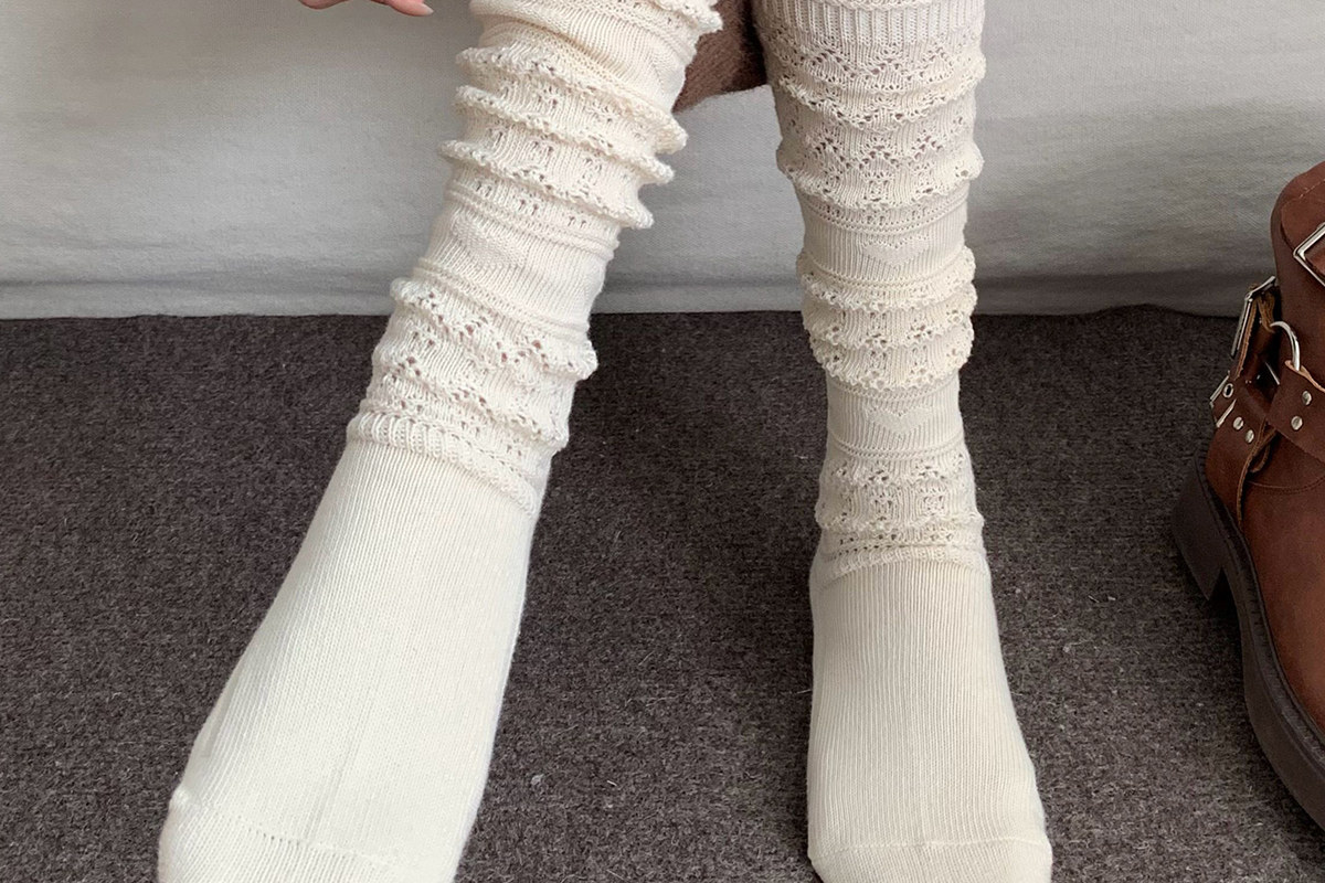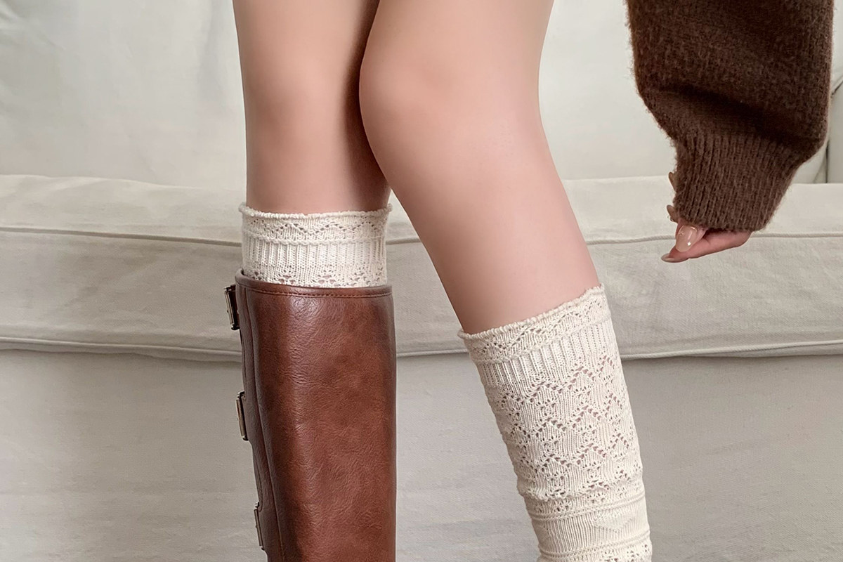 Lace Calf Socks for Women, Autumn and Winter Pure Cotton Japanese Retro Warm Wool Long Socks Paired with Long Boots, Slouch Socks