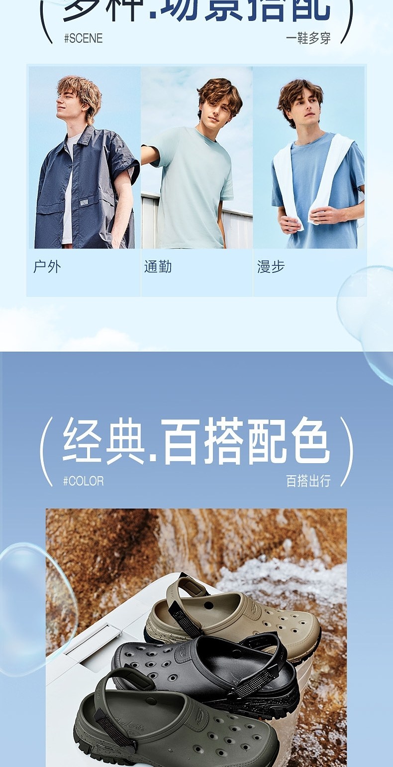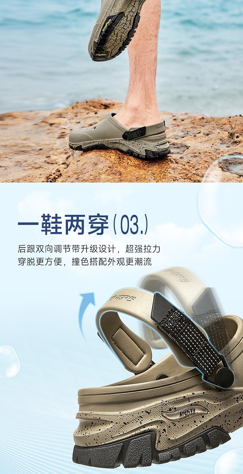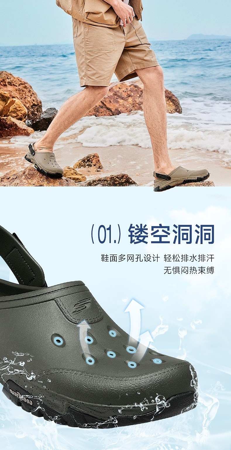 Skechers Hippo Bubble Shoes Men's Beach Shoes Autumn Outdoor Clogs Breathable Thick-Soled Sandals