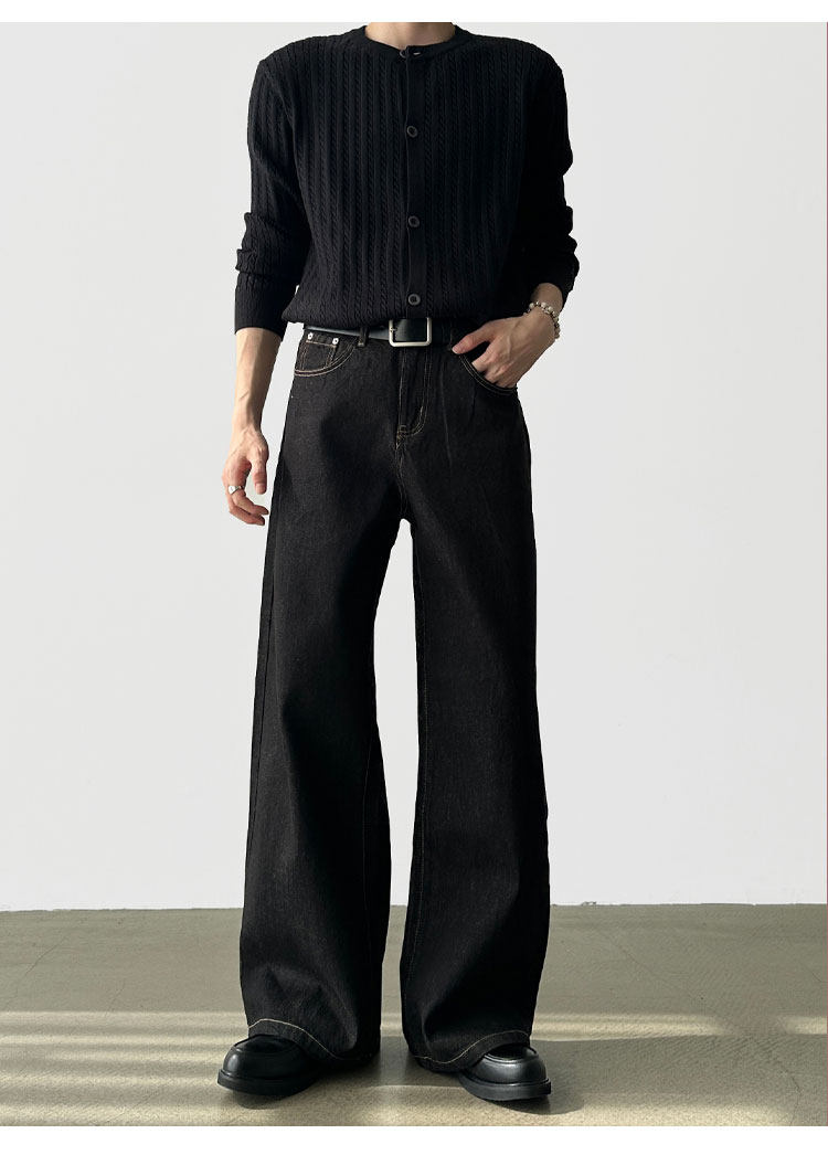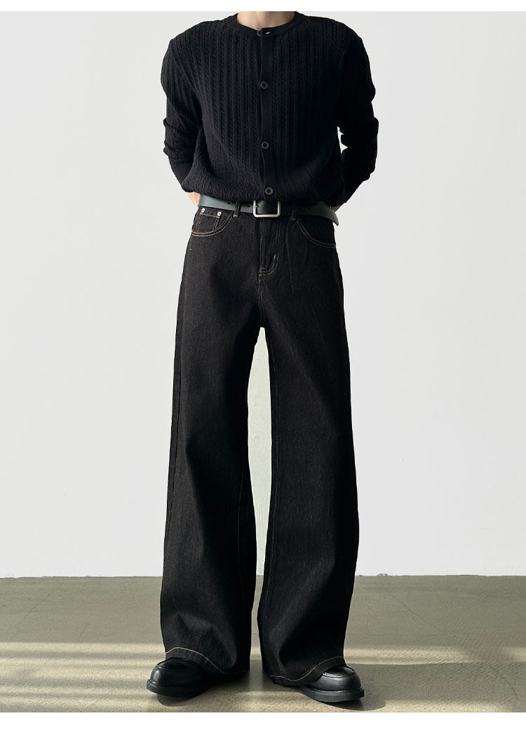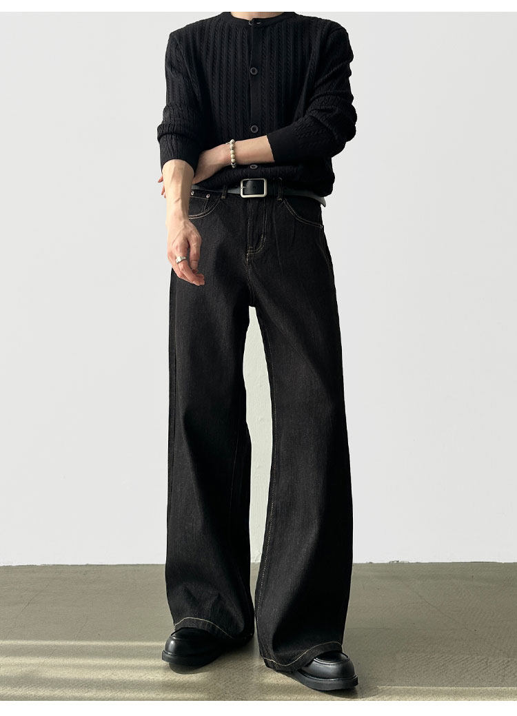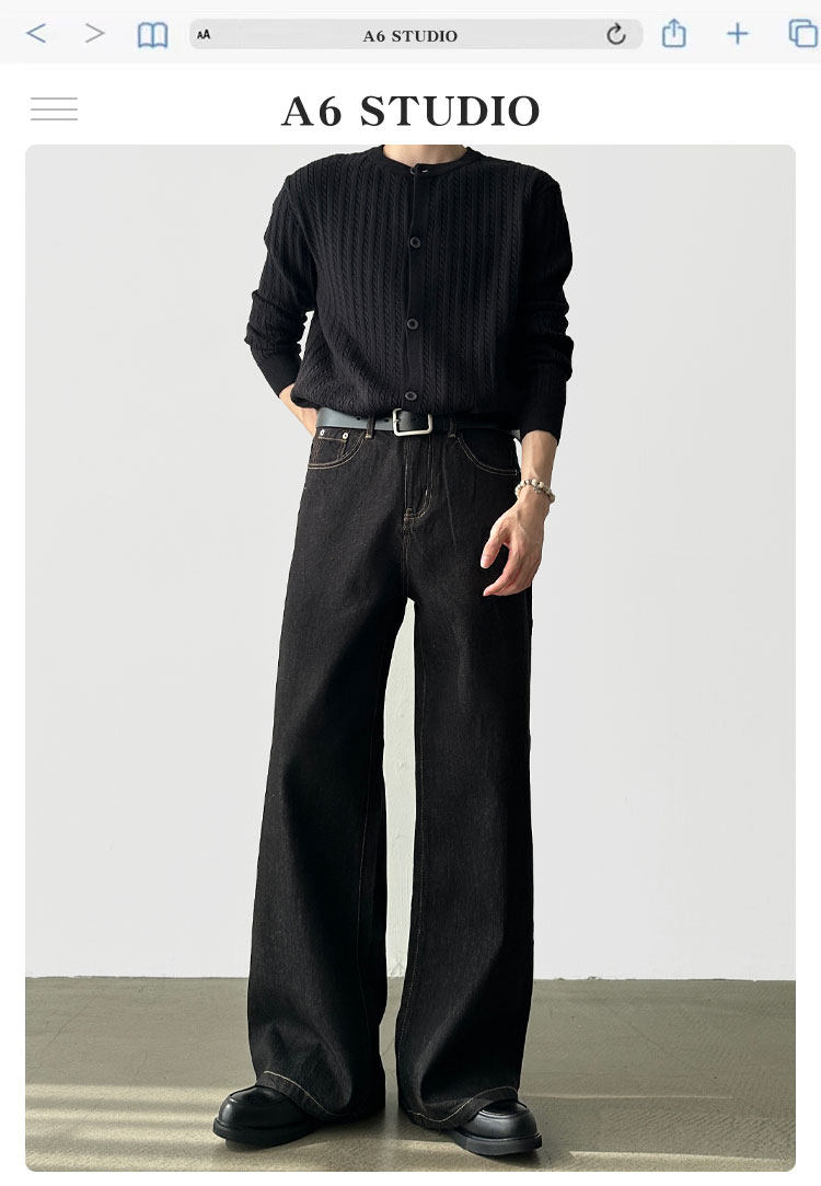 A6 Studio Autumn Non-Fading Raw Denim A-Line Wide-Leg Jeans for Men, Straight Loose Casual Work Pants
