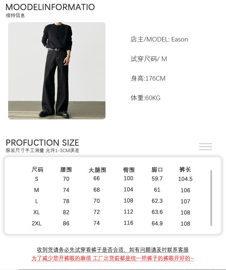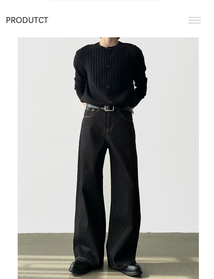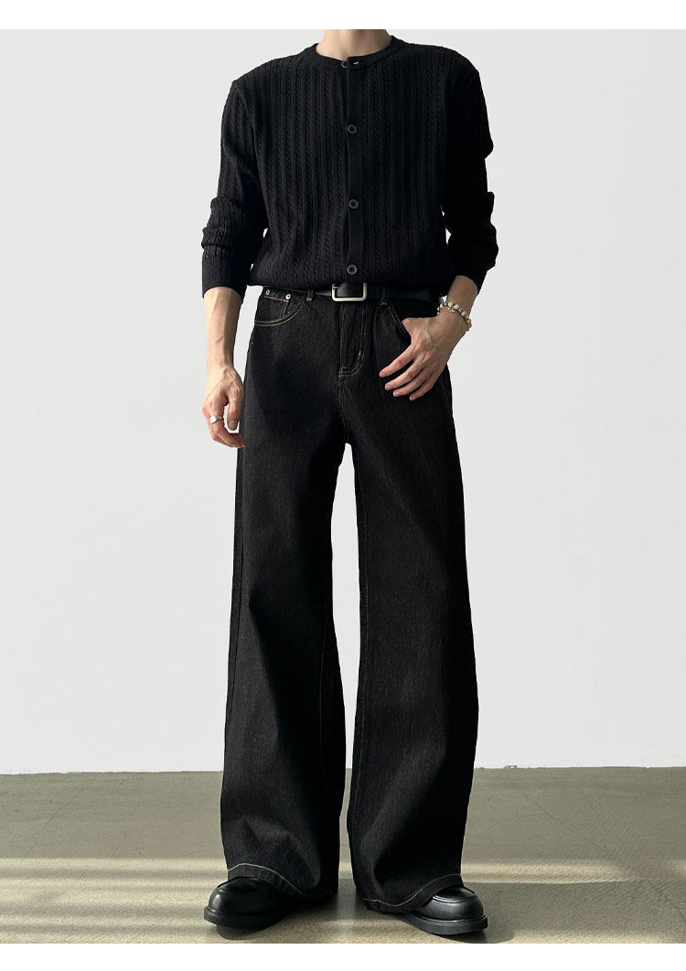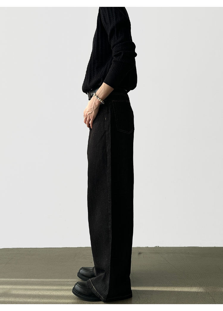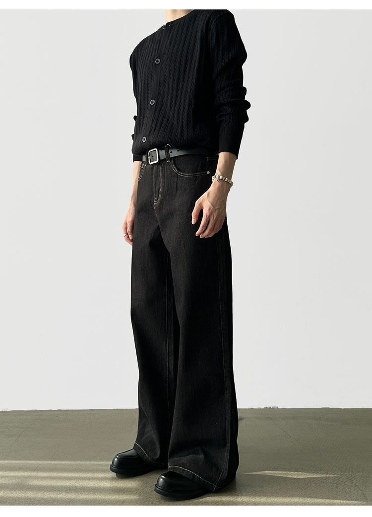 A6 Studio Autumn Non-Fading Raw Denim A-Line Wide-Leg Jeans for Men, Straight Loose Casual Work Pants