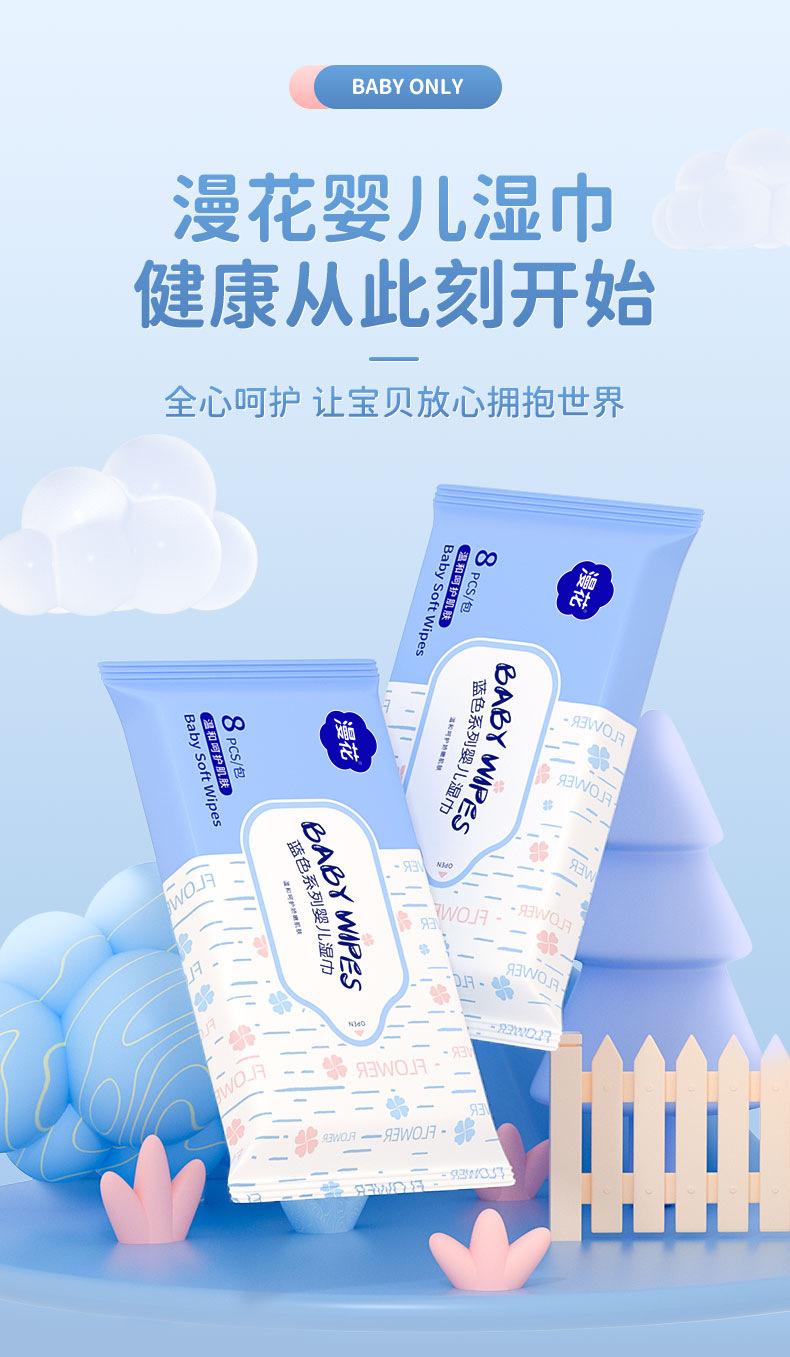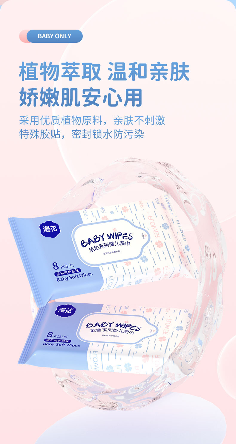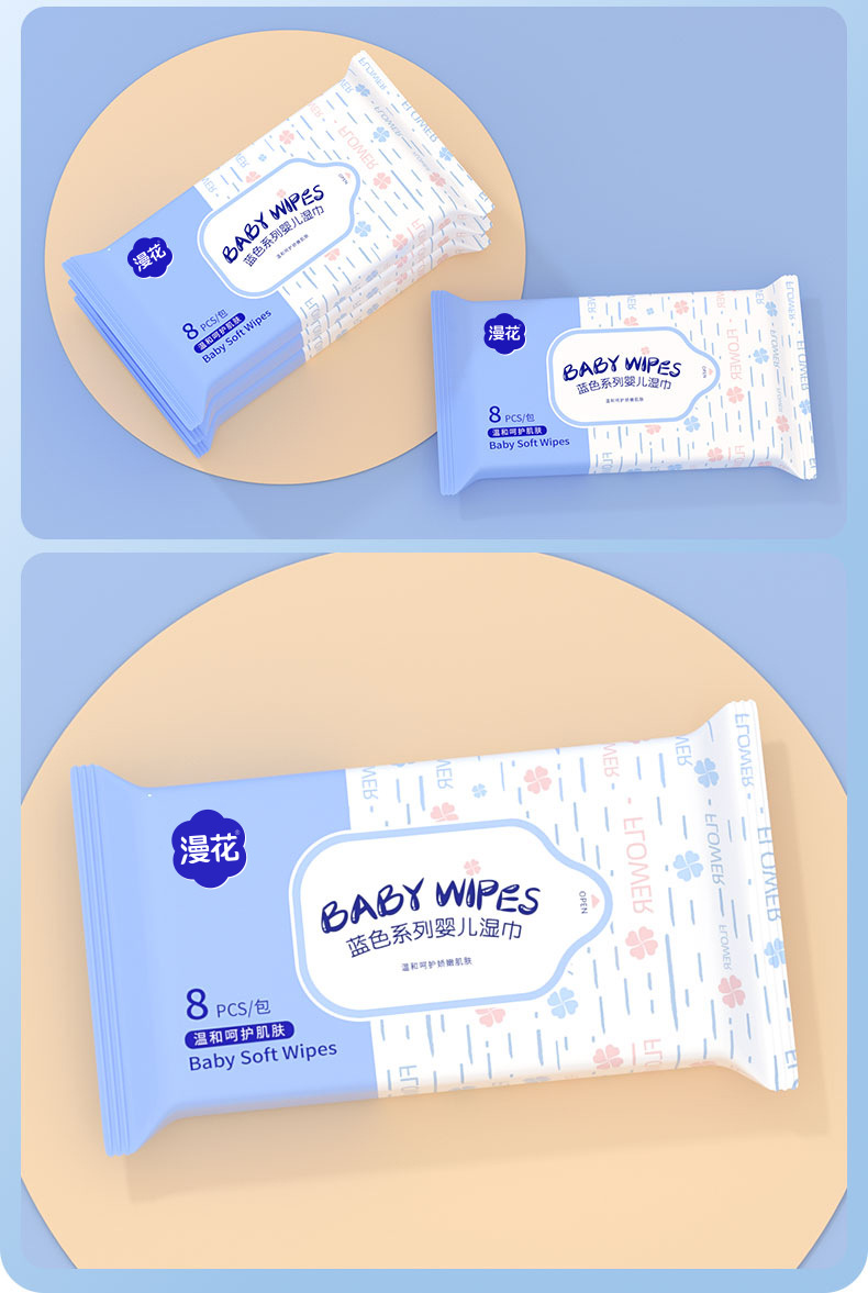 Baby Wet Wipes Small Pack 8 Sheets Portable Hand and Mouth Cleaning Wipes Disposable Sanitary Wet Wipes