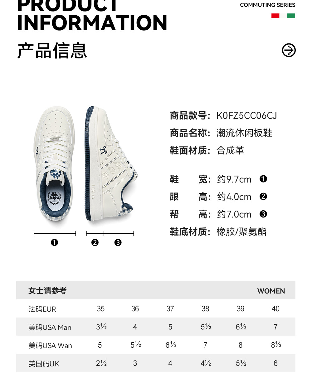 Kappa Women's White Sneakers 2025 Autumn and Winter New Thick-Soled Height-Increasing Student Sneakers Casual Sports Shoes