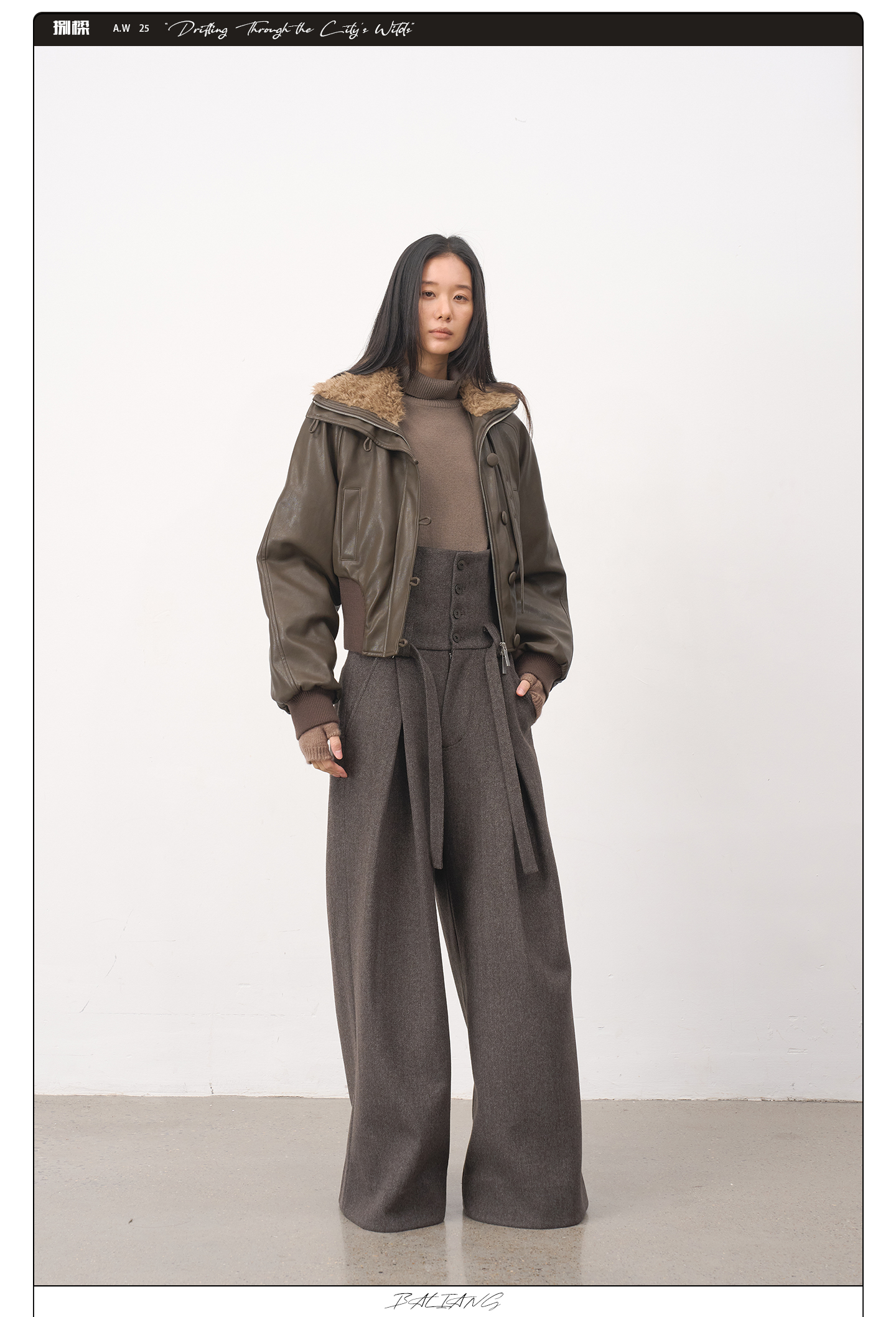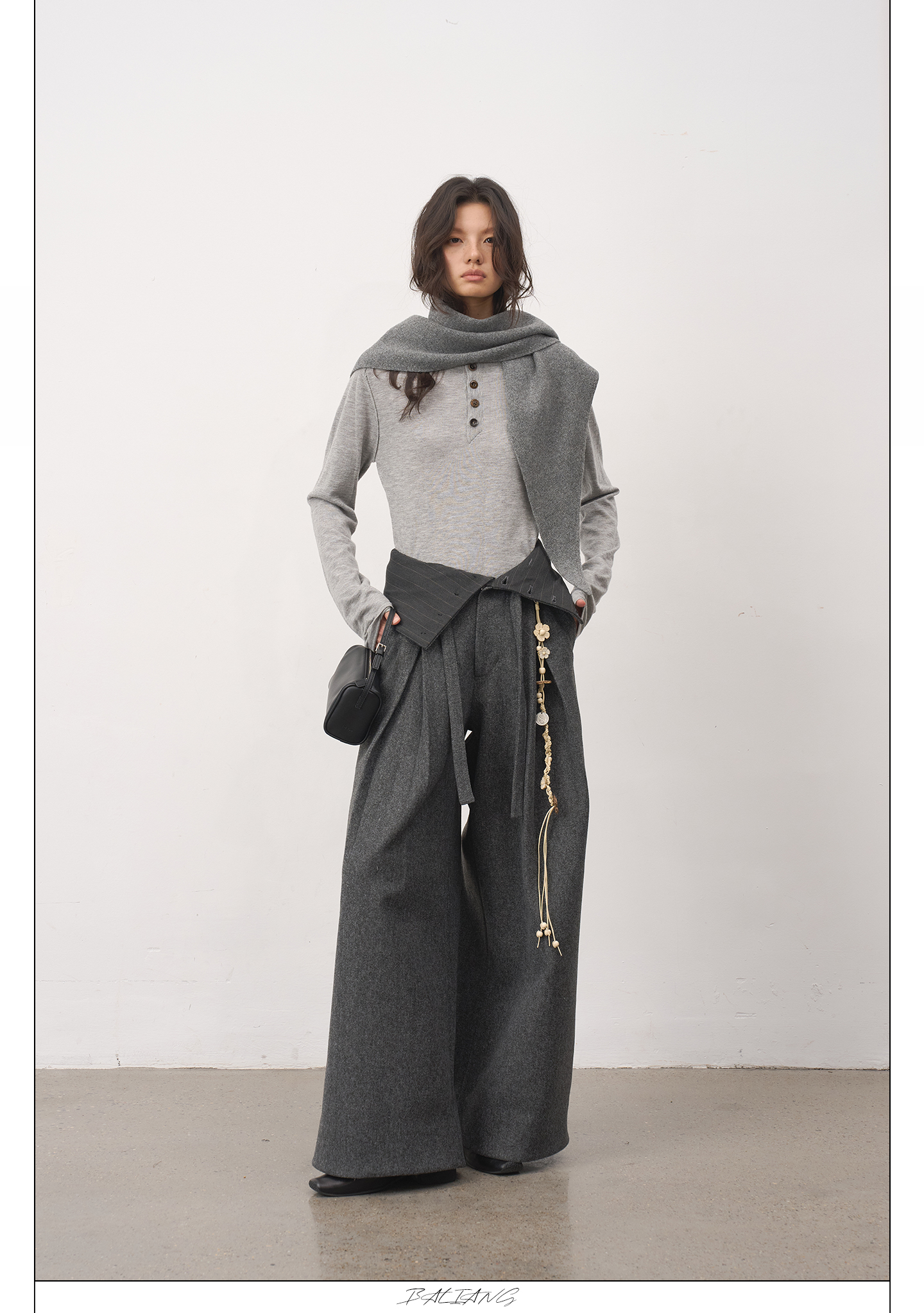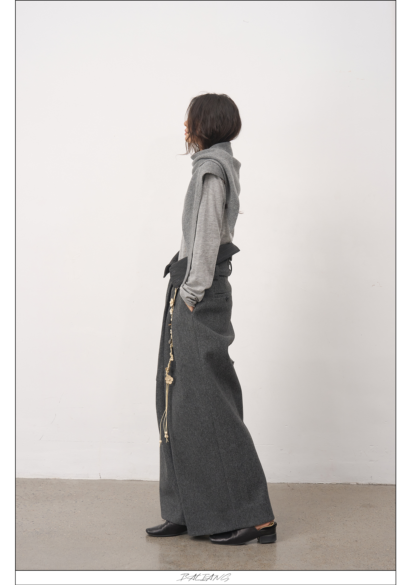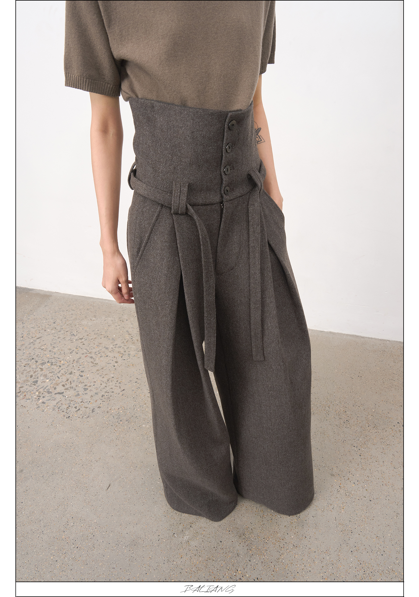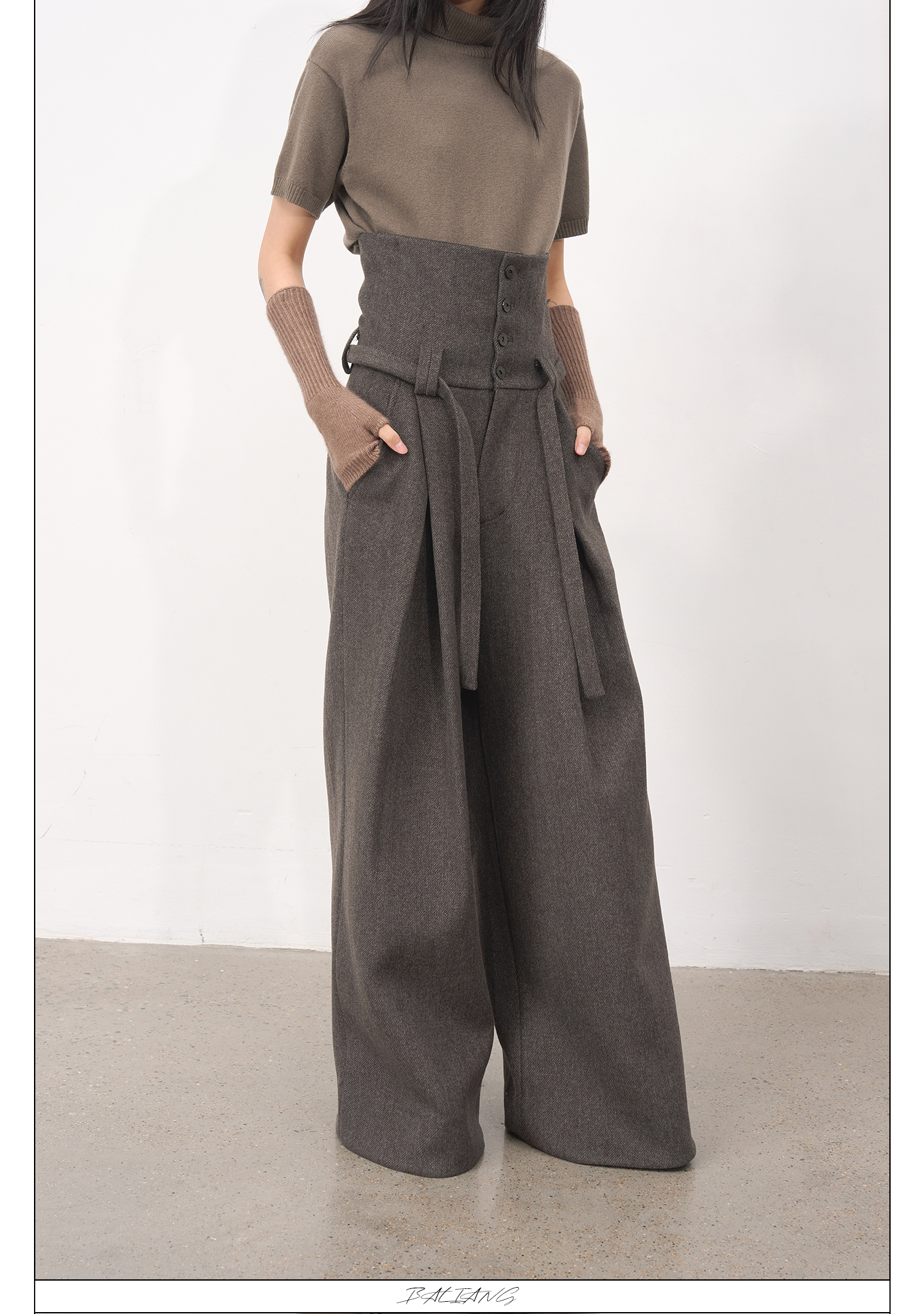Baliang「捌樕」'Pulse' Foldable Pleated Waistband Wool Blend Woolen Trousers