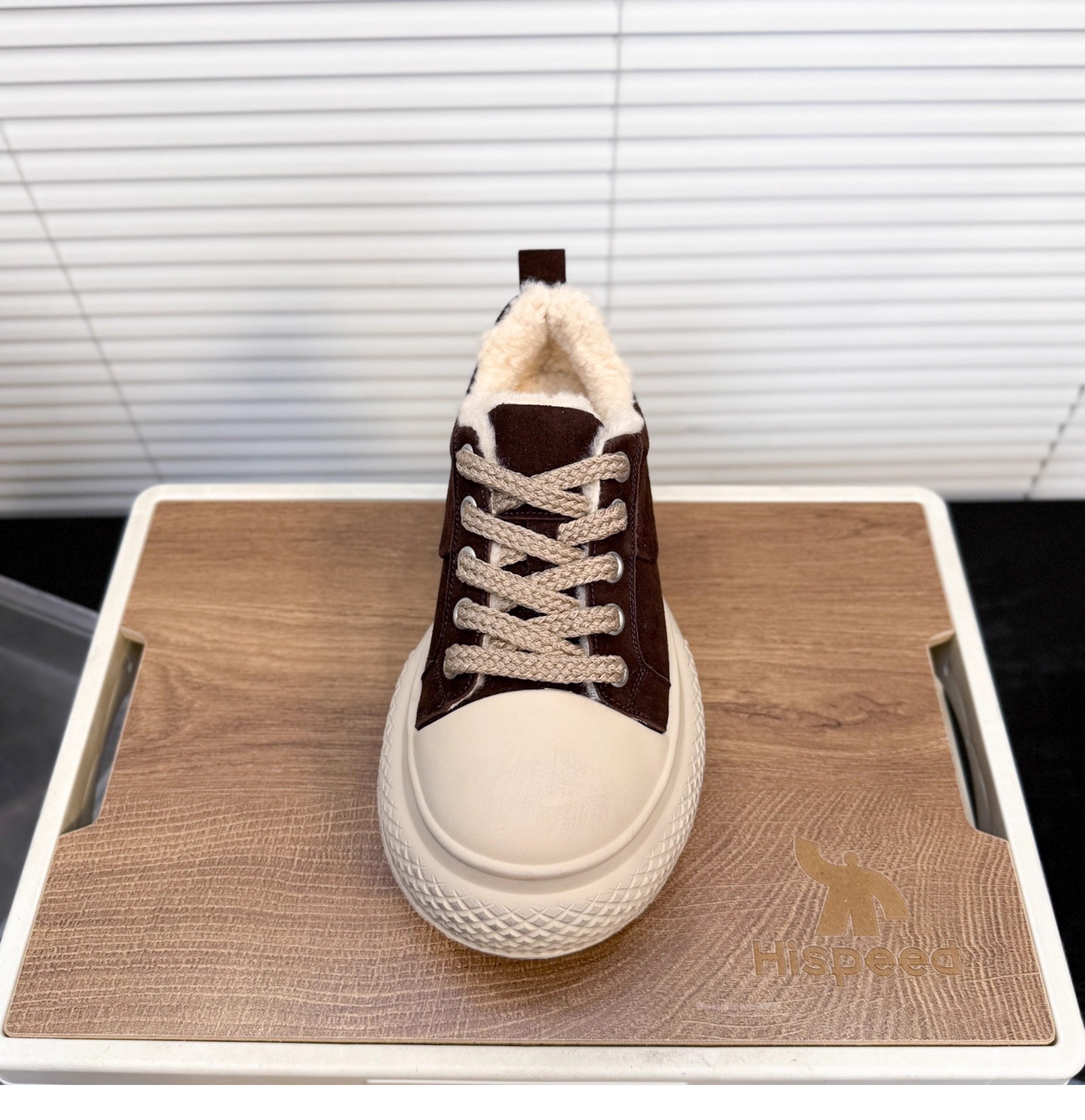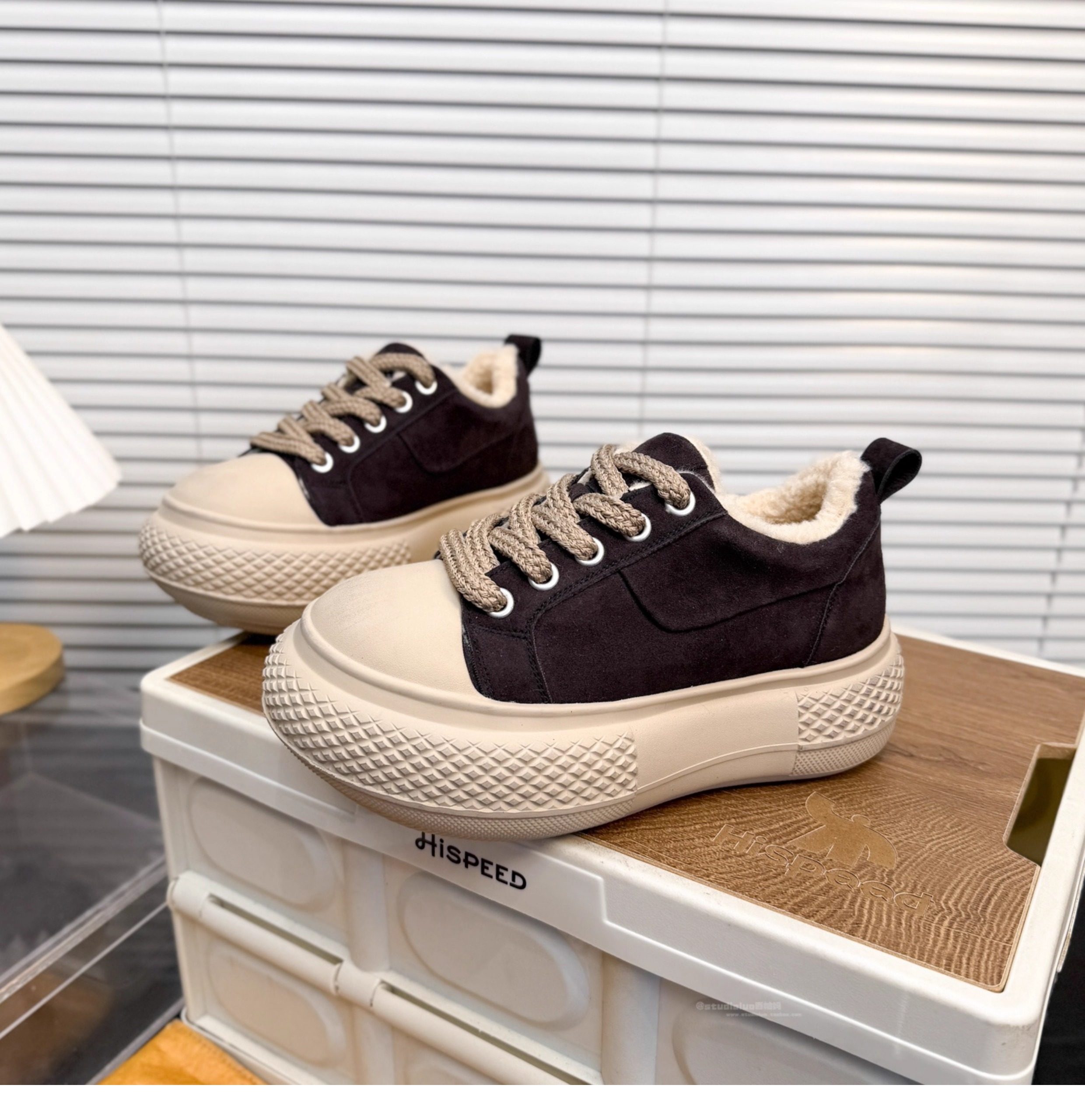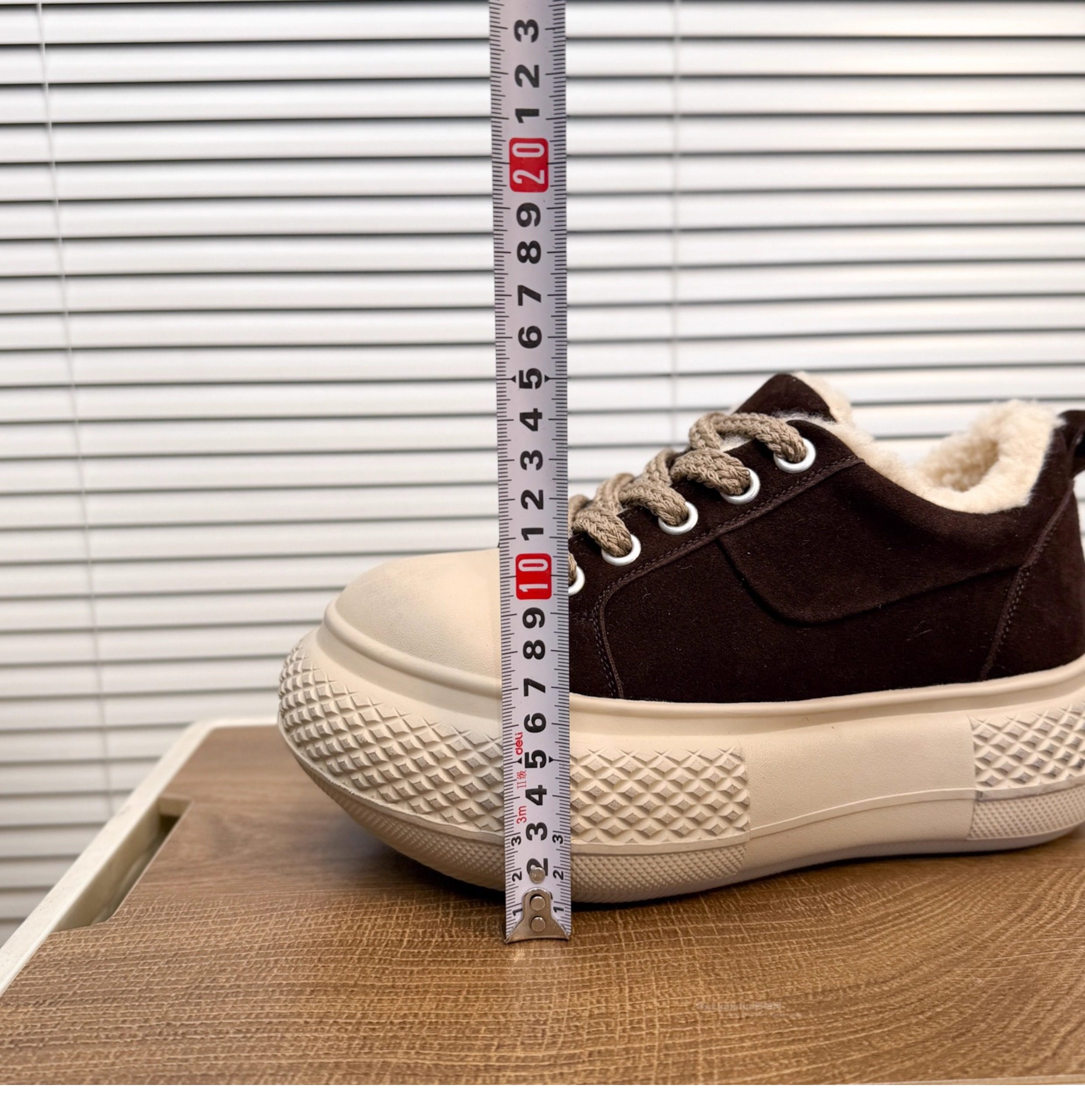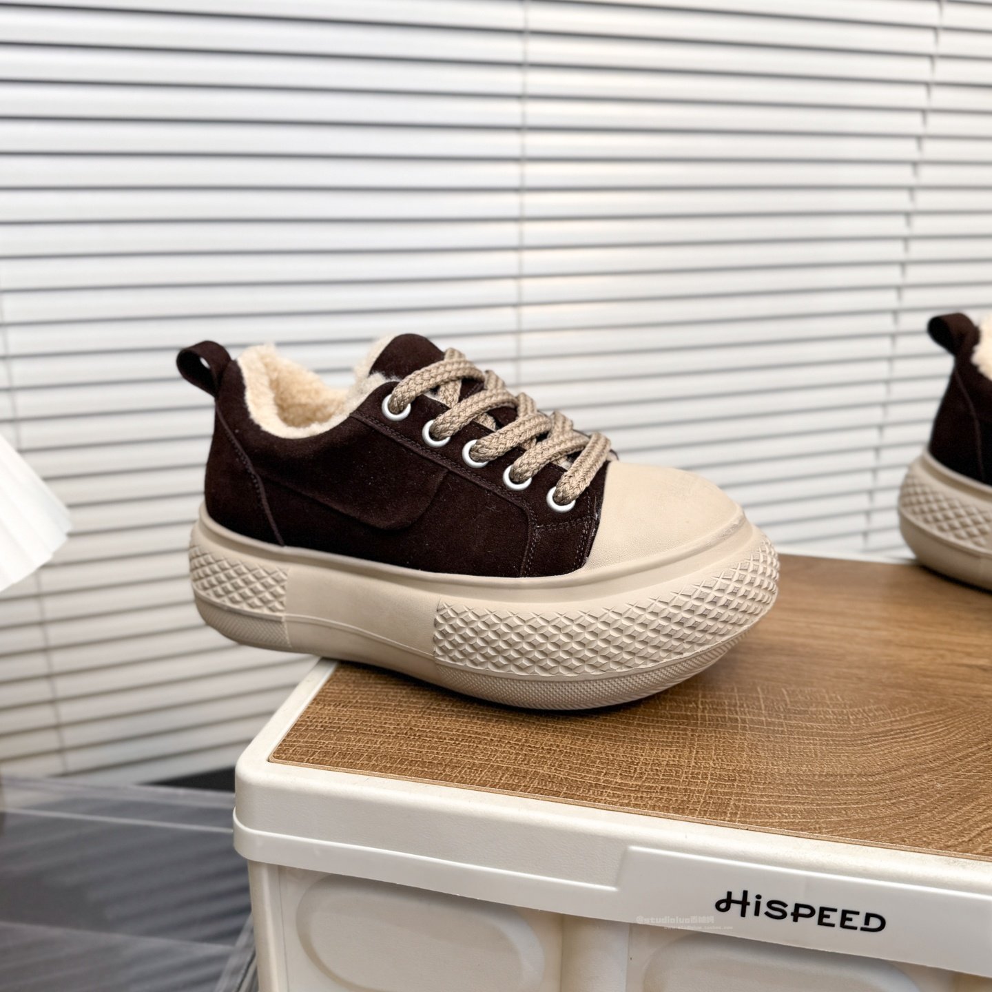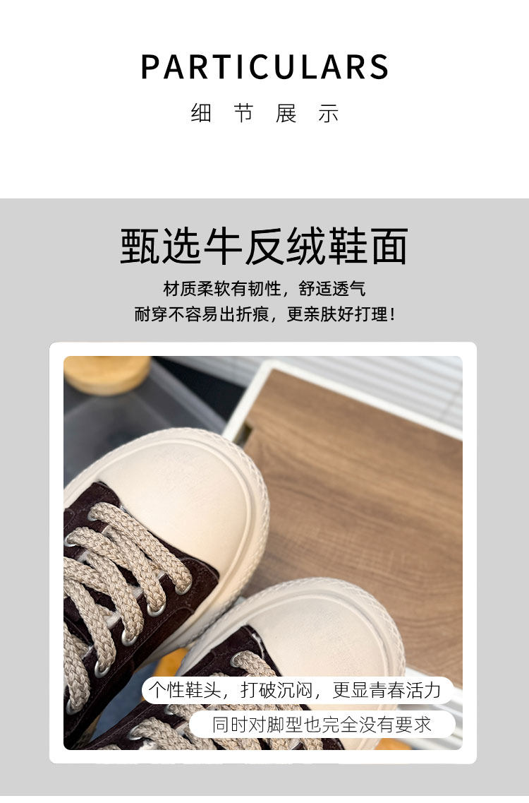 Hong Kong Style Suede Leather Large-Toe Plush-Lined Loafers for Women, 2025 Winter New Fashion Thick-Soled Height-Increasing Casual Sneakers