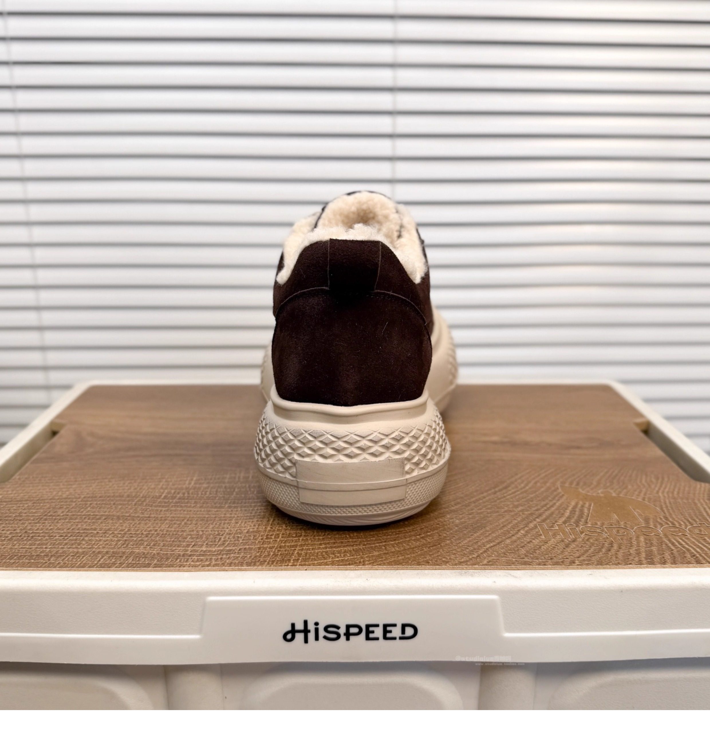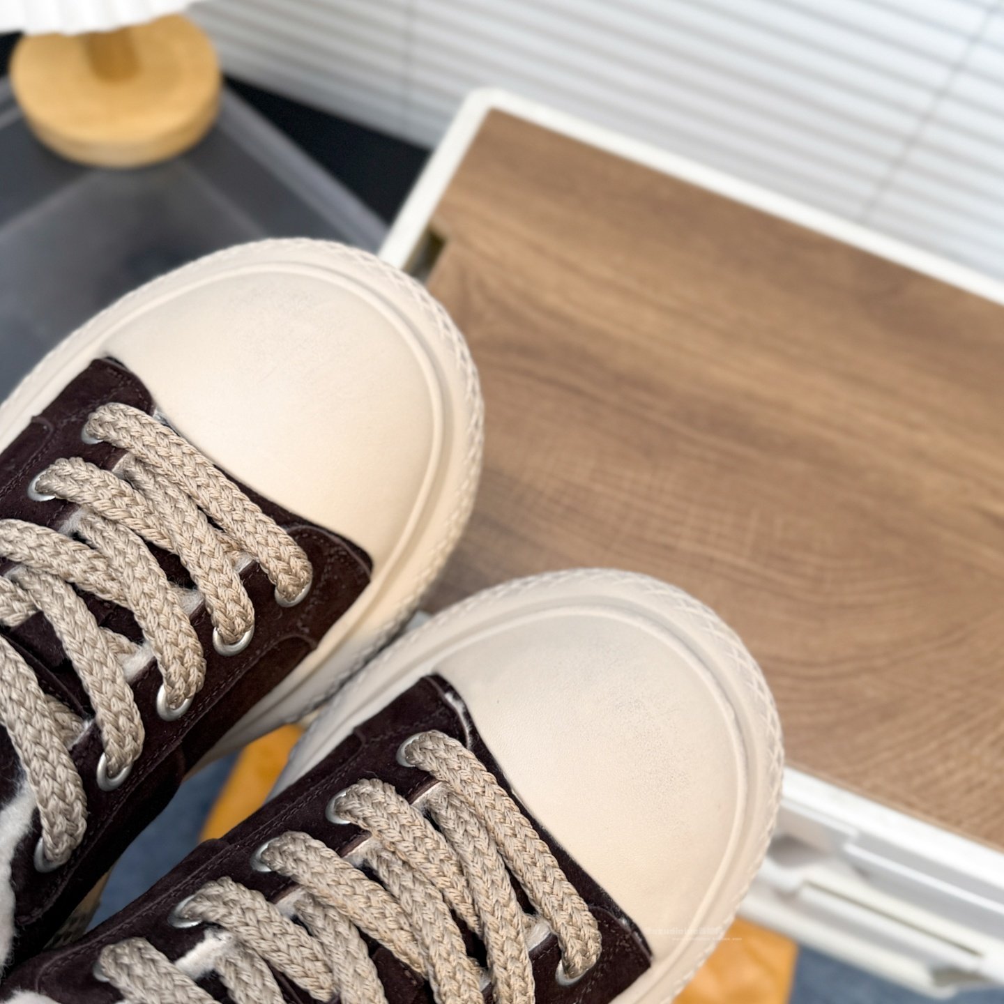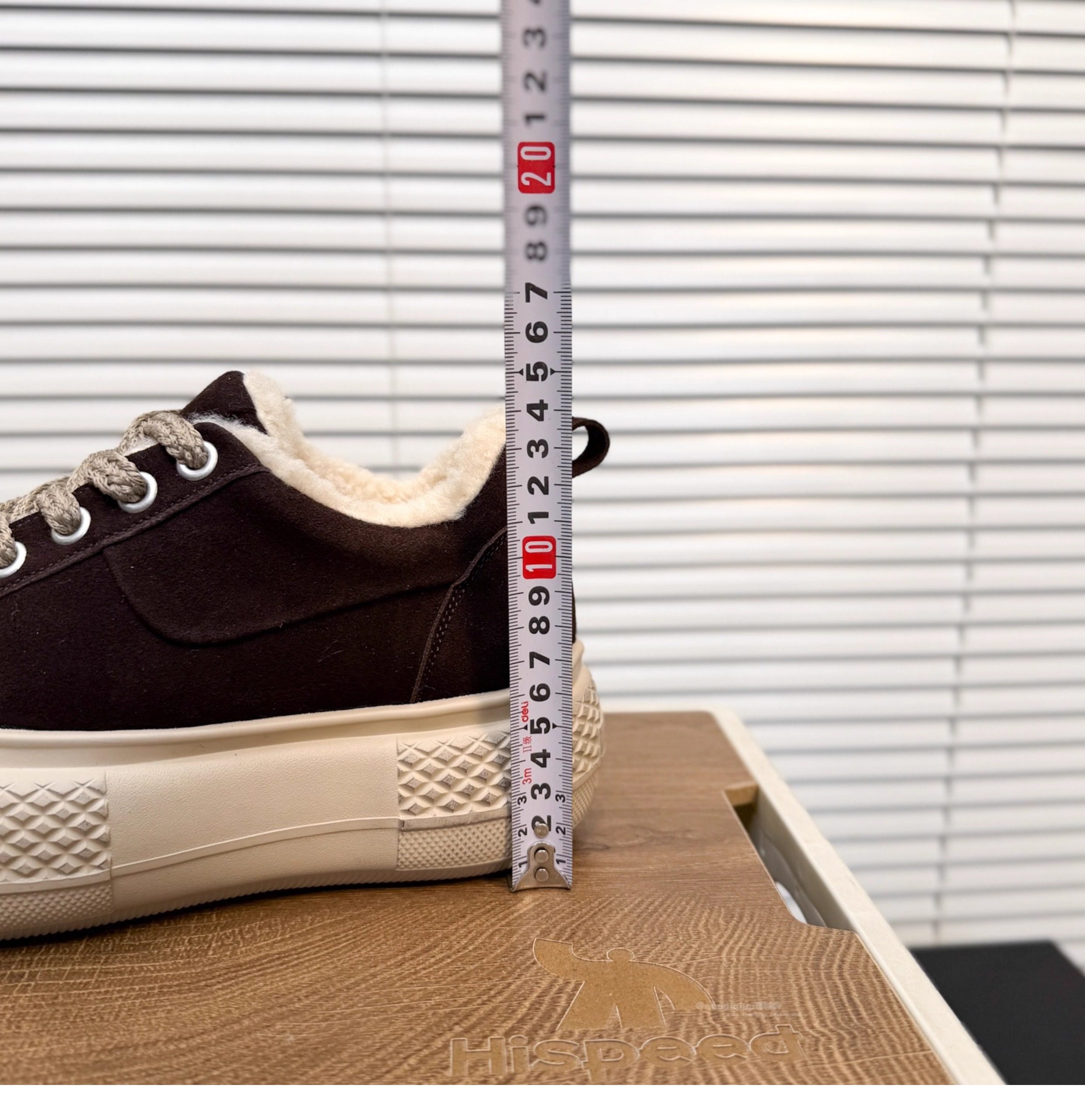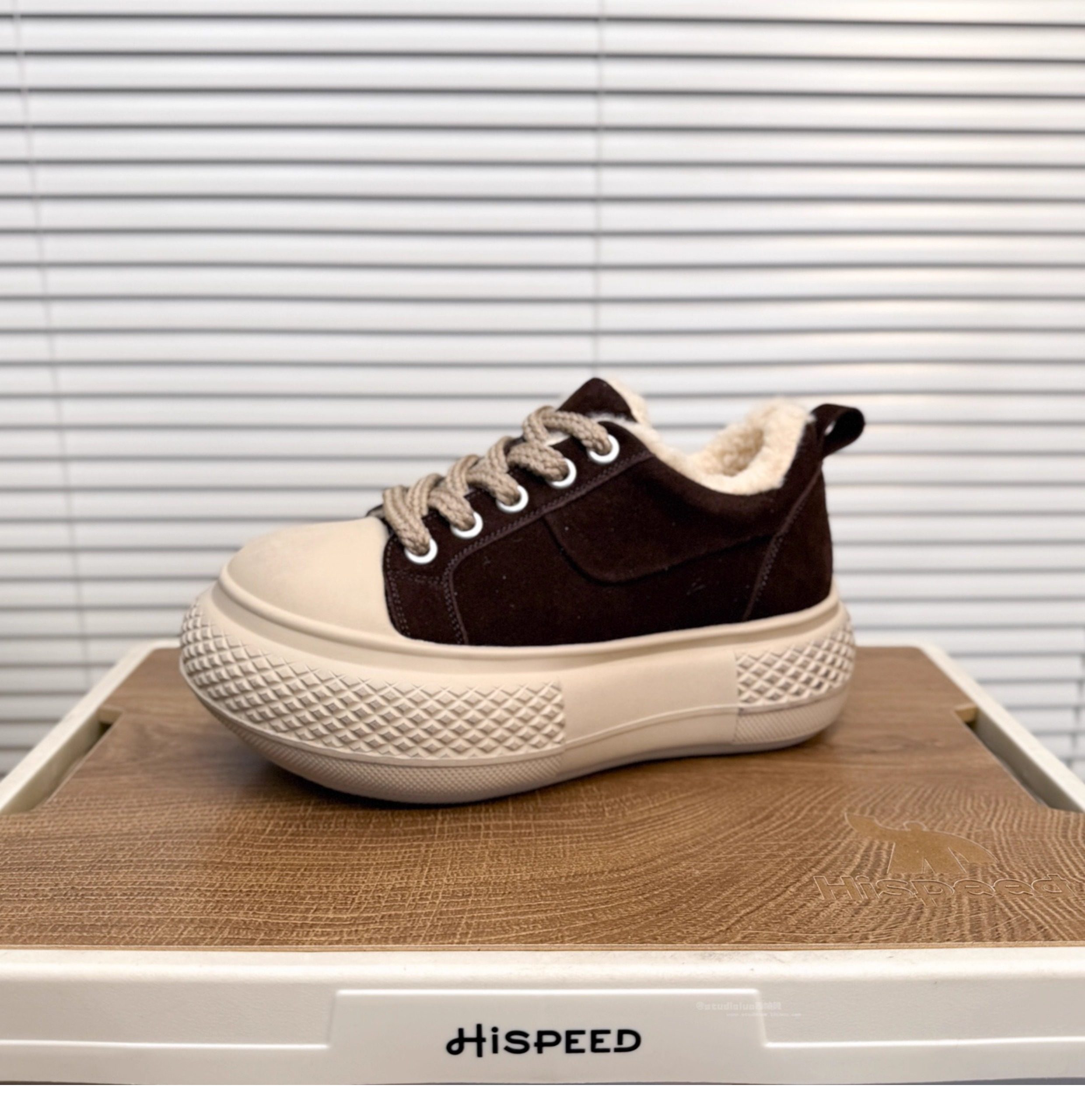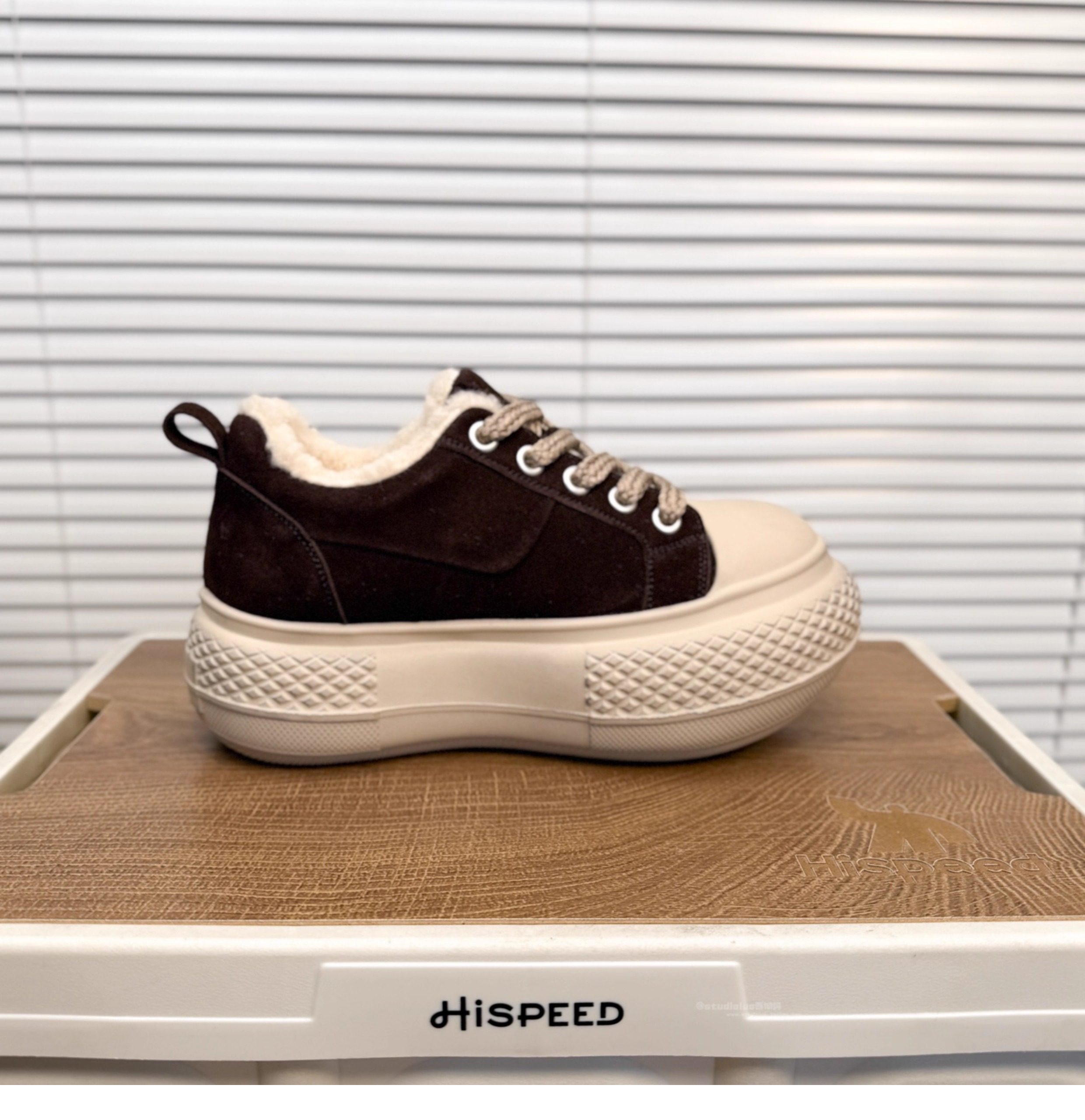 Hong Kong Style Suede Leather Large-Toe Plush-Lined Loafers for Women, 2025 Winter New Fashion Thick-Soled Height-Increasing Casual Sneakers