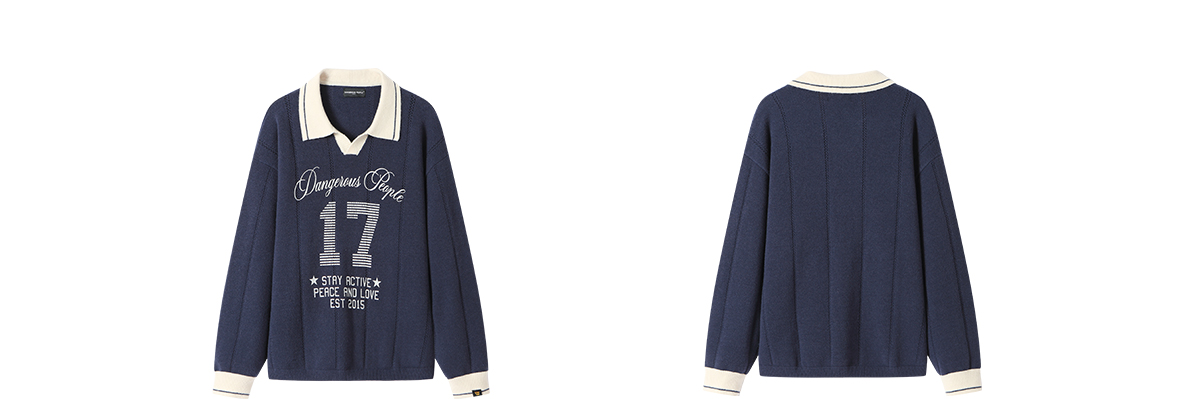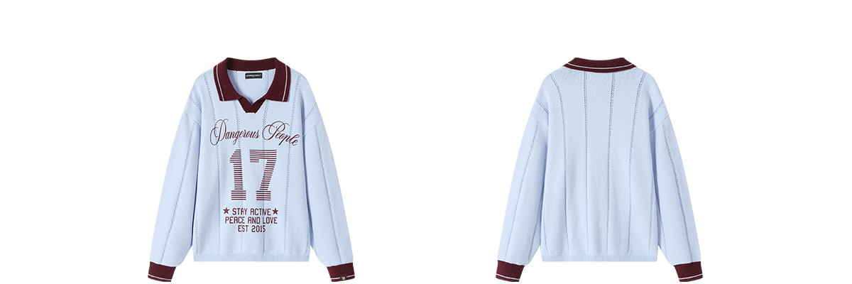 Dangerouspeople Joker Xue Dsp Letter Knit Vertical Stripe Polo Shirt Sporty Versatile Trendy Sweater