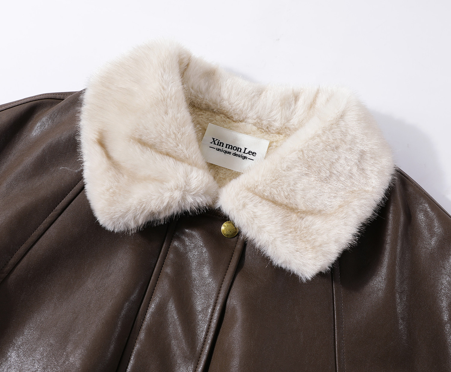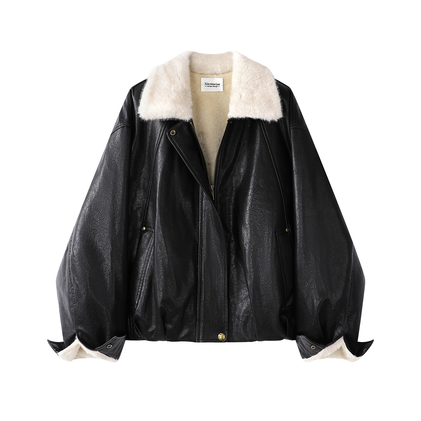 Xinmonlee Maillard Retro Lamb Wool Lapel Fleece-Lined Pu Leather Jacket Winter Short Leather and Fur Integrated