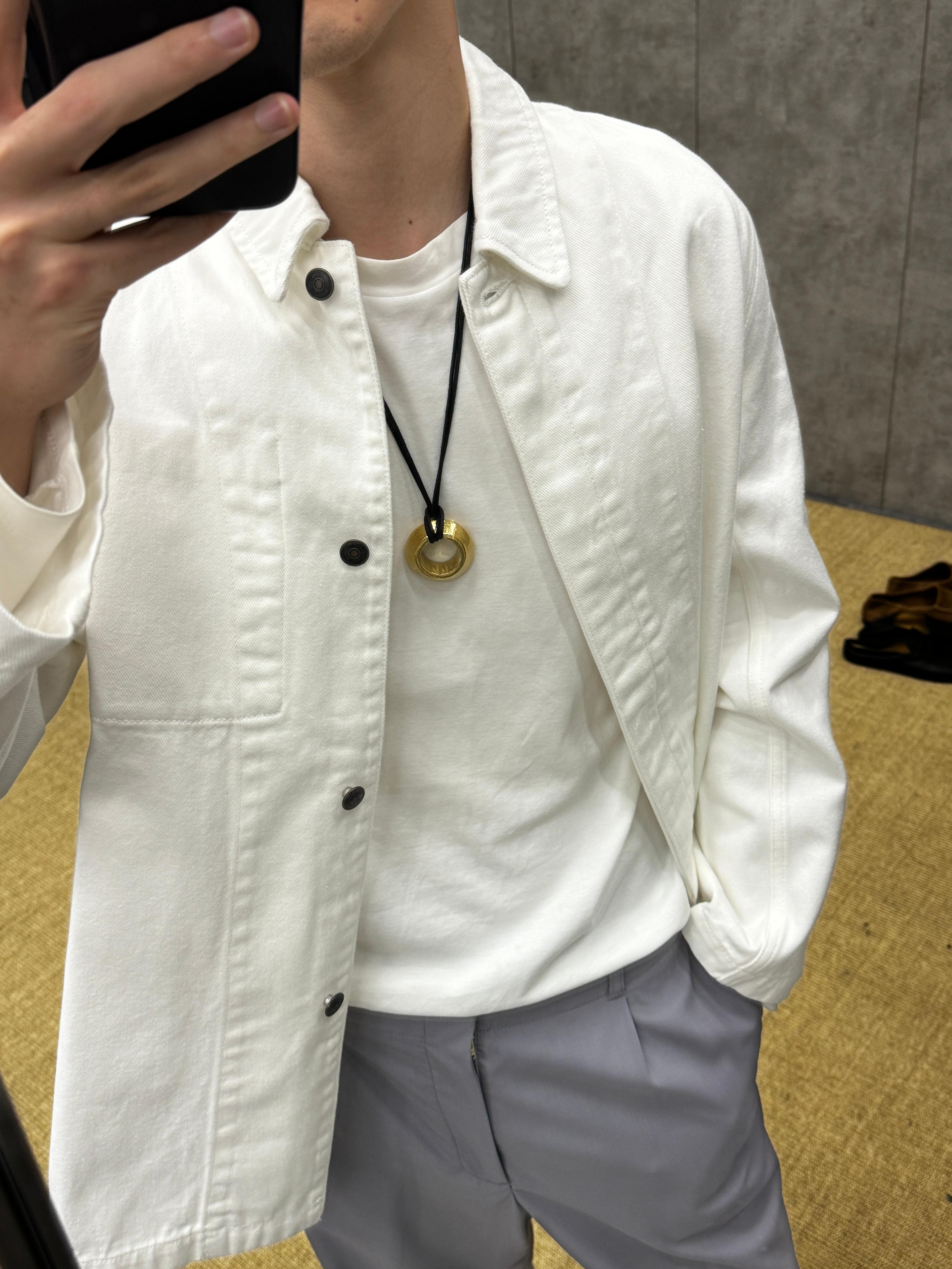 Row Style Somie Same Style White Off-White Solid Color Denim Jacket Button-Up Coat Relaxed Fit Frank Zhang