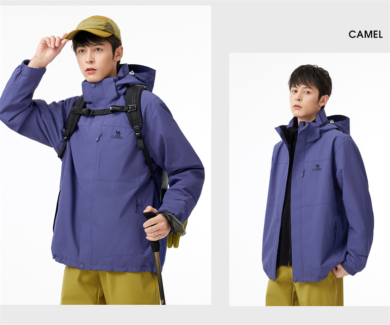 Camel China Red 3-in-1 Jacket for Men and Women, Autumn and Winter Waterproof Coat, Detachable, Fleece-Lined, Thickened Hiking Jacket