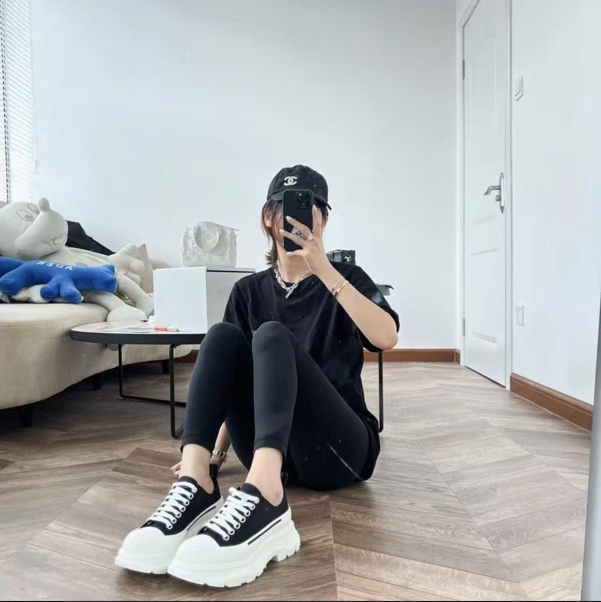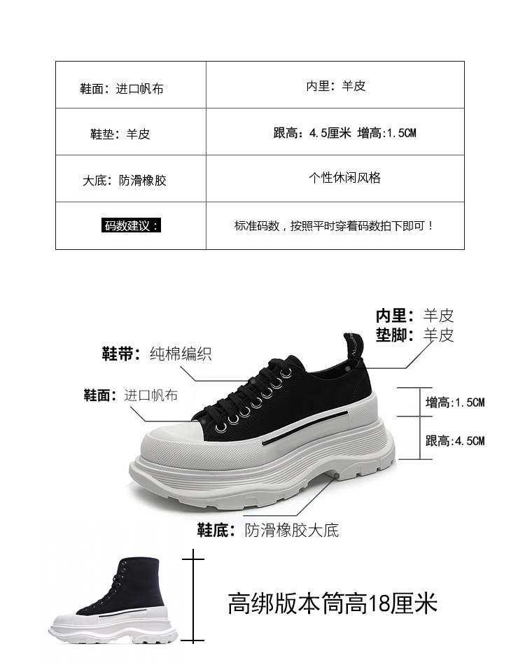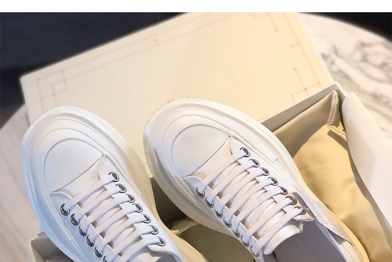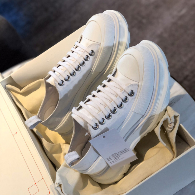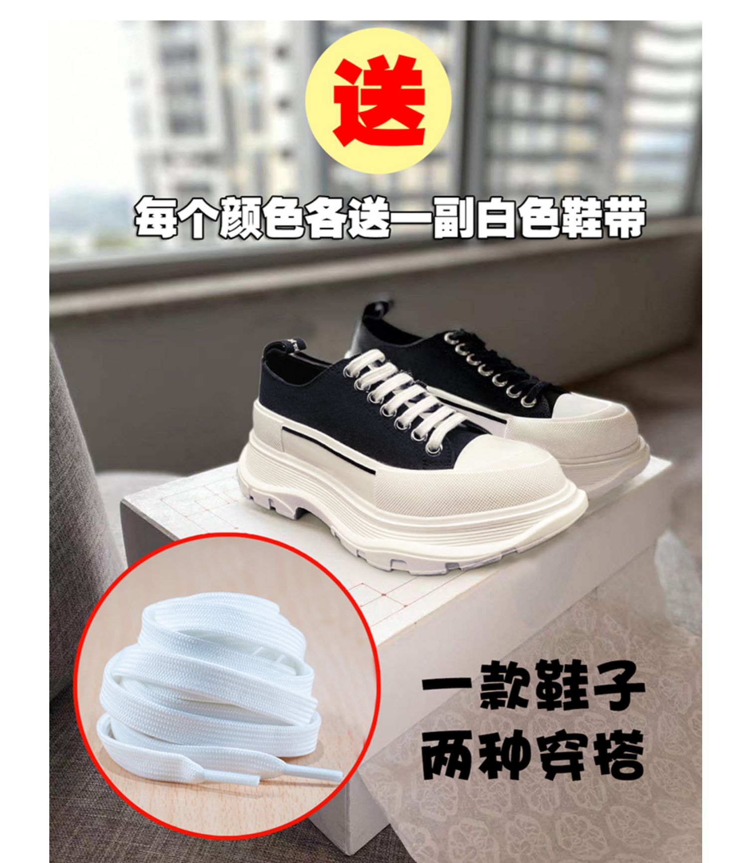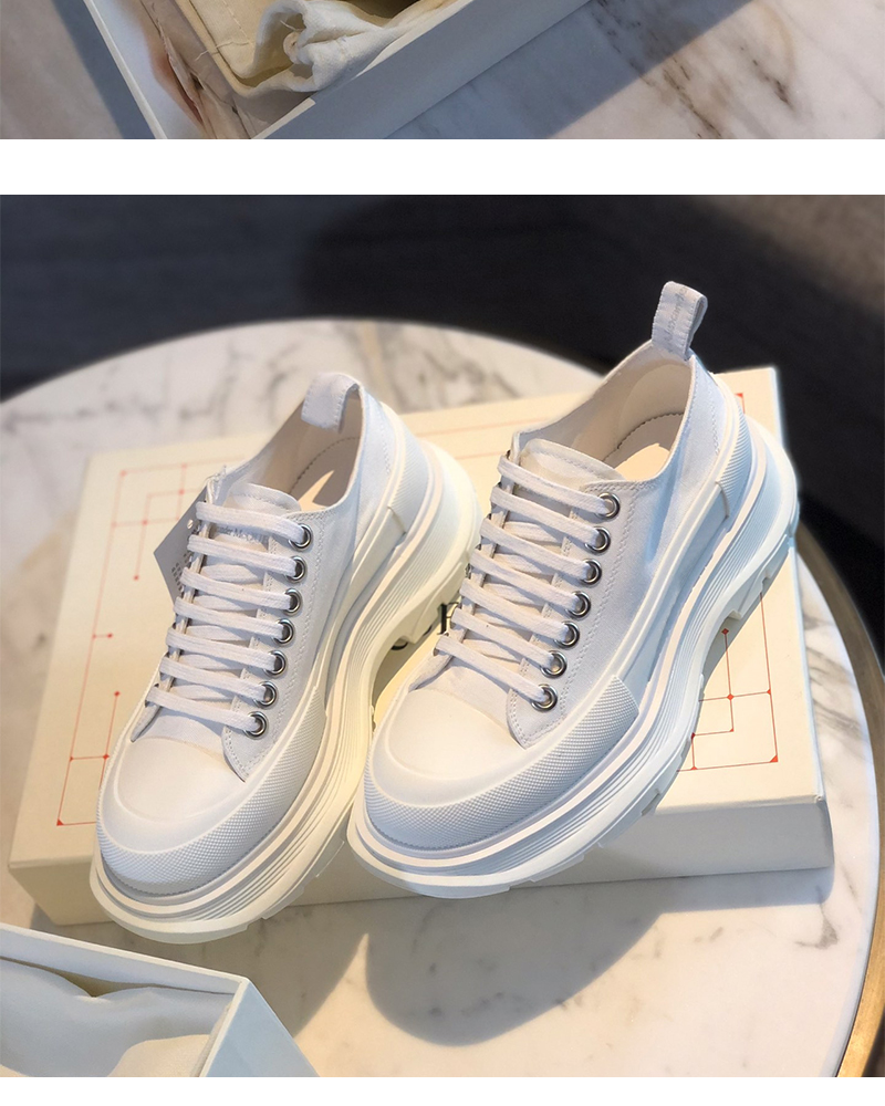6cm Height-Increasing Mcqueen Canvas Shoes for Women, 2025 Autumn and Winter New Genuine Leather Thick-Soled White Shoes, Couple's Dad Shoes for Men