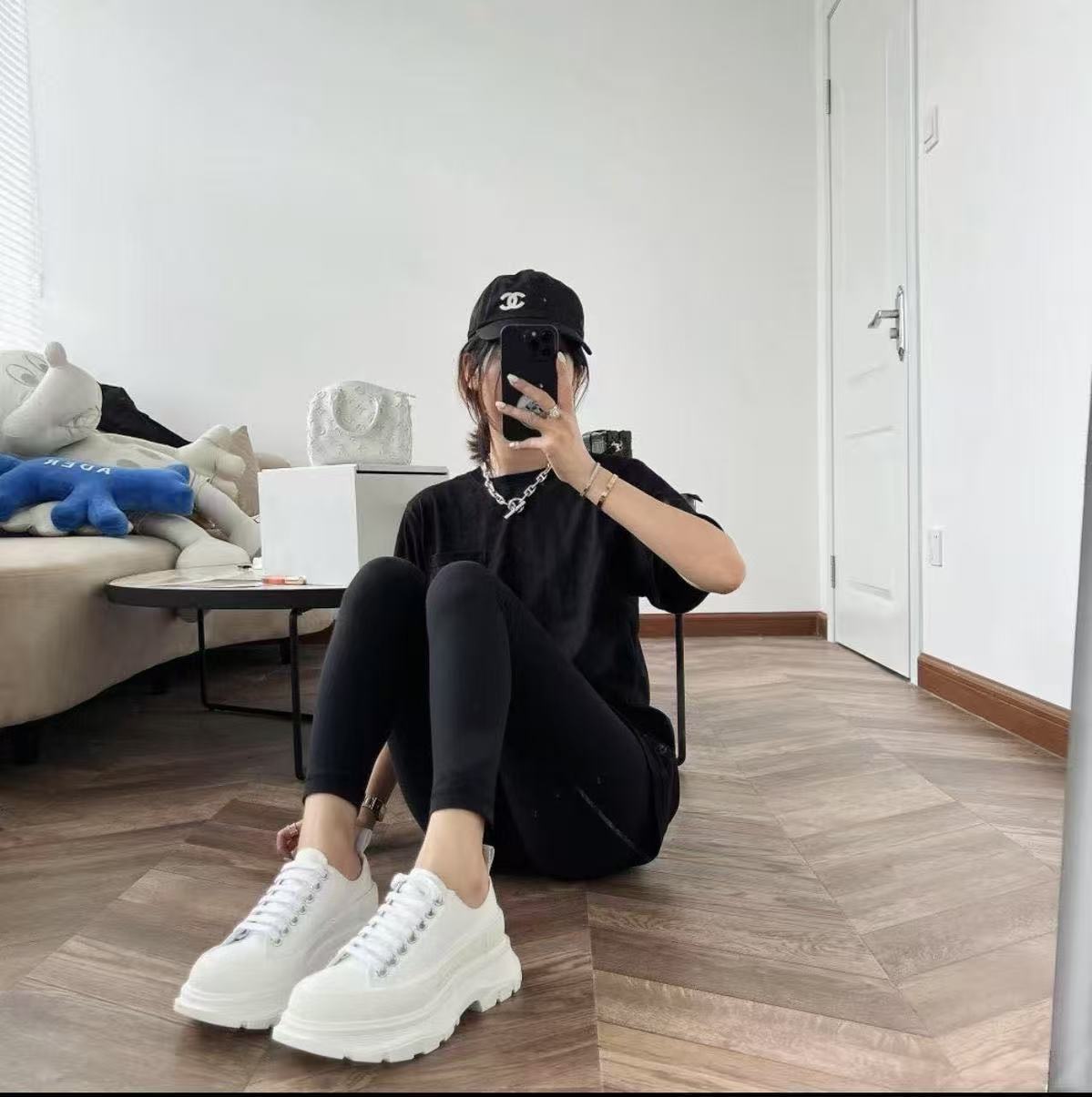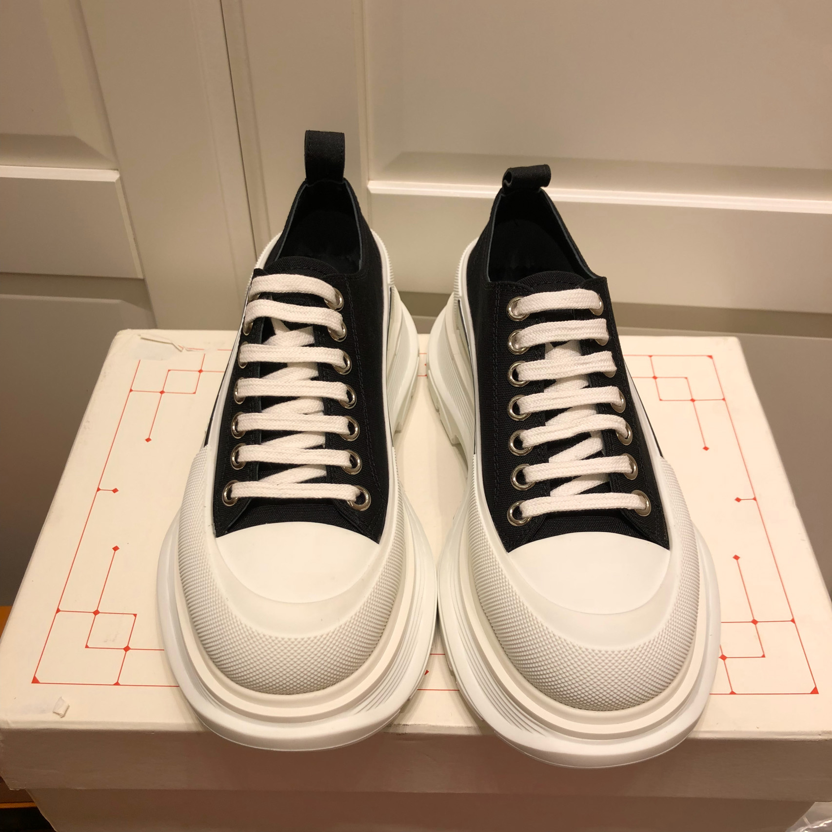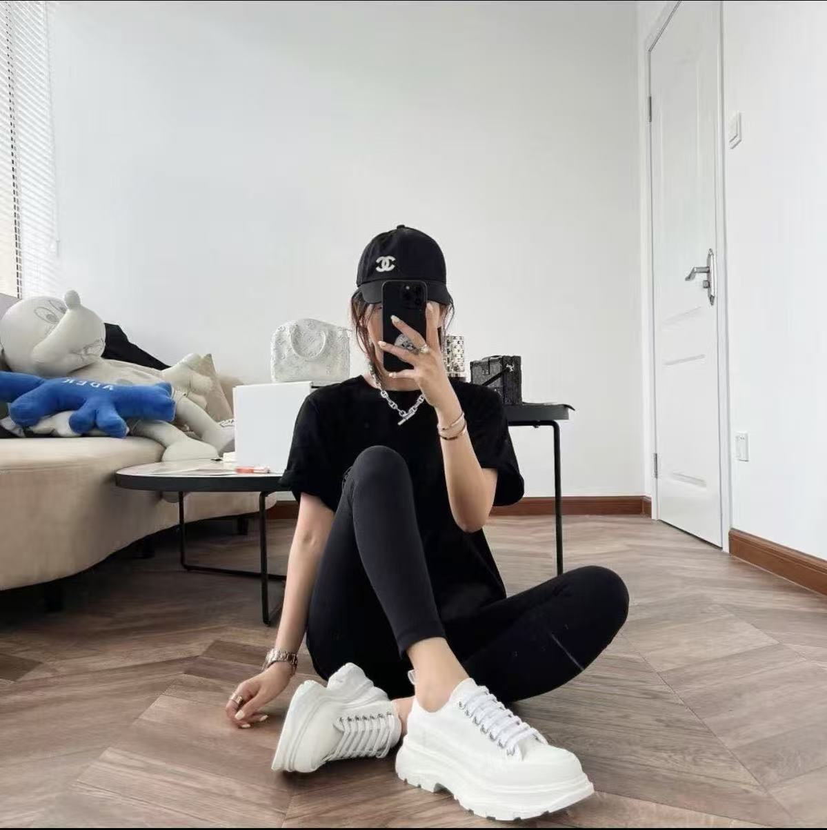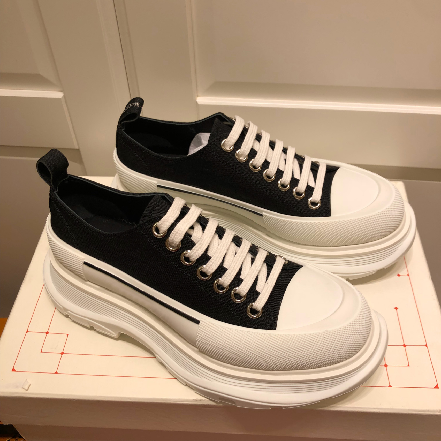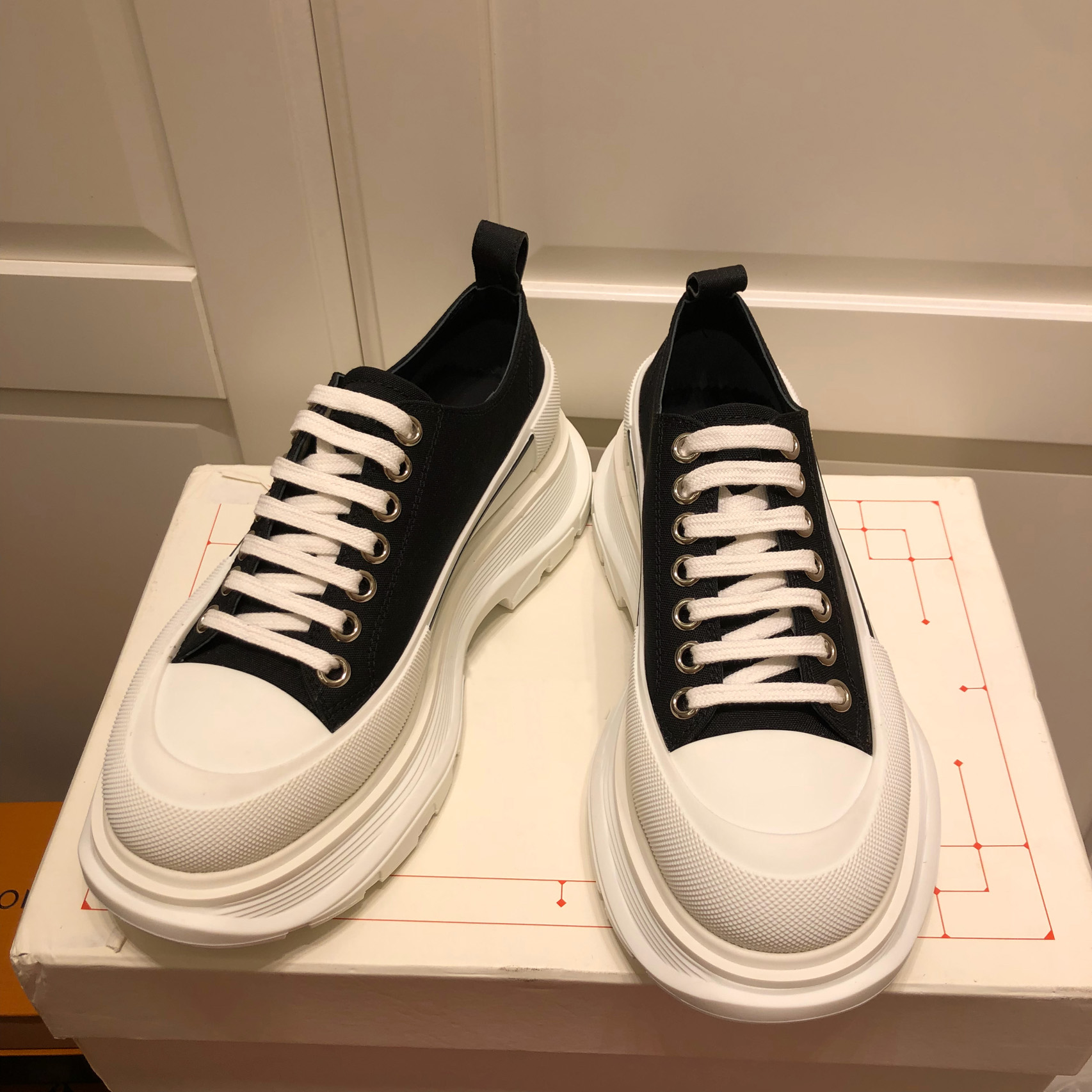 6cm Height-Increasing Mcqueen Canvas Shoes for Women, 2025 Autumn and Winter New Genuine Leather Thick-Soled White Shoes, Couple's Dad Shoes for Men