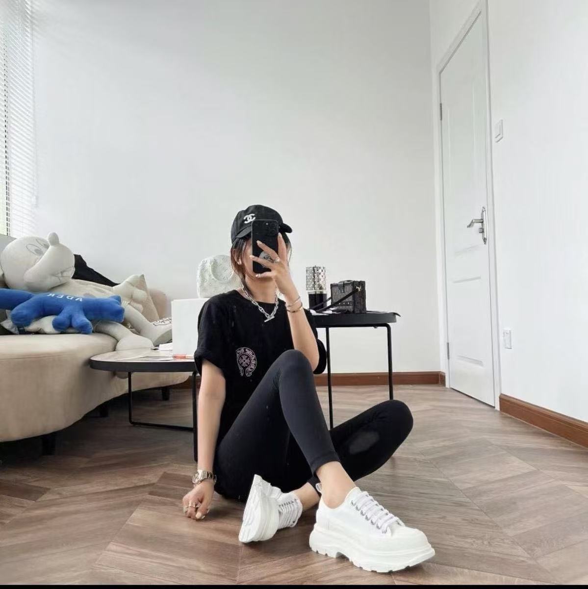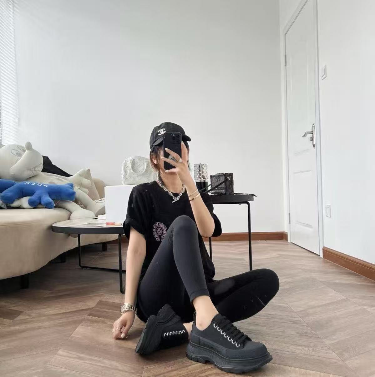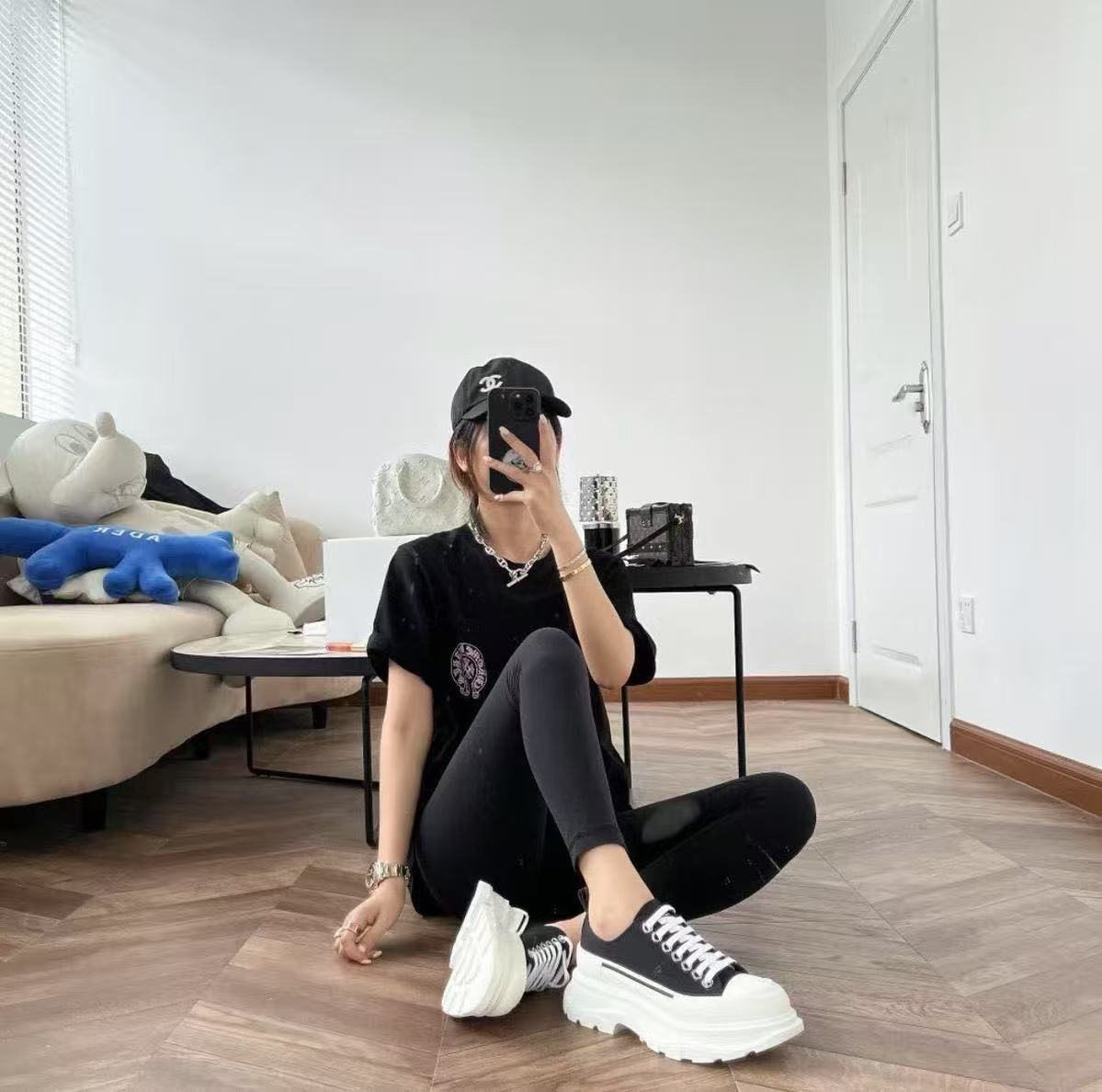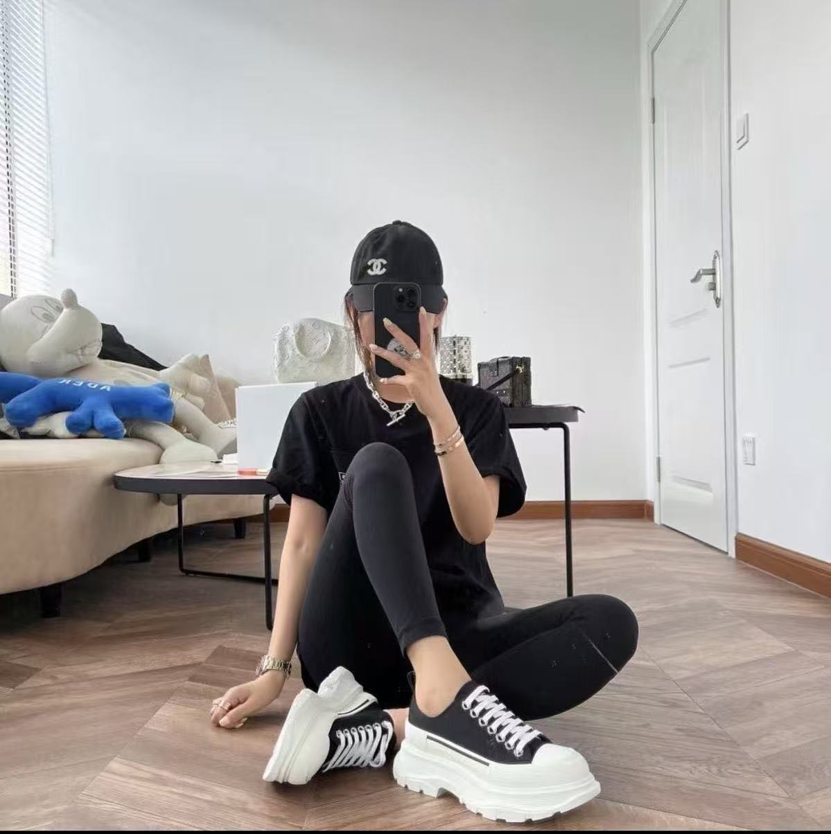 6cm Height-Increasing Mcqueen Canvas Shoes for Women, 2025 Autumn and Winter New Genuine Leather Thick-Soled White Shoes, Couple's Dad Shoes for Men