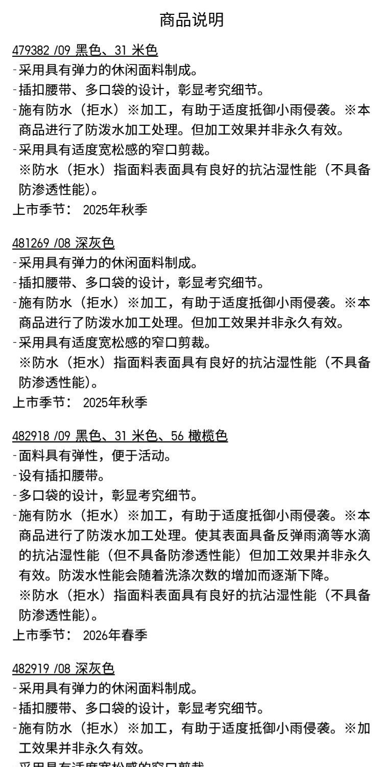 Regular Style Uniqlo Men's Elastic Casual Pants Casual Outdoor 26 Spring and Summer New Style 482918 479382