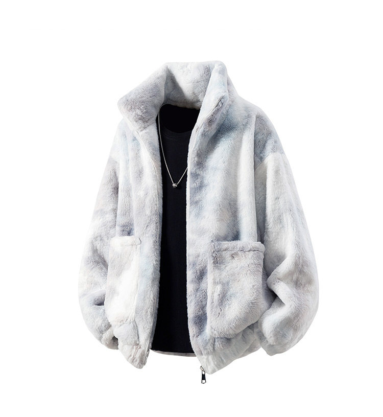 Alpha Kith Official Genuine Lamb Wool Tie-Dye Couple's Oversized Sweatshirt with Fleece Lining, Thickened Loose Cotton Coat for Men