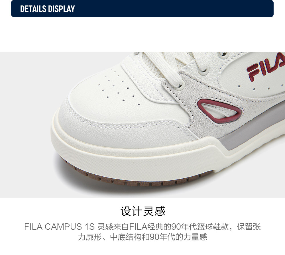Square Shoes 1S | Fila Official Women's Campus 1S Sneakers, Height-Increasing Thick-Soled White Casual Shoes