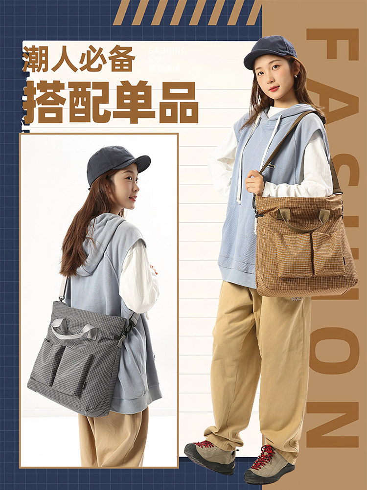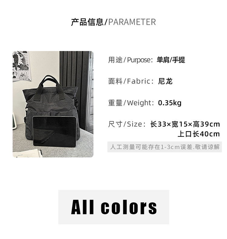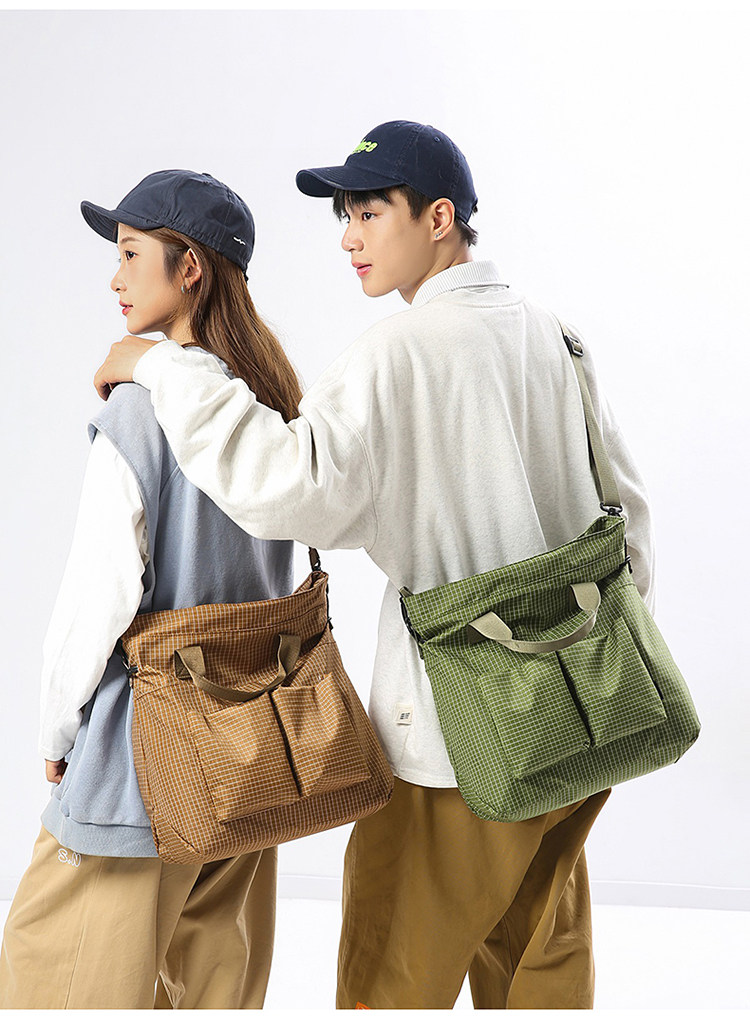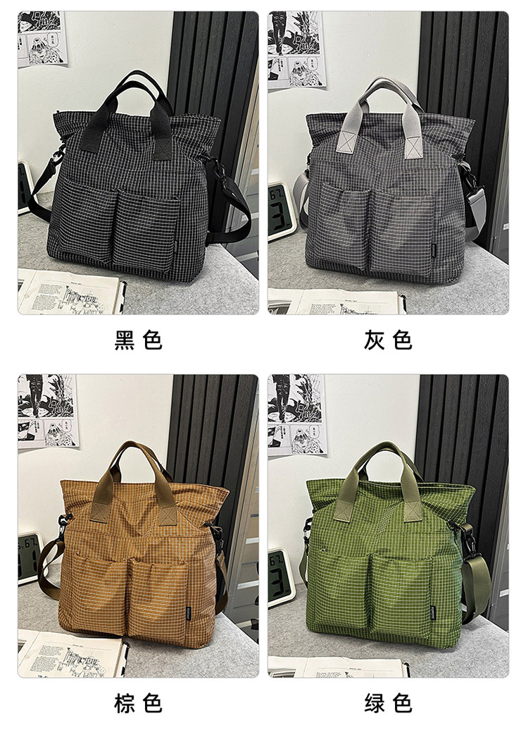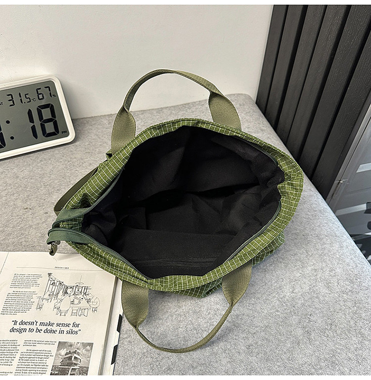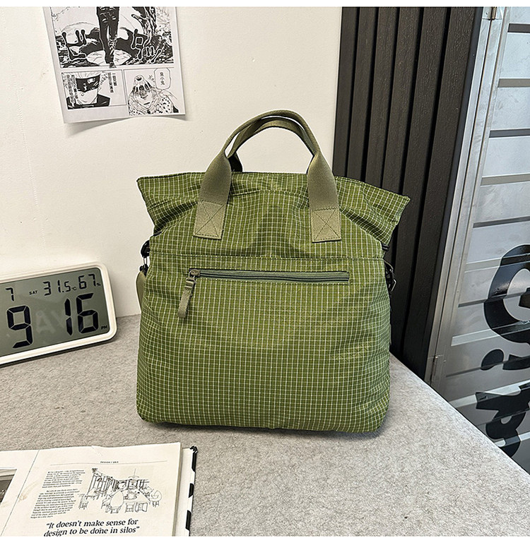 2025 New Green Plaid Canvas Bag Large Capacity Tote Shoulder Crossbody Bag Casual Student Class Bag