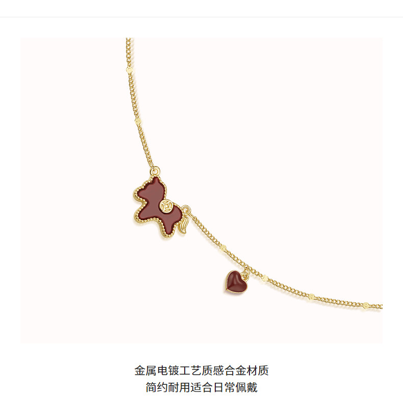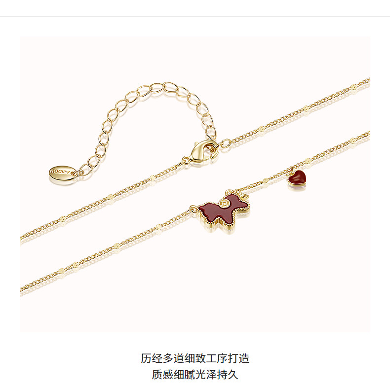 Ajidou Ajidou Necklace for Women, Zodiac Sign, Get Rich Soon Pendant, Red Heart Clavicle Chain, Light Luxury Sweater Chain