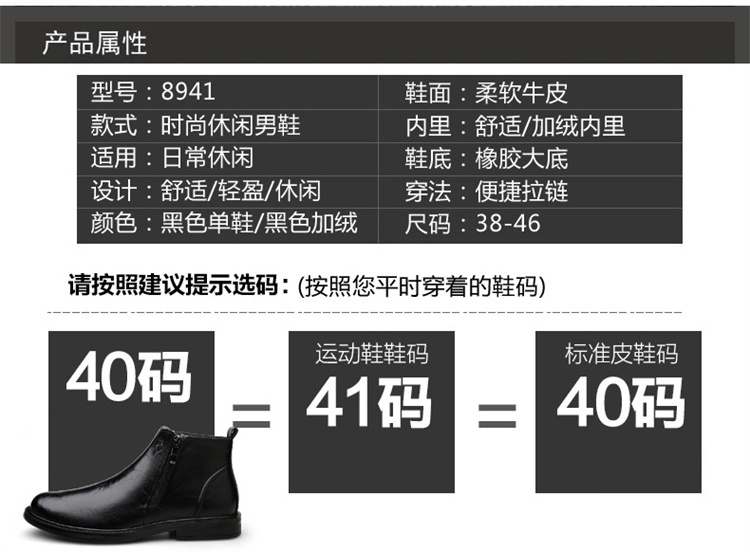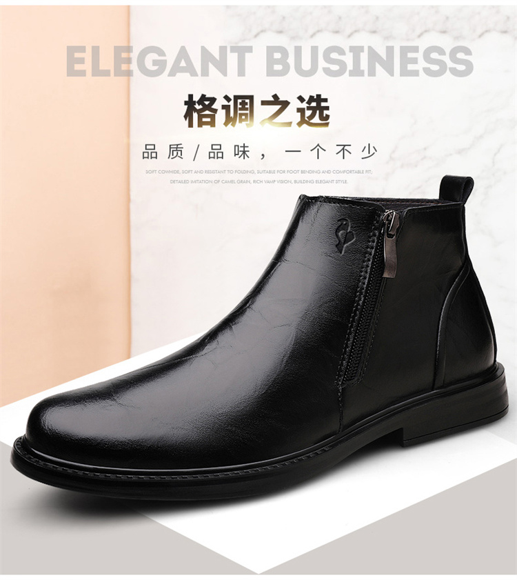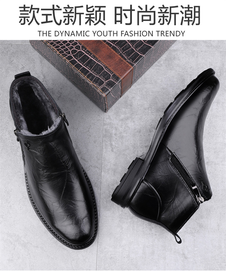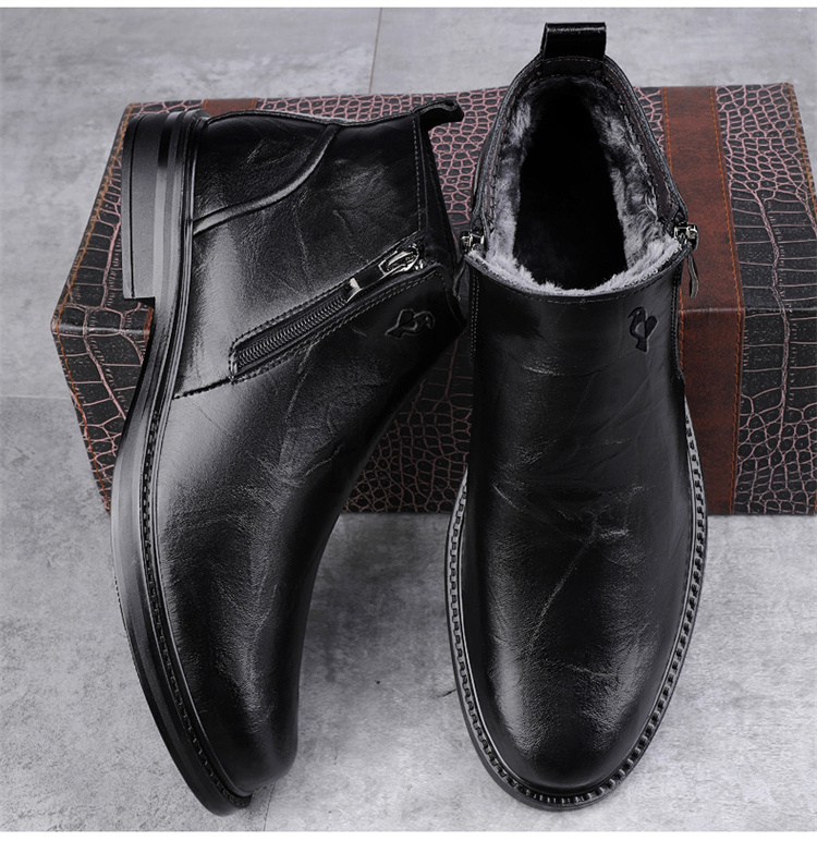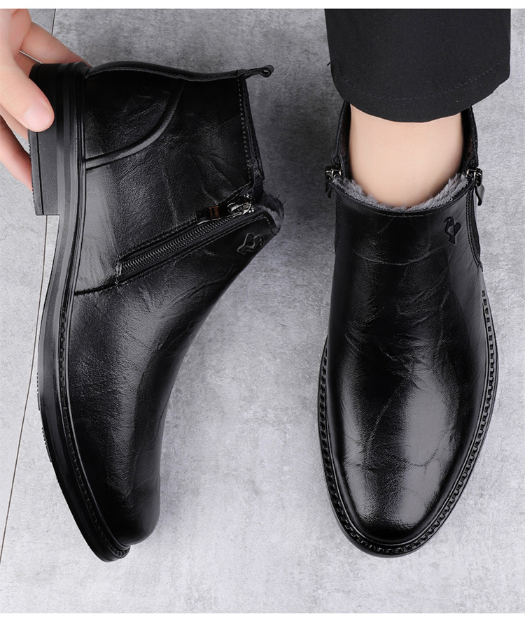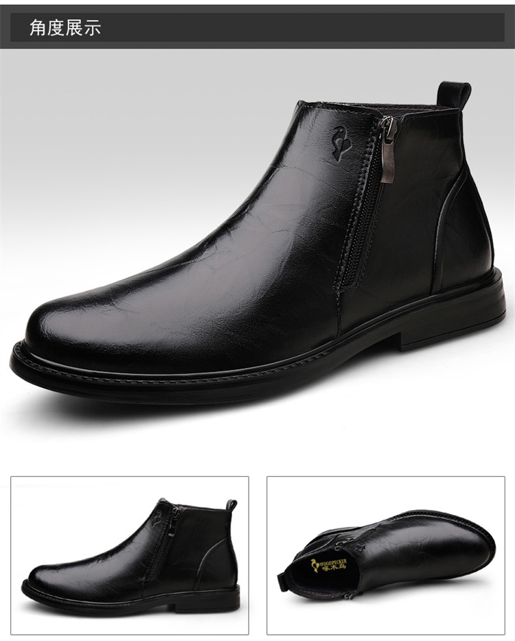 Woodpecker Men's Shoes Genuine Leather Soft Surface Soft Sole Winter Fleece-Lined Warm Cotton Boots Side Zipper Chelsea Boots High-Top Leather Shoes