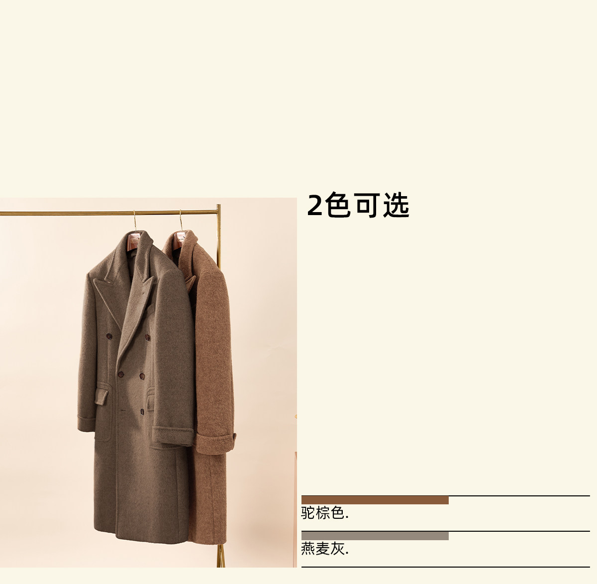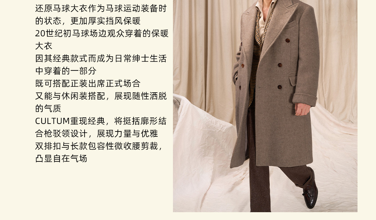 【10% Camel Hair, 10% Mulberry Silk, 80% Wool】Cultum 880g Arena Edition Polo Double-Row Wool Coat for Men