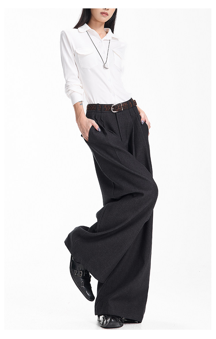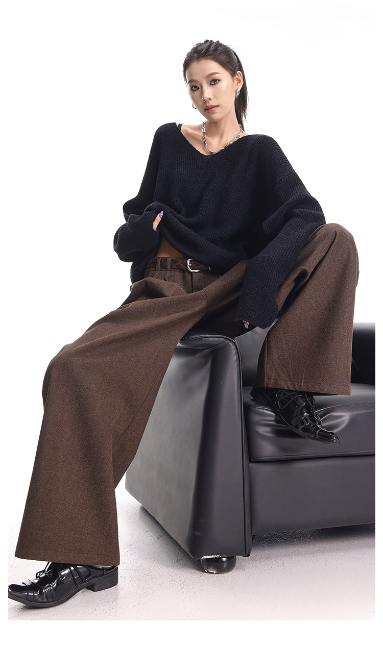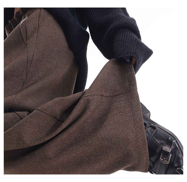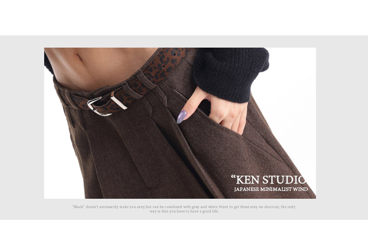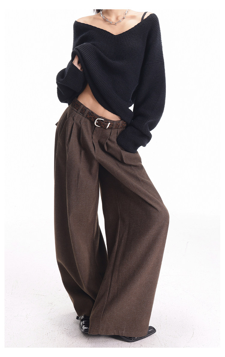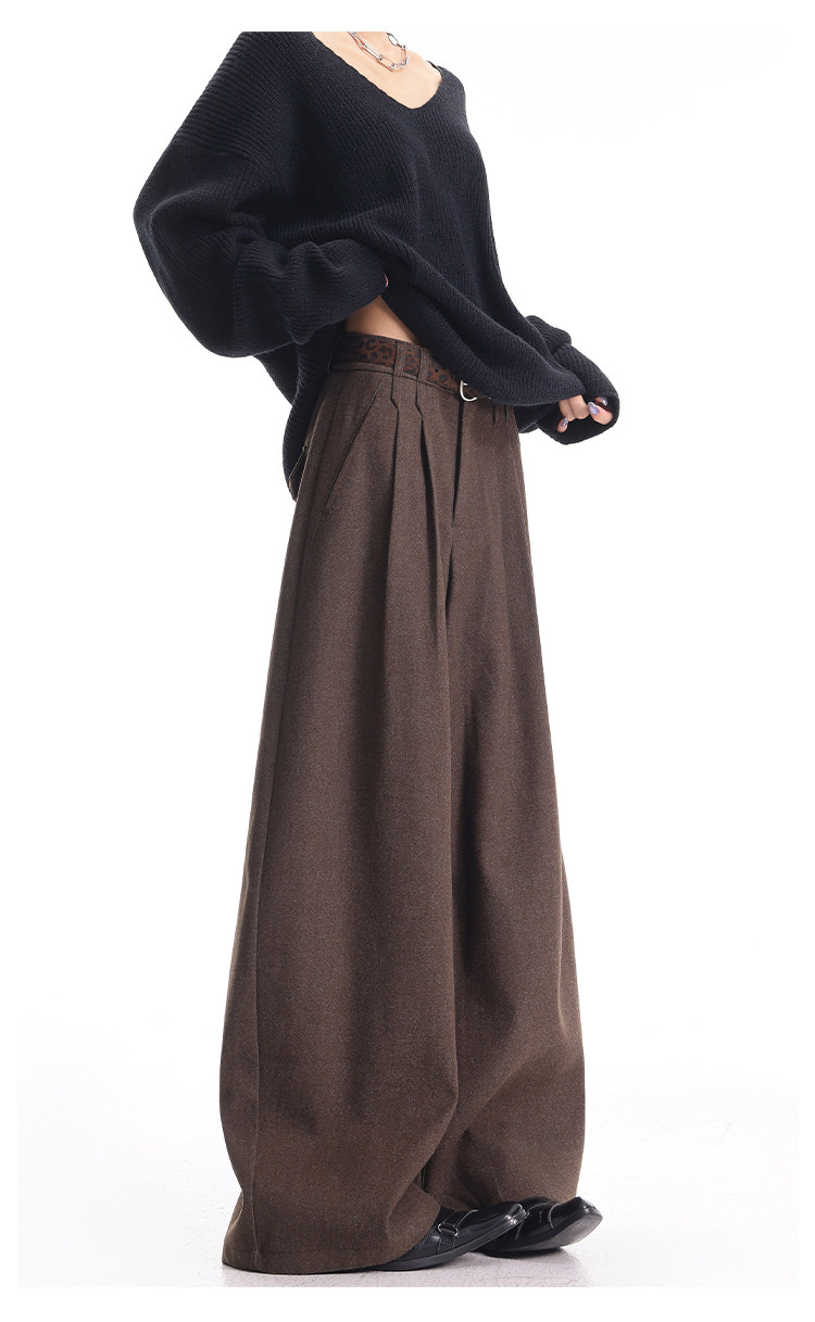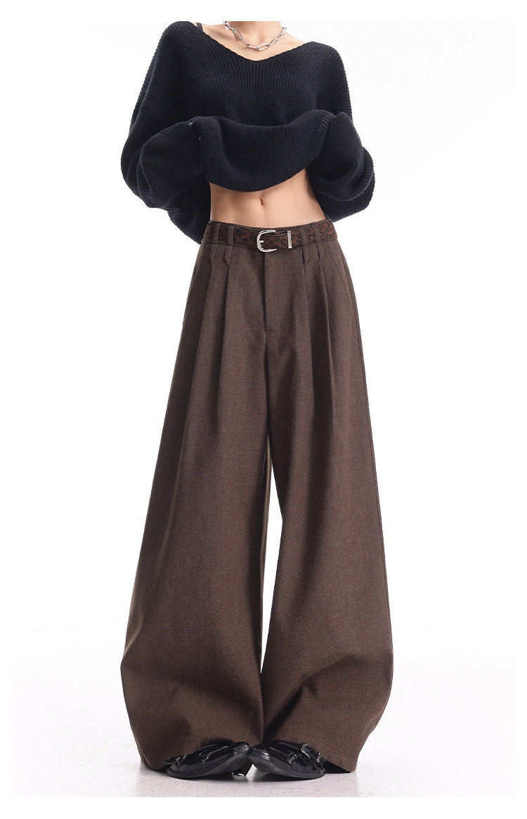 Ken Studio Autumn and Winter New Vintage Money Style Coffee-Colored Brushed Suit Pants for Women, Retro Versatile Wide-Leg Casual Pants