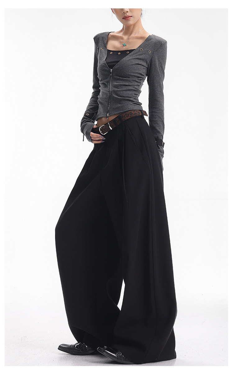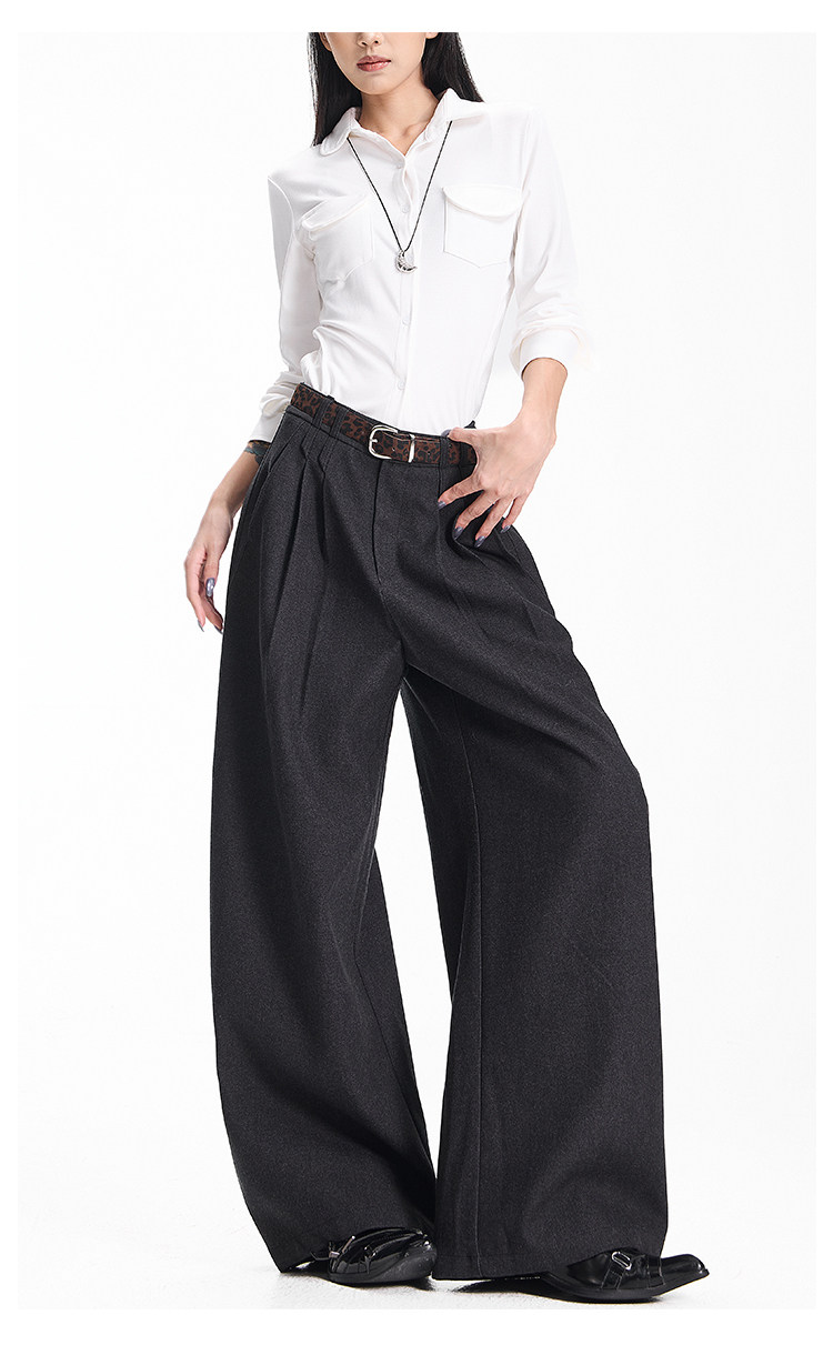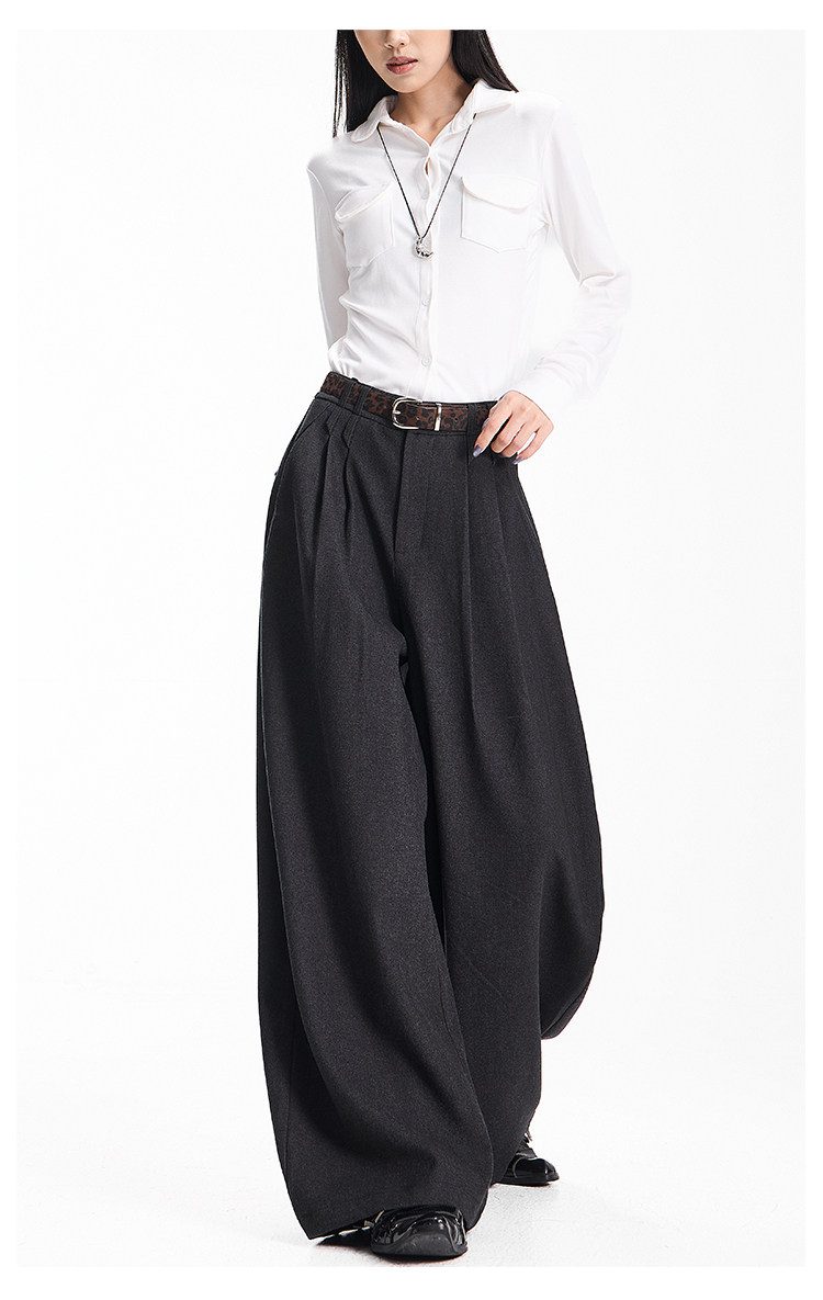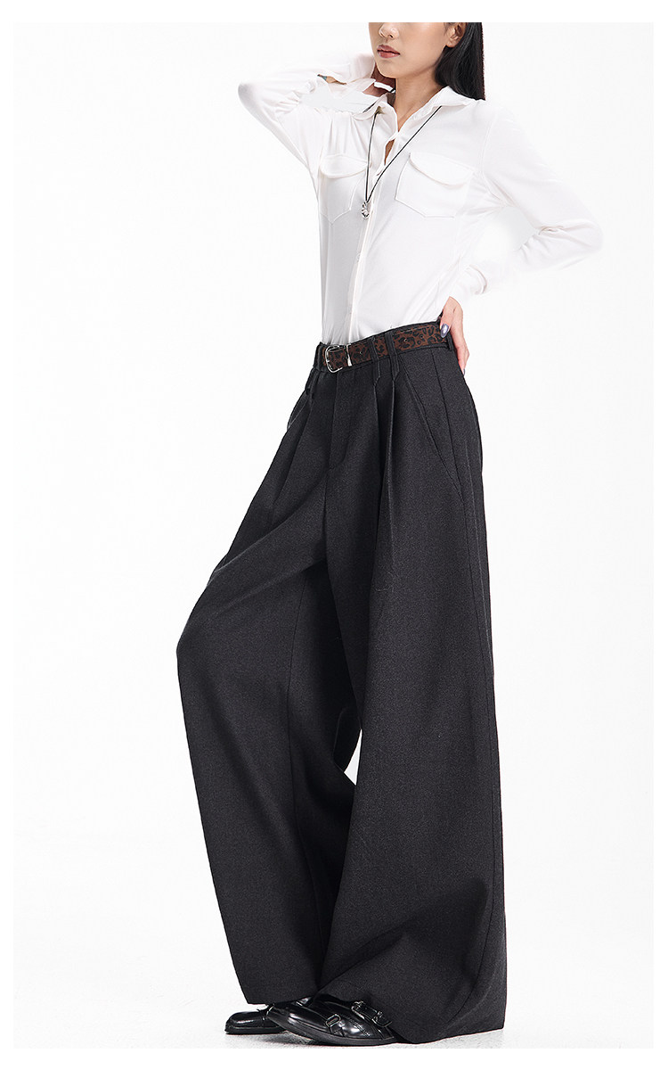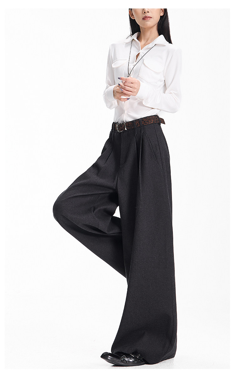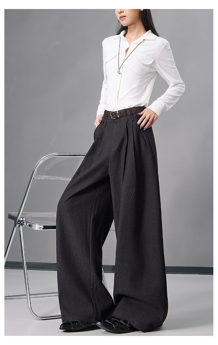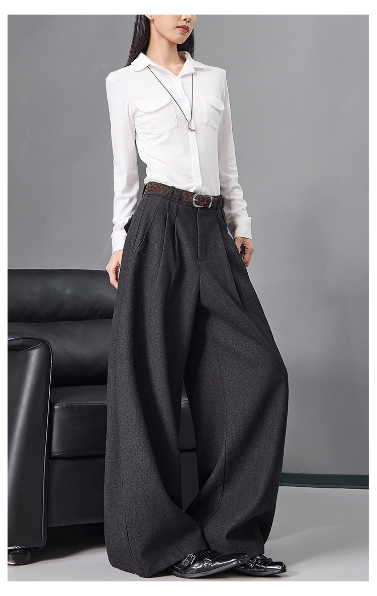 Ken Studio Autumn and Winter New Vintage Money Style Coffee-Colored Brushed Suit Pants for Women, Retro Versatile Wide-Leg Casual Pants