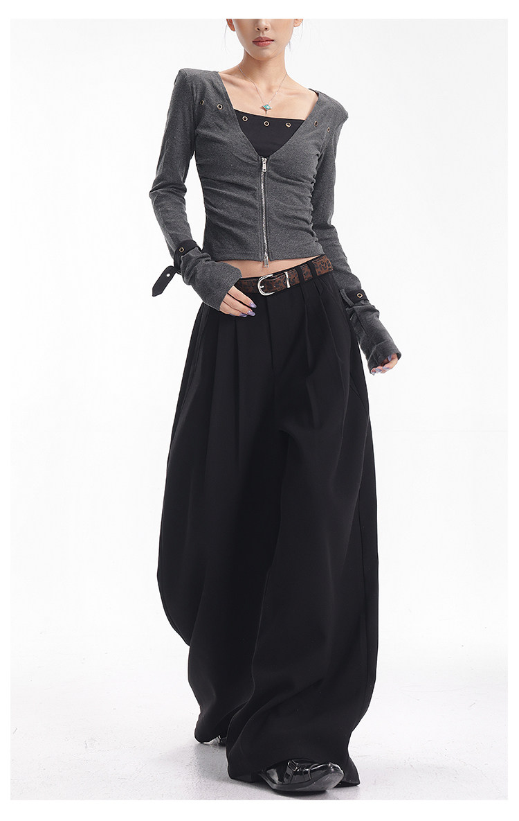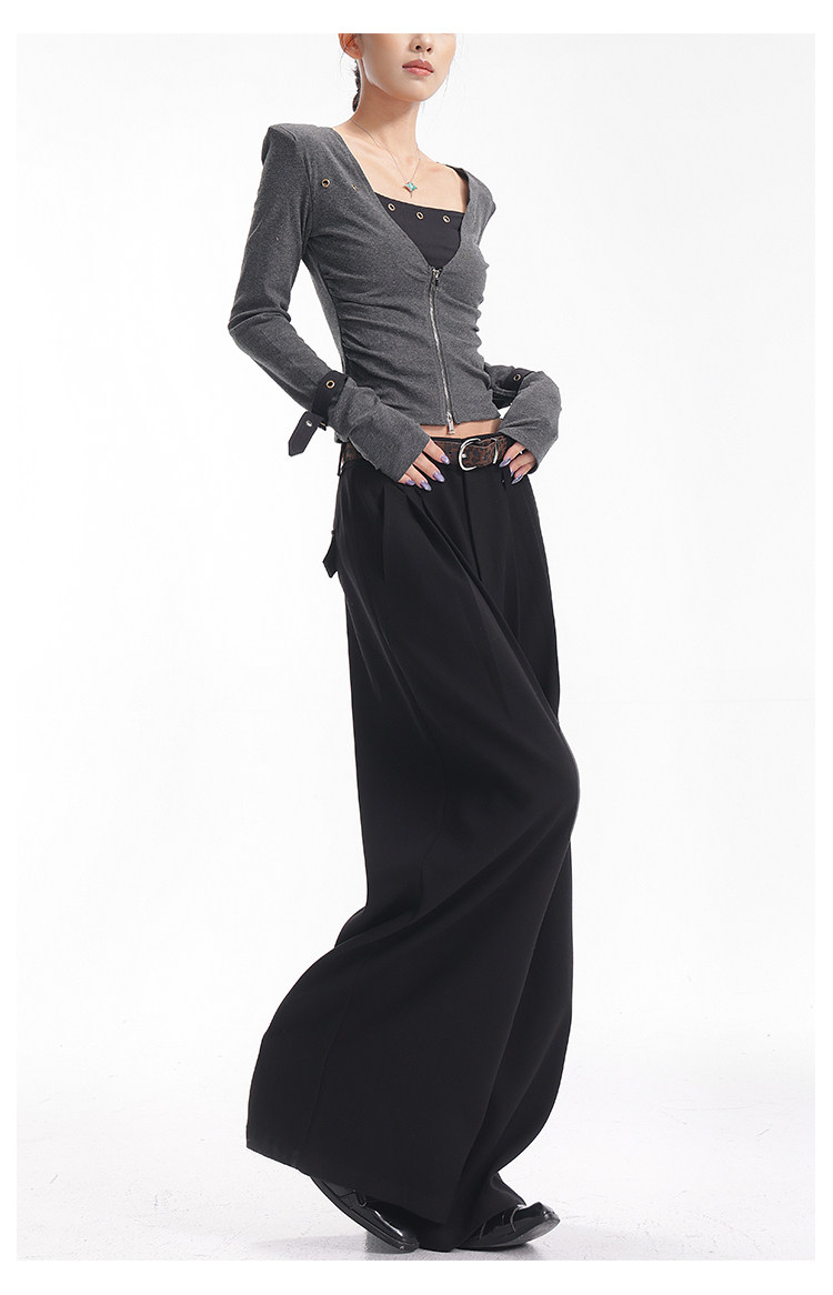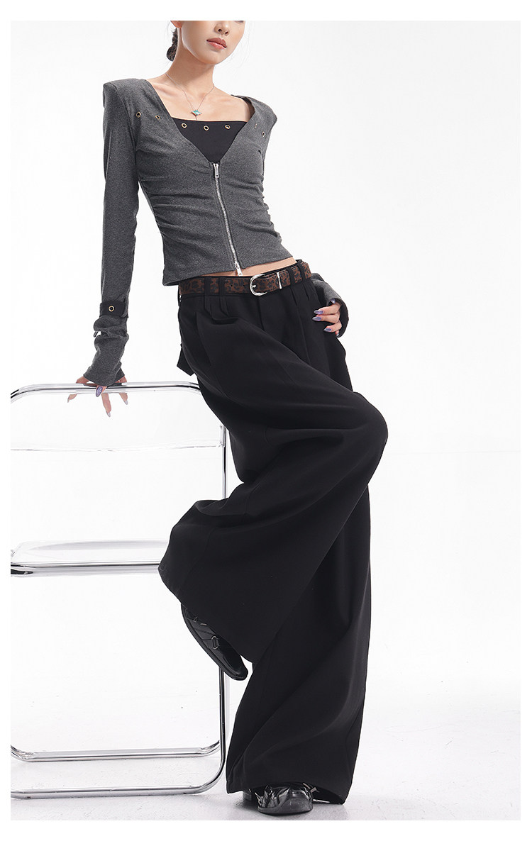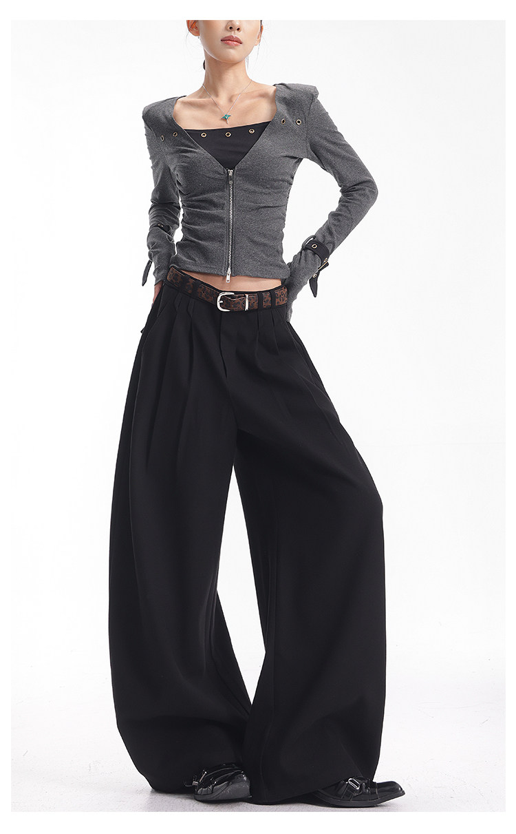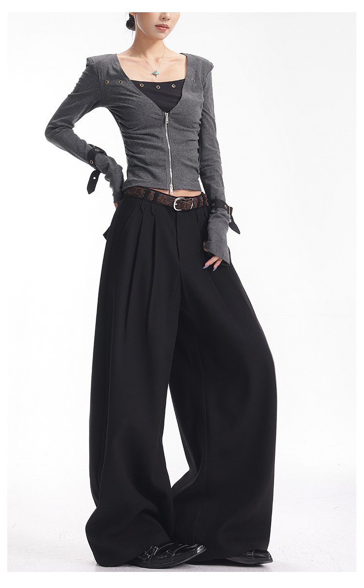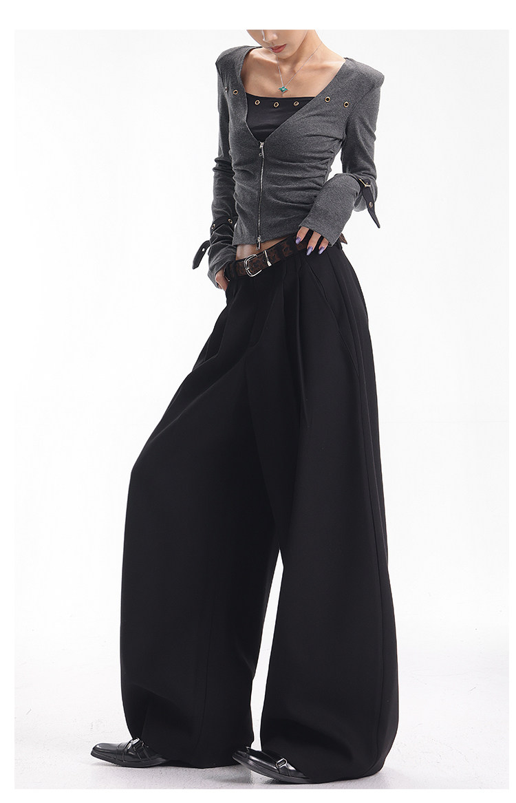Ken Studio Autumn and Winter New Vintage Money Style Coffee-Colored Brushed Suit Pants for Women, Retro Versatile Wide-Leg Casual Pants