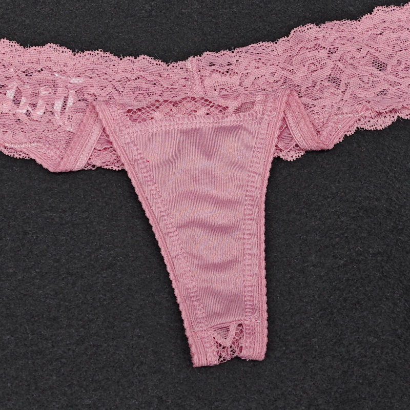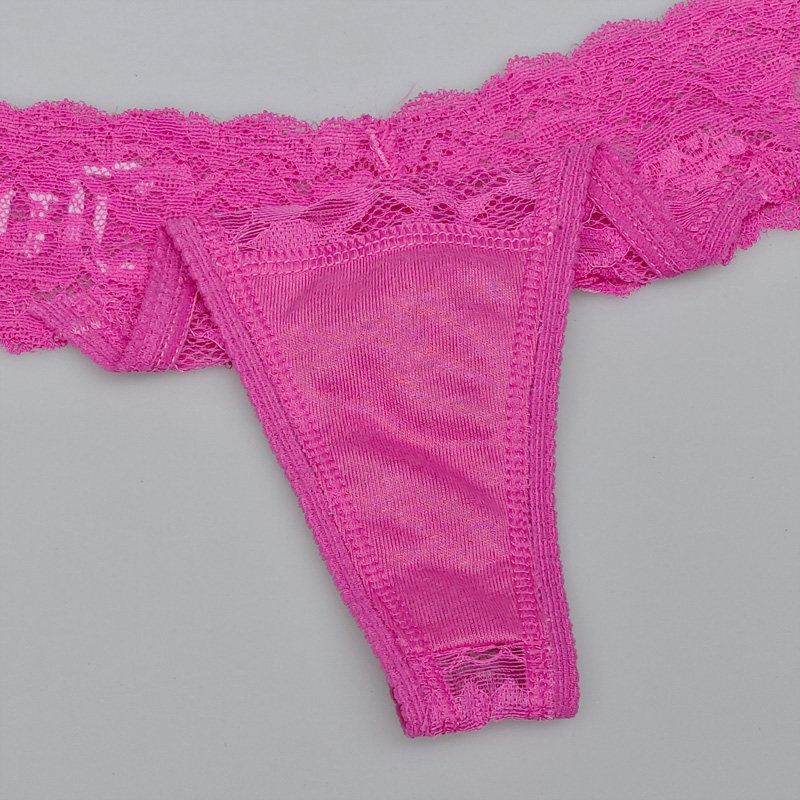 Pink/Rose Red/Pink Purple/Dark Pink/Purple-Red Women's Solid Color Lace Printed Low-Waist Sexy Thong Br703