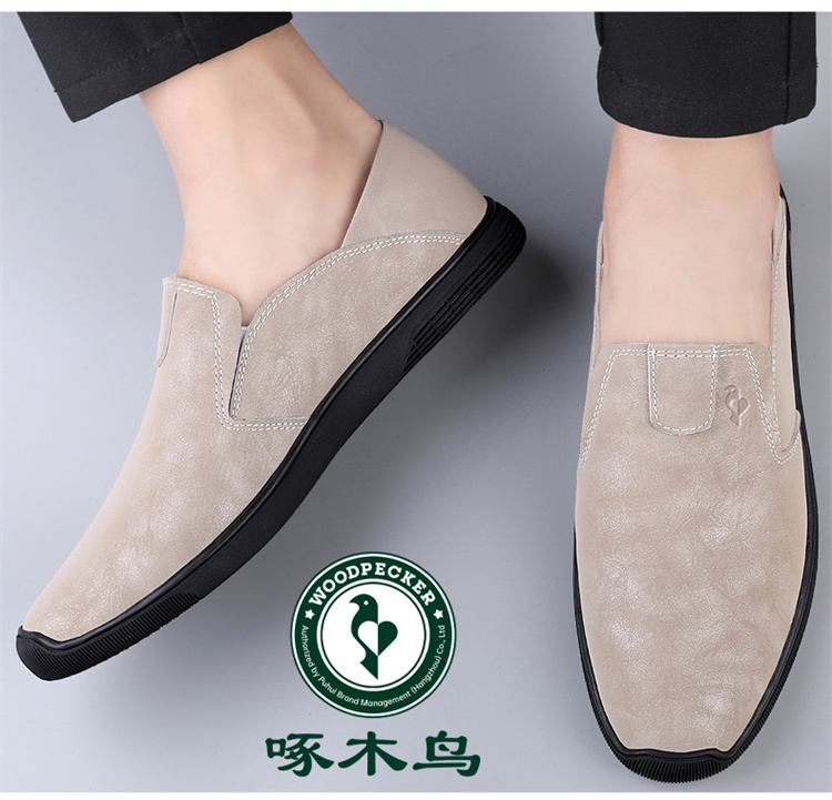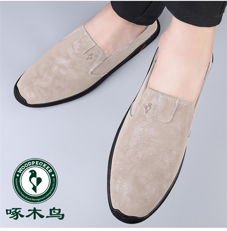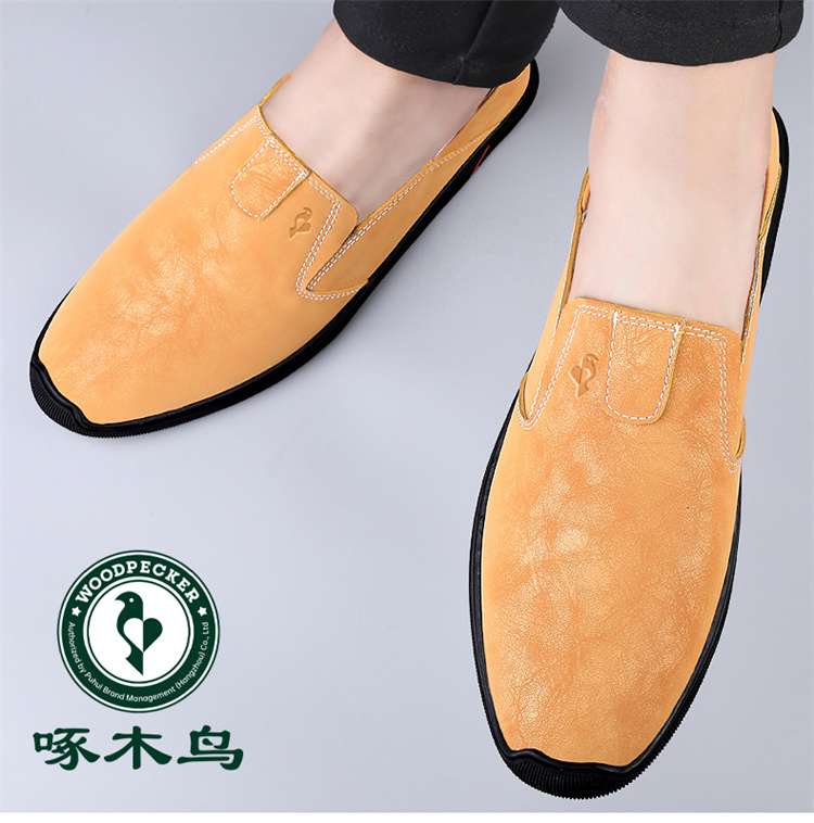 Woodpecker Men's Shoes, High-End Footwear, Autumn 2025 New Model, Slip-On Dual-Wear Leather Shoes, Genuine Leather Lazy Shoes, Trendy Shoes