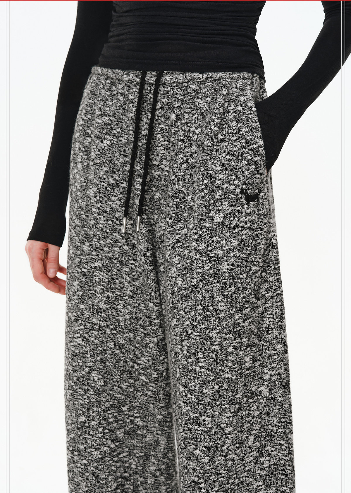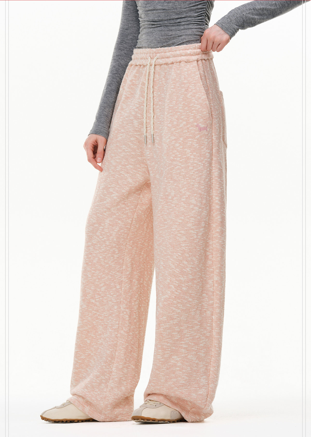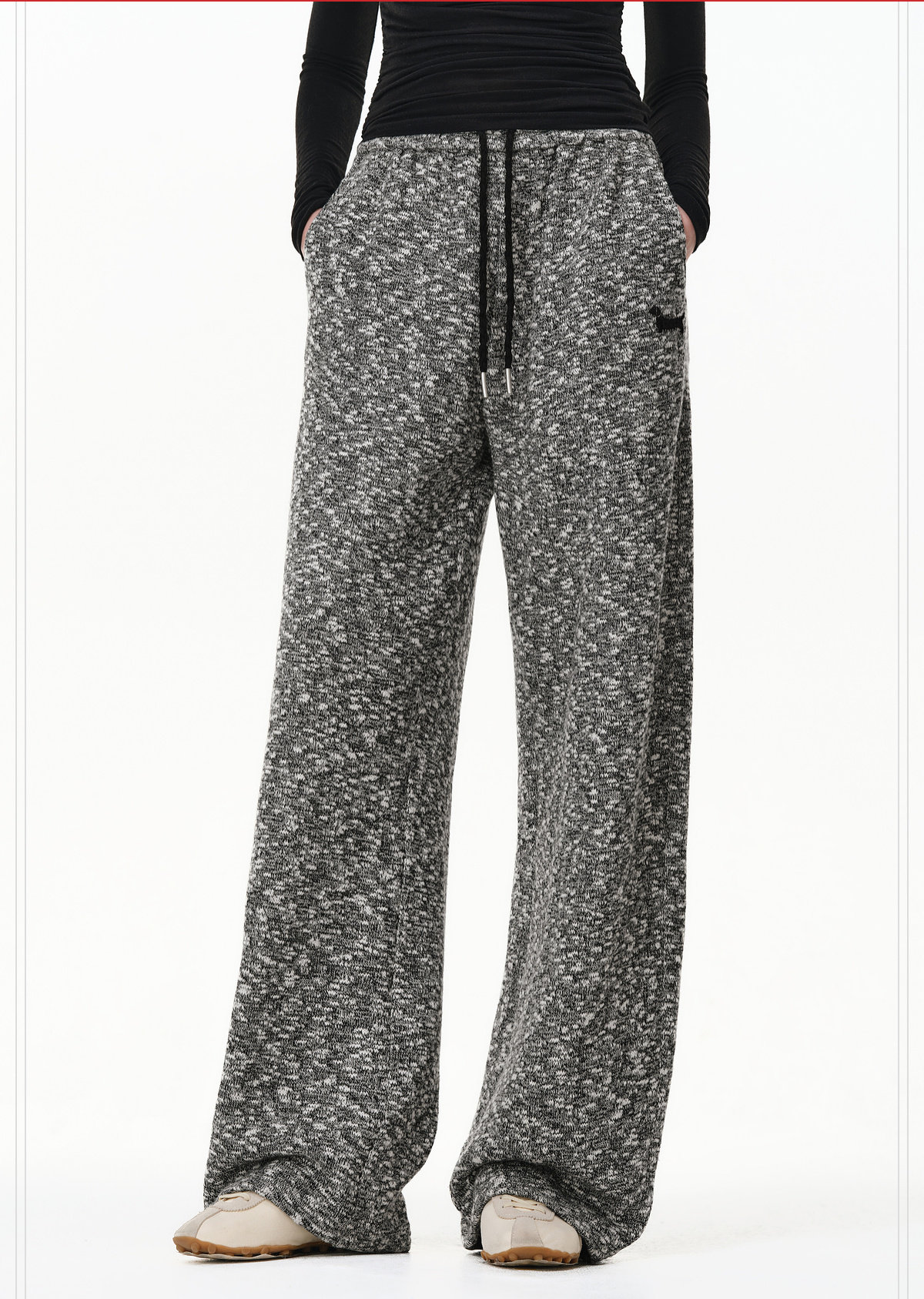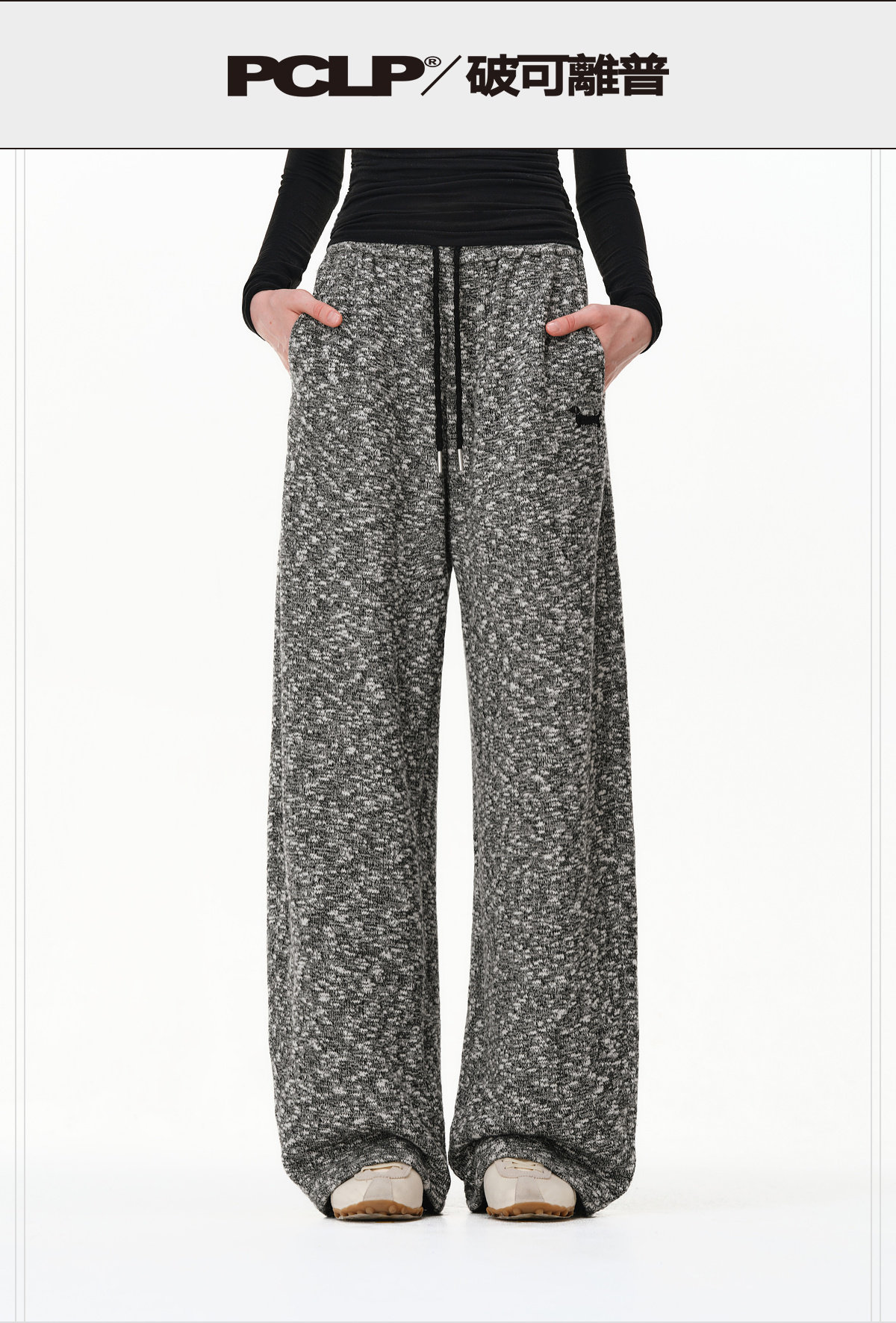 Pclp'Wool Floral Yarn' Snowflake Terry Texture Floral Yarn Sweatpants Winter New Straight-Leg Loose Drape Pants