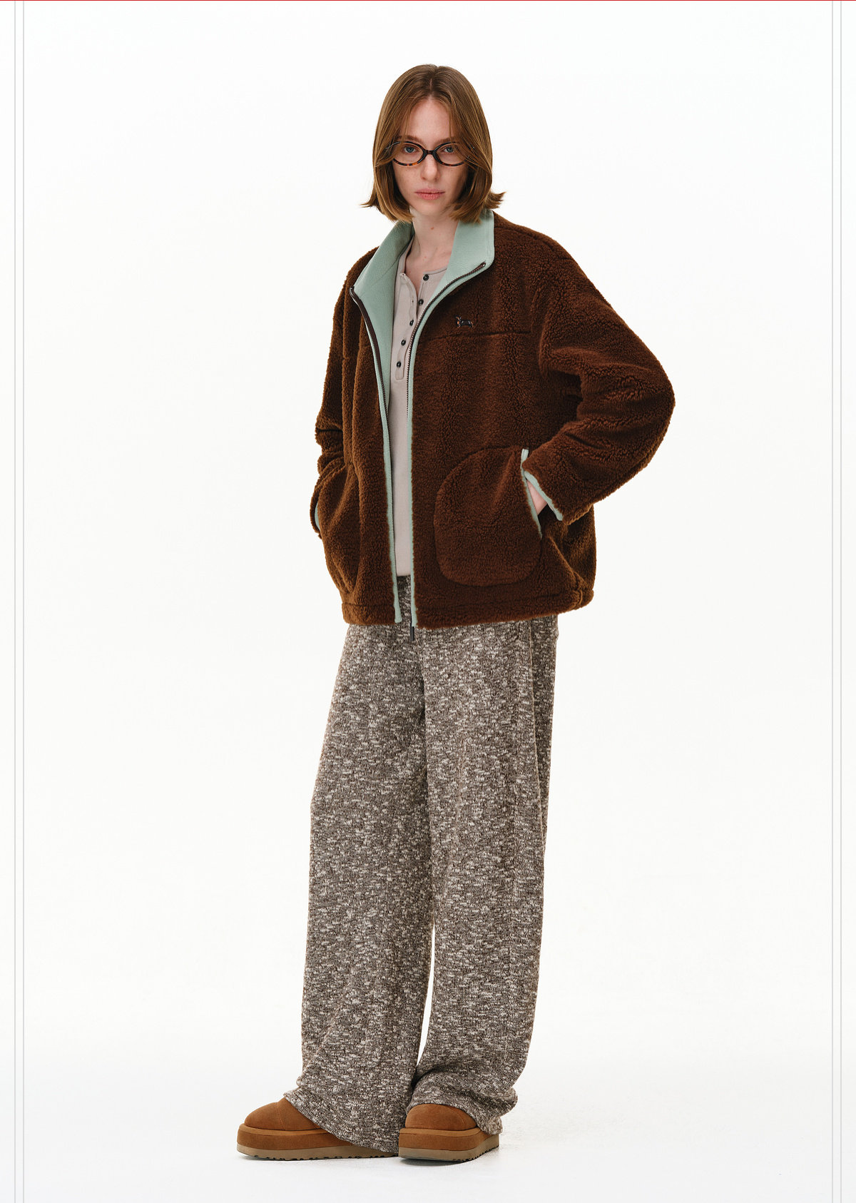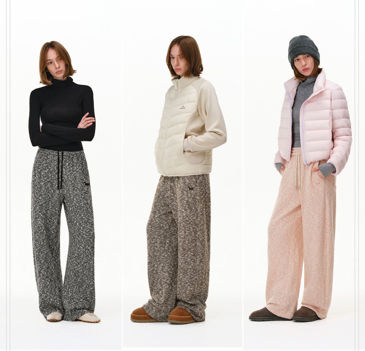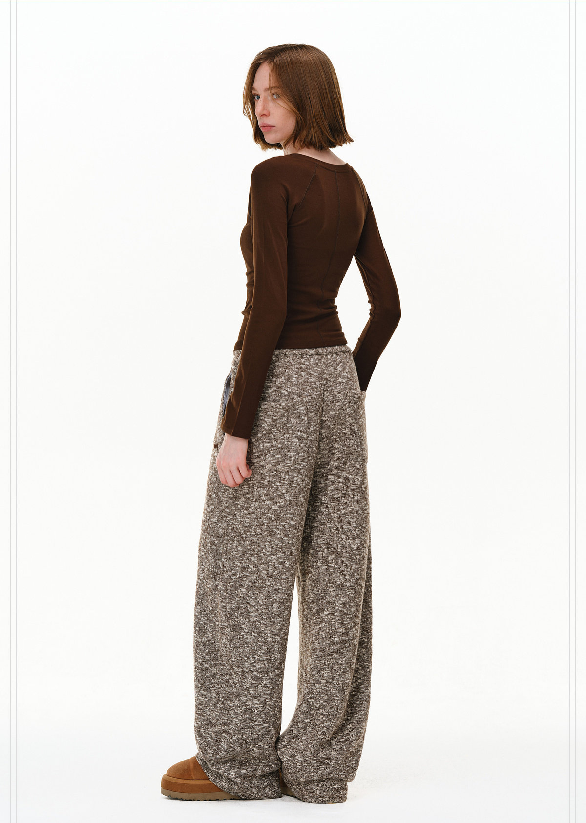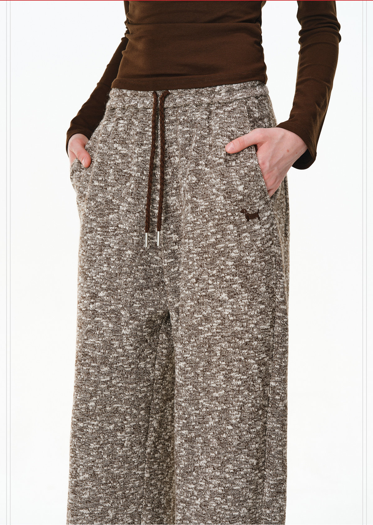 Pclp'Wool Floral Yarn' Snowflake Terry Texture Floral Yarn Sweatpants Winter New Straight-Leg Loose Drape Pants