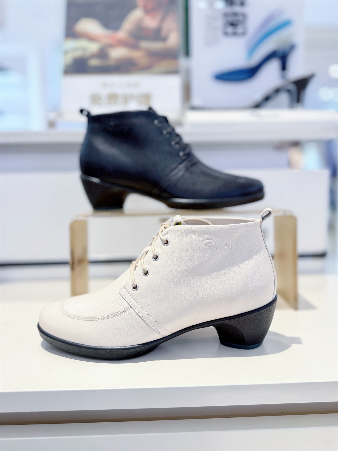 Yale's First-Layer Cowhide Air-Cushion Rubber Soft-Soled Round-Toe Lace-Up Lightweight Casual High-Top Women's Leather Shoes Wk251181
