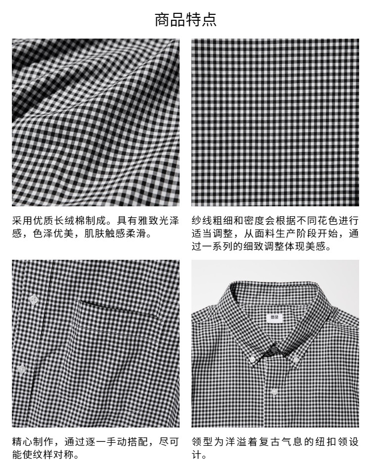 Uniqlo Men's and Women's High-Quality Long-Staple Cotton Plaid Shirt/Long-Sleeved Shirt 26 Spring and Summer New Style 482461